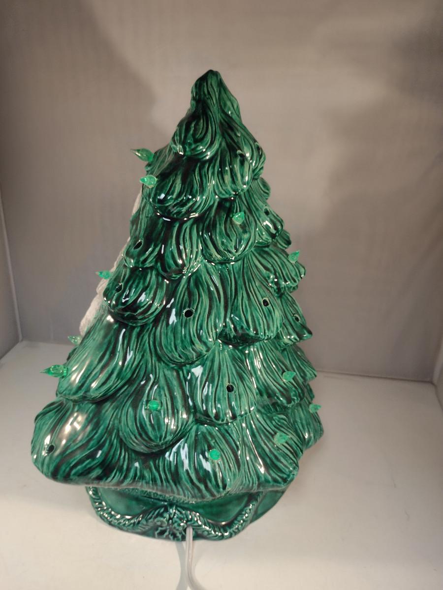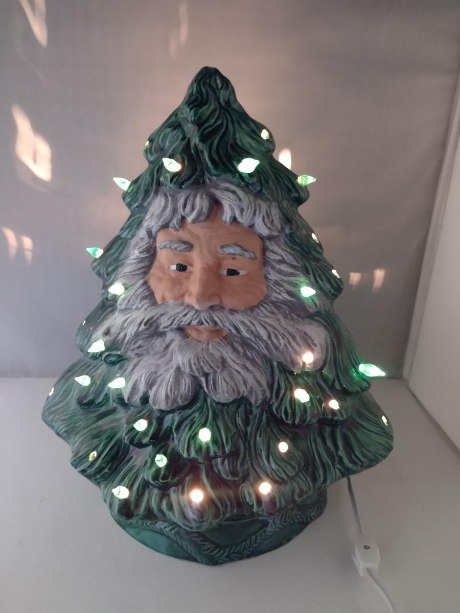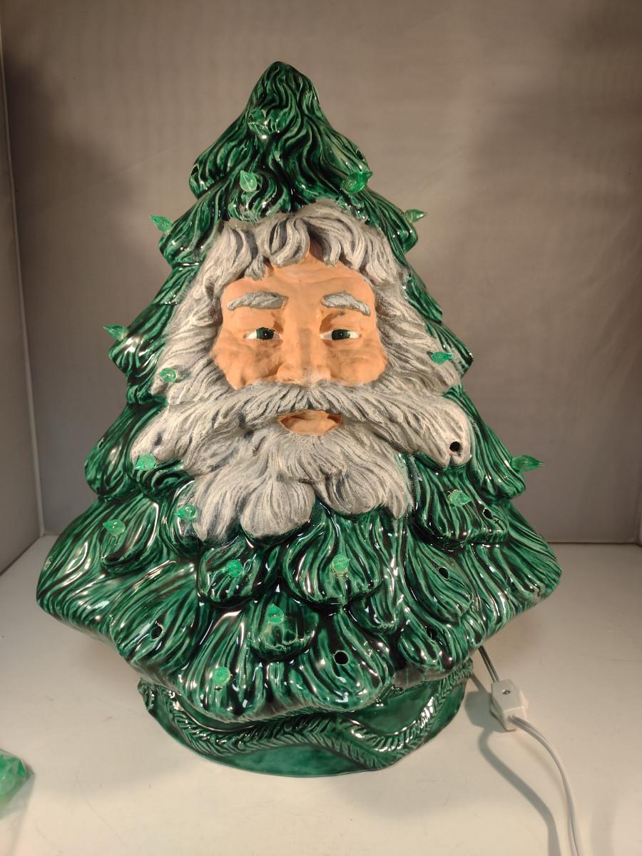 Ceramic Christmas Tree with Santa Face- Approx 15" Tall. Star is broken- needs replacing. Item may be missing bulbs.