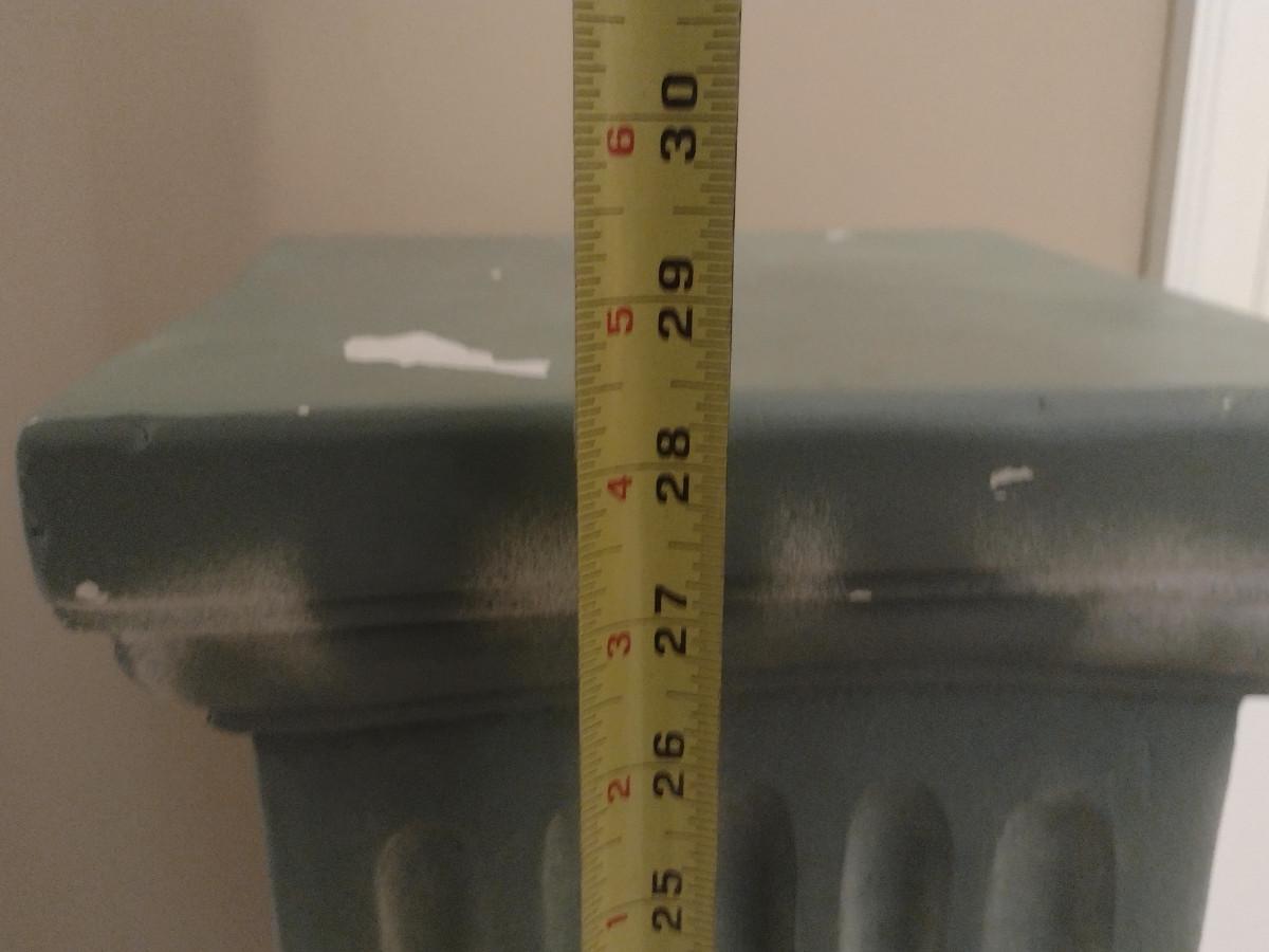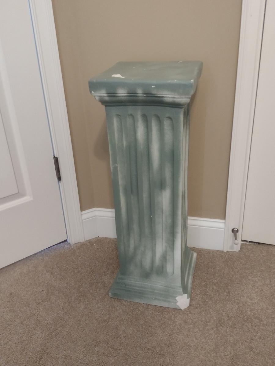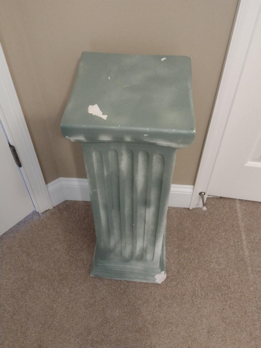 Ceramic Column Shaped Pedestal- Approx 10" Square, 28 1/2" Tall. Item has damaged corner- please see all pictures for condition.