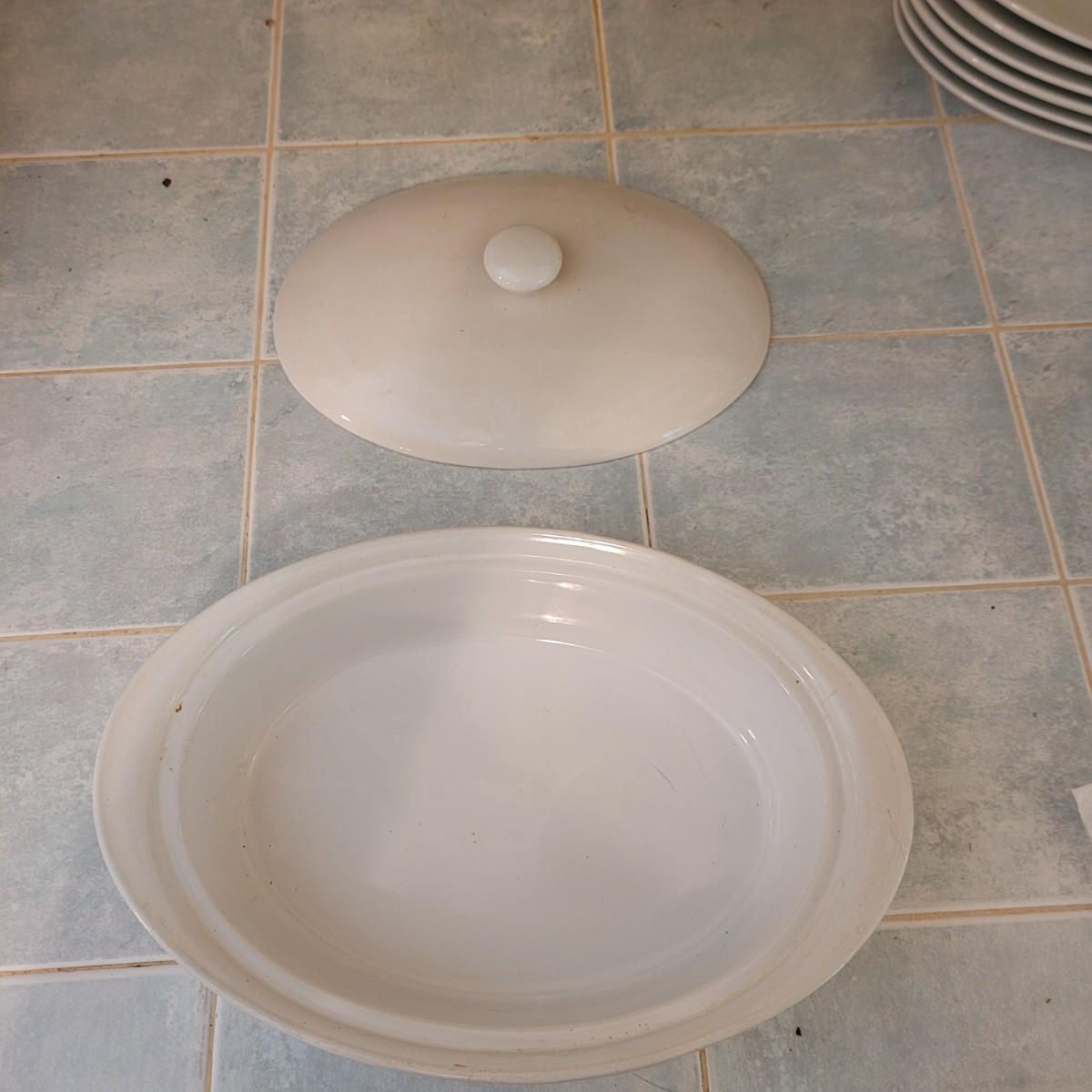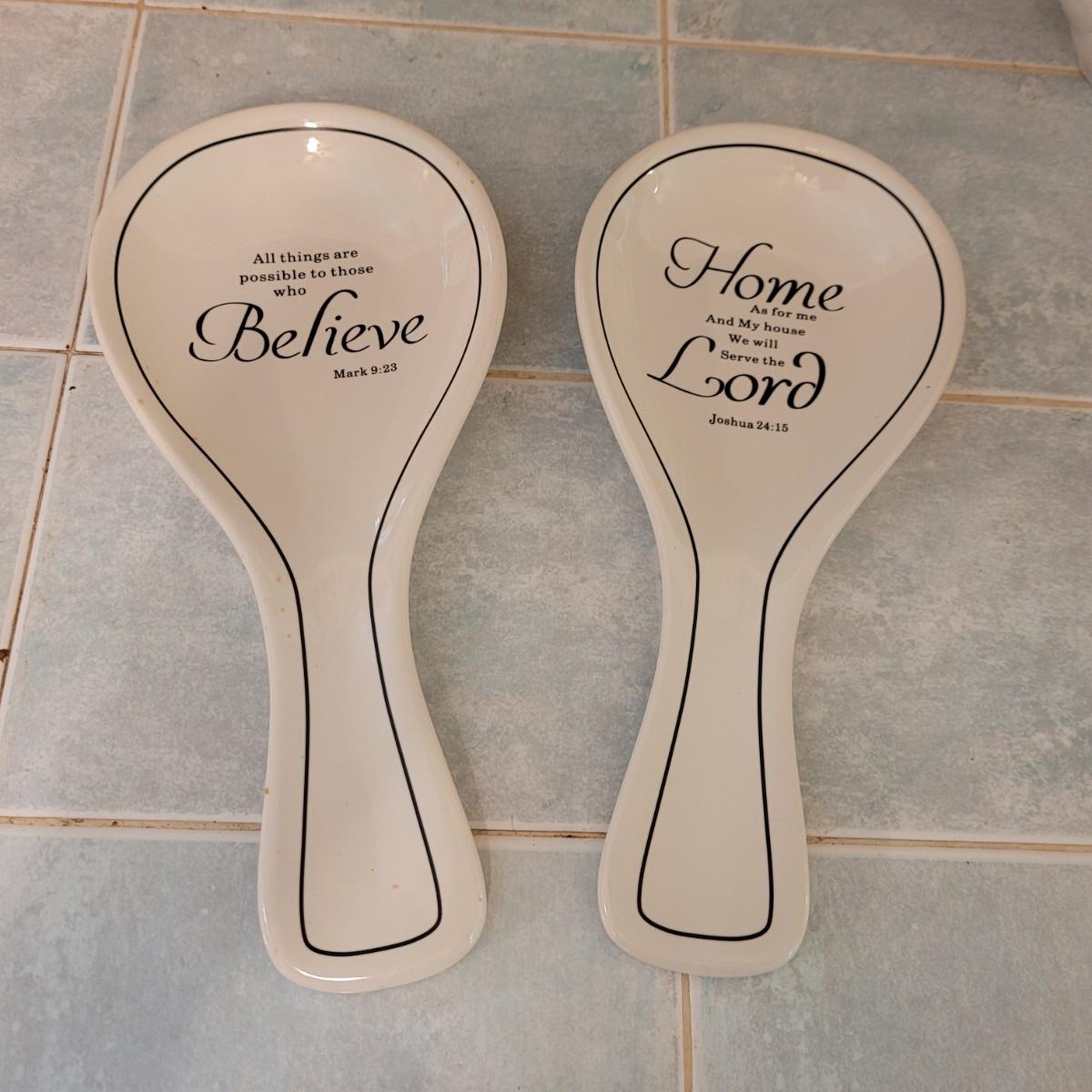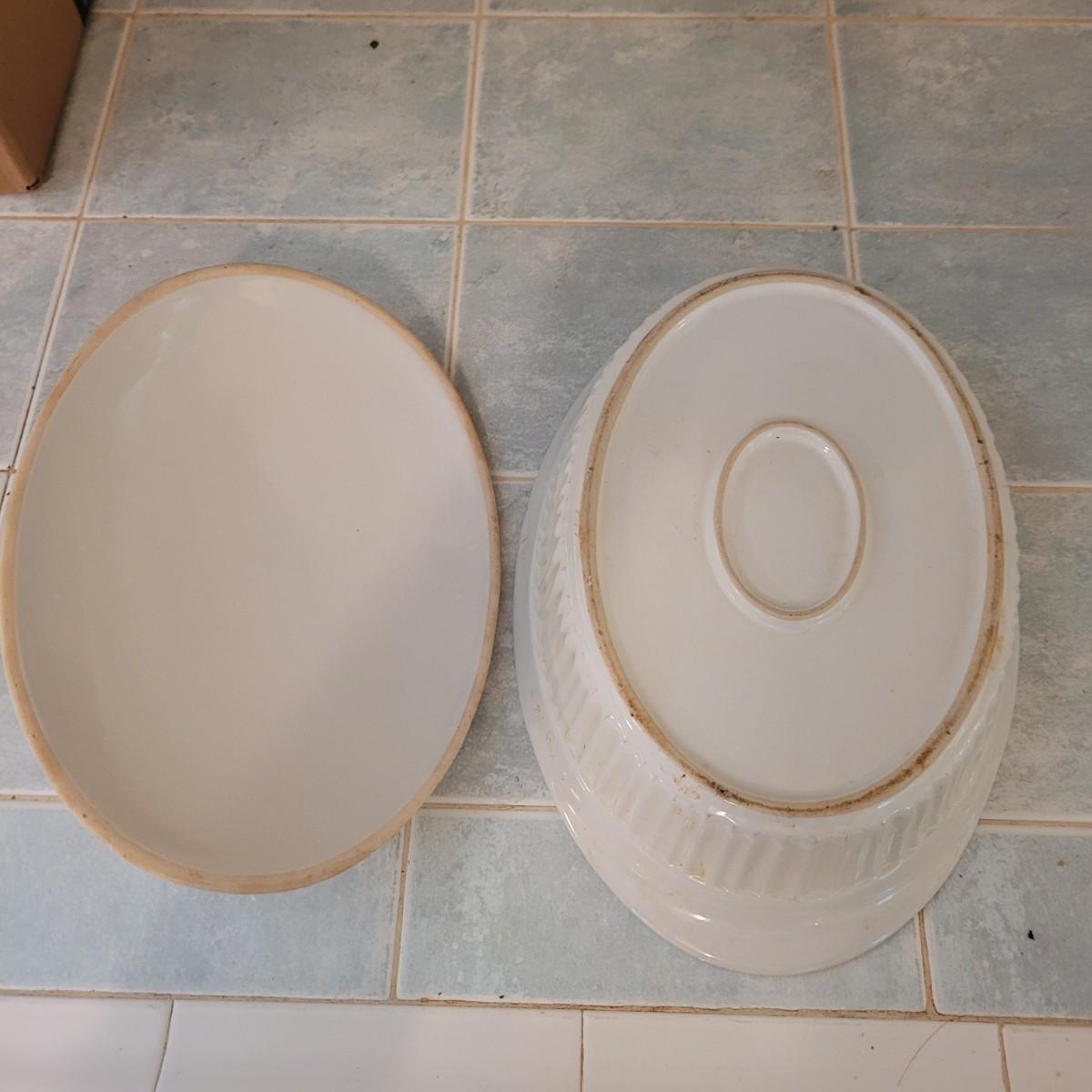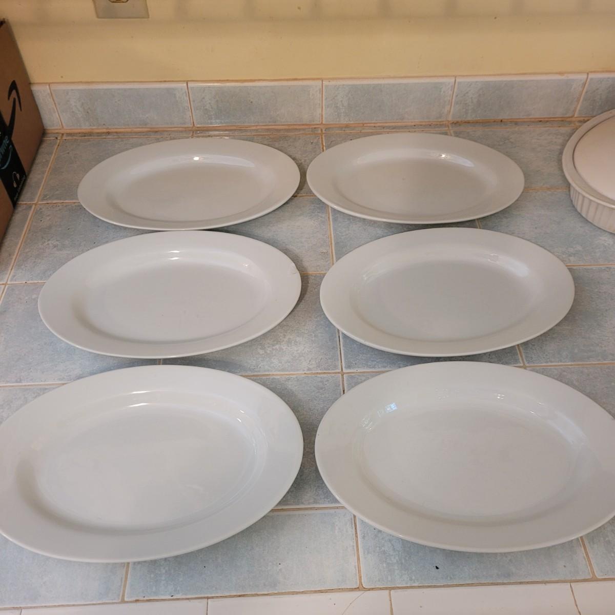 Large assortment of ceramic cookware and serve ware, including six long oval plates, a casserole dish, eight corncob holders, a large and small pie baking dish, two cooking spoon rests with Biblical verses, two small serving bowls, two small baking dishes (one lid), and an olive oil pourer. One corn holder dish and one plate have chips, see photos. Large pie dish measures approximately 11"DIA. Shipping available.