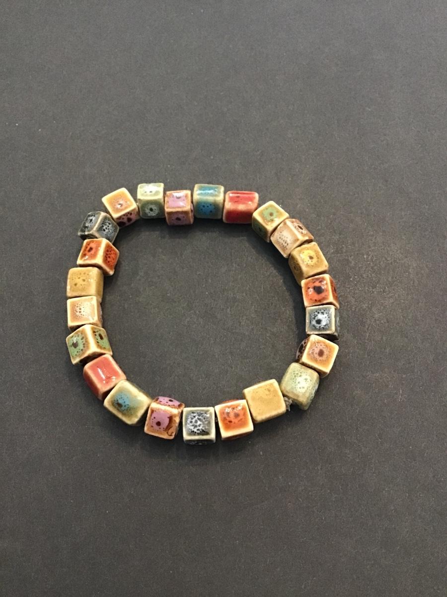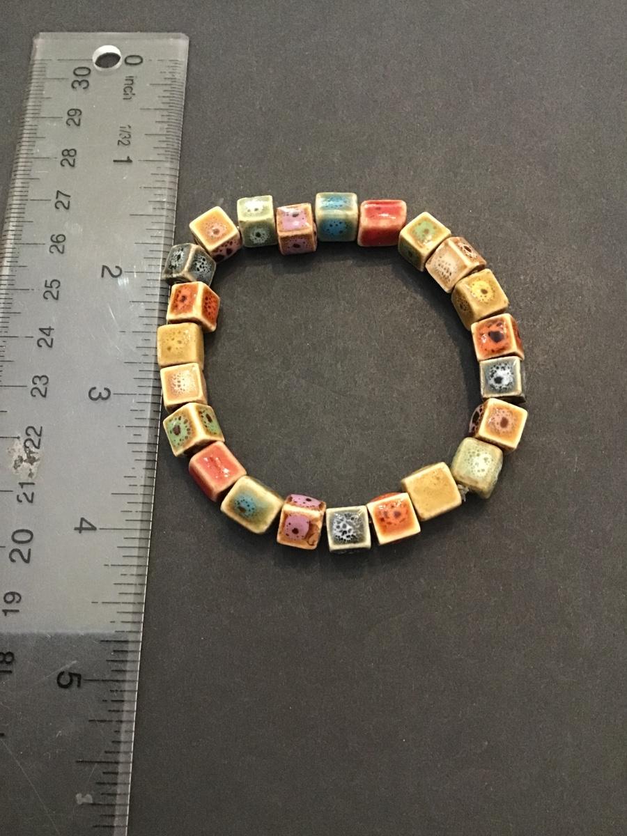 Ceramic cube beaded stretchy bracelet. Please see attached photos.