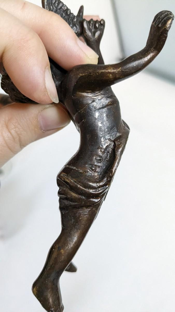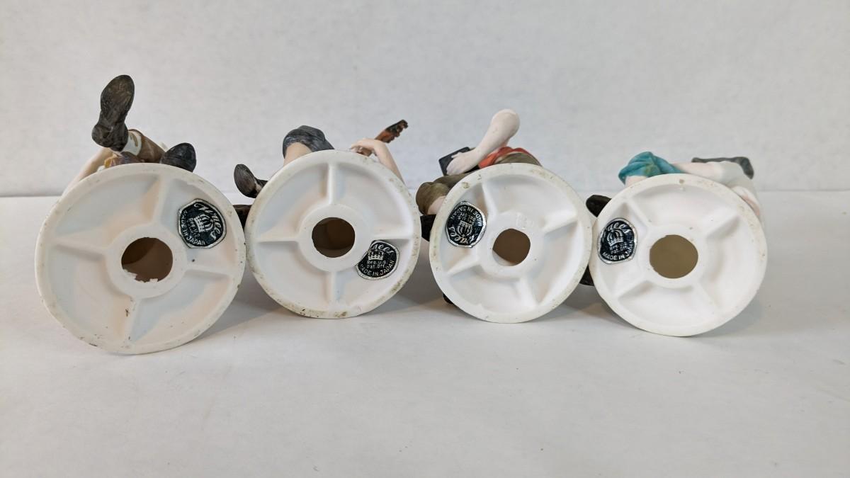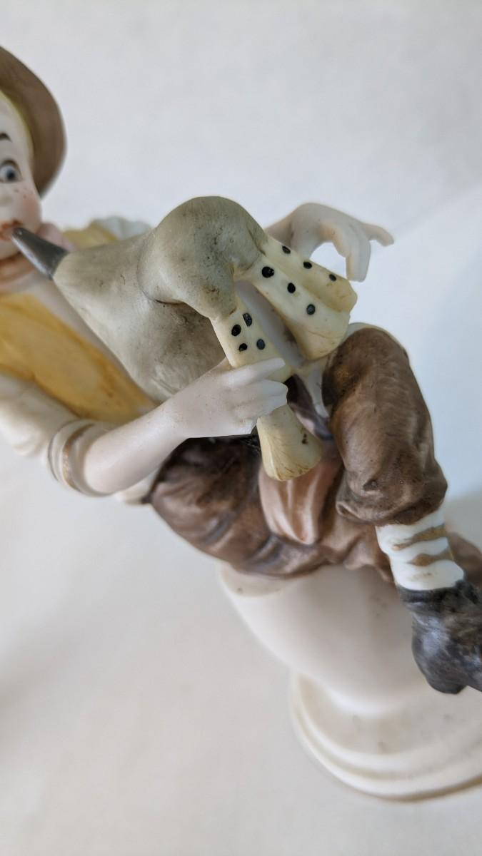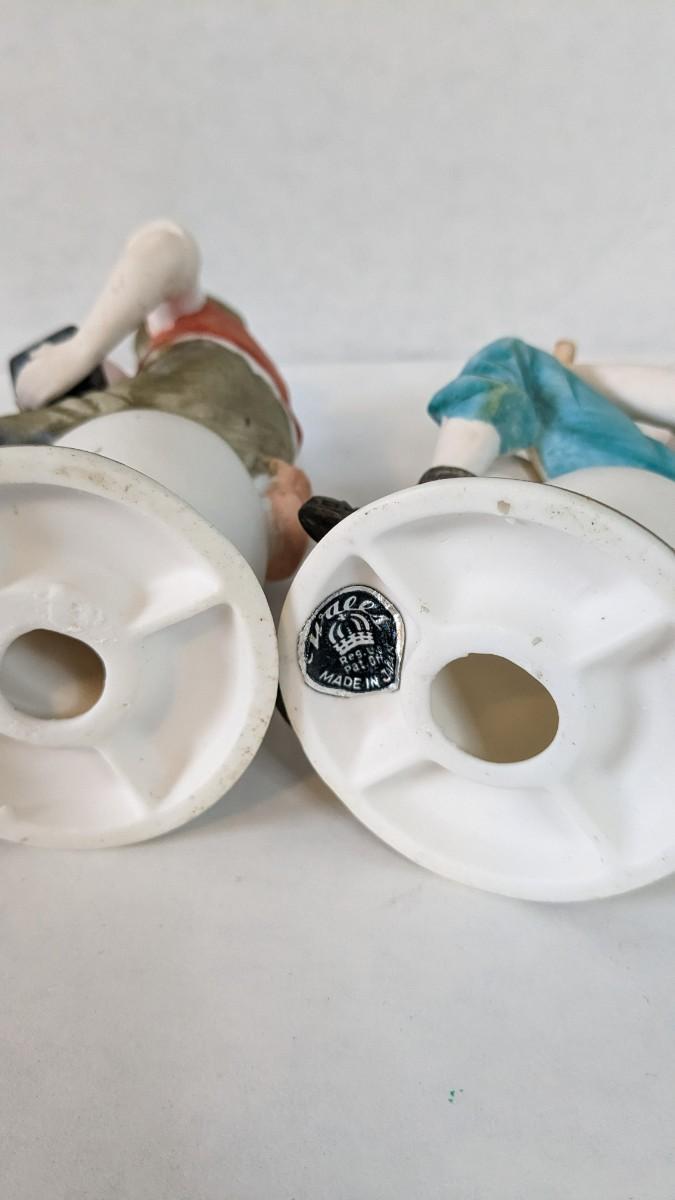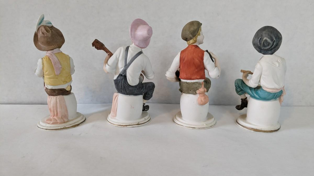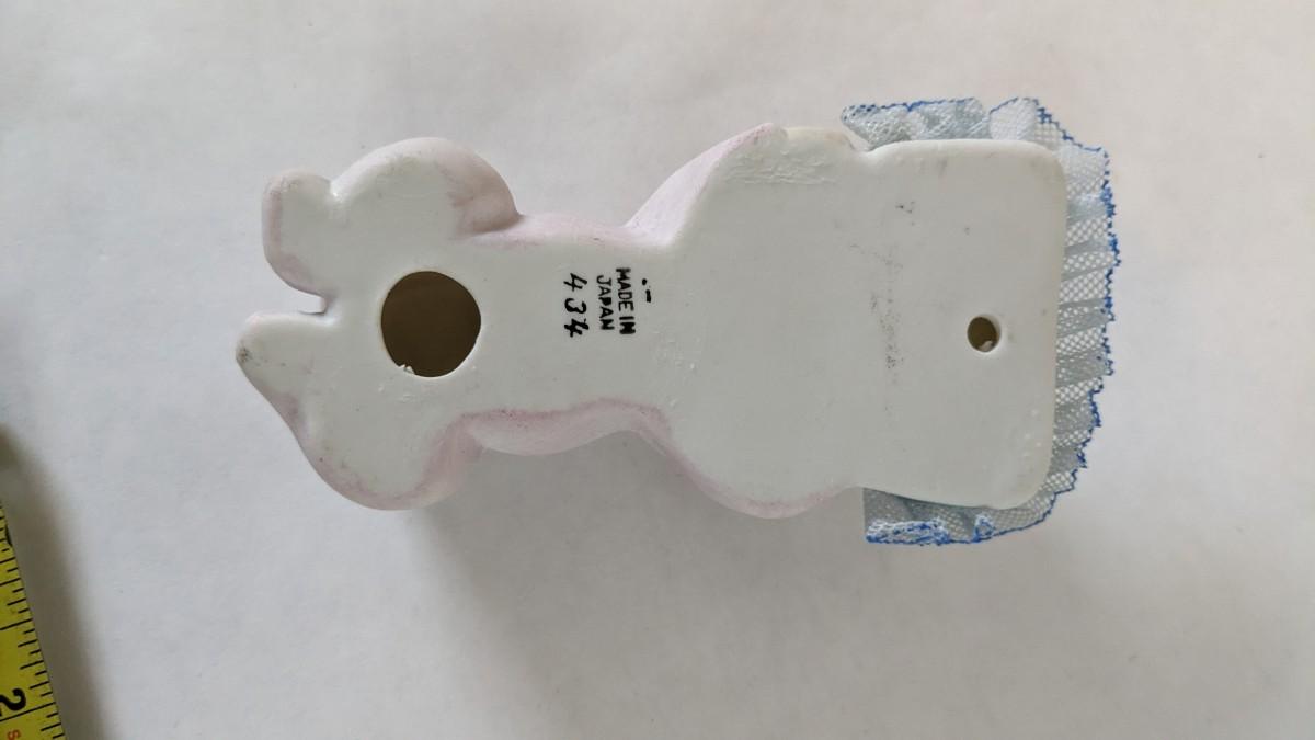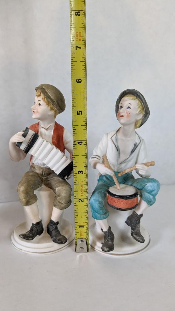 (4) Wales brand music makers. Note one has a missing pinky, no other flaws noted. (2) Japan made baby wall hangers with amazing detail to pillow edges, no damage noted to these. Finally a beautiful bronze cast cherub with AOD on side. Appears to have had an attached piece at one point, displays beautifully.