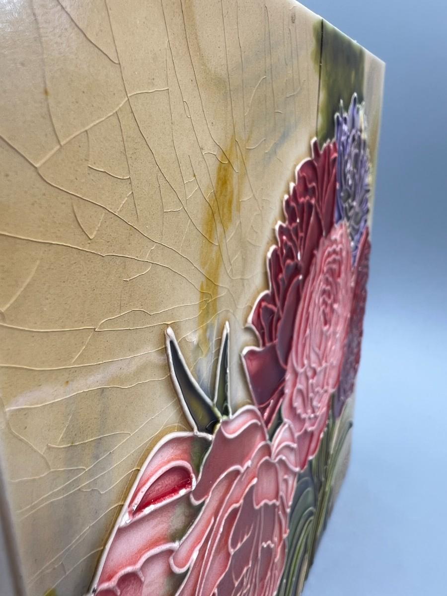 Ceramic Decorative Artist Signed Collectible Flower Tile, there is no signifncant cracks or chips to the tile and is good displayable condition. Check pictures for more details and for sizing.