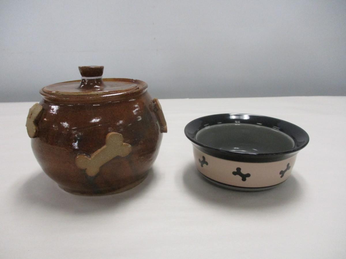 Handmade Pottery Dog Treat Jug/Crock & Bowl
