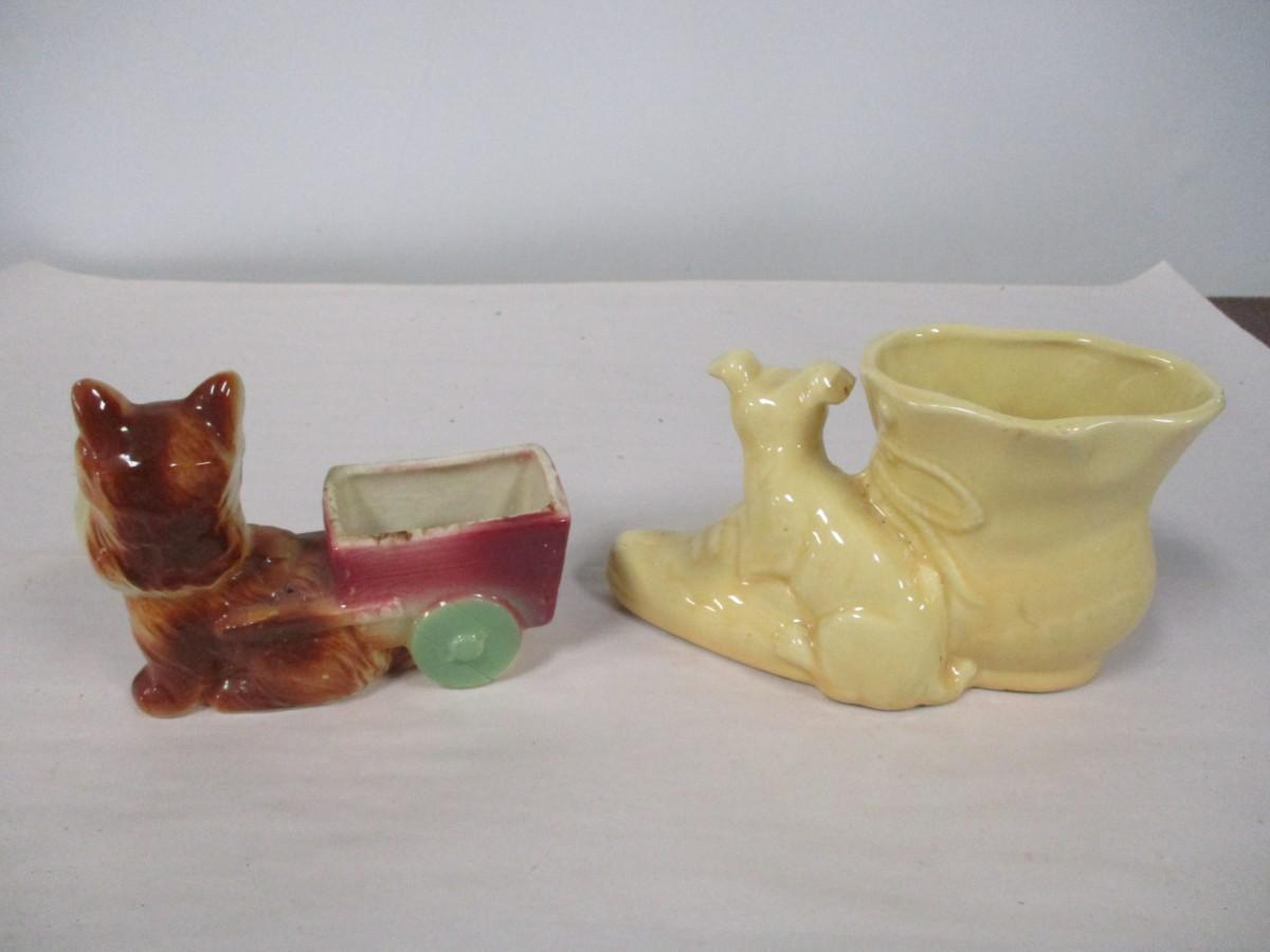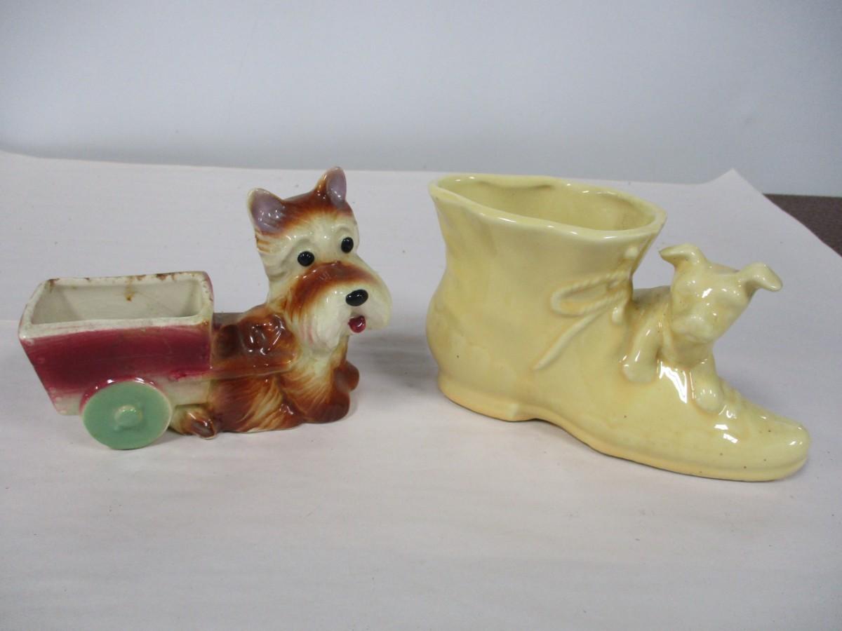 Ceramic Dog & Cart - Dog & Shoe Planters