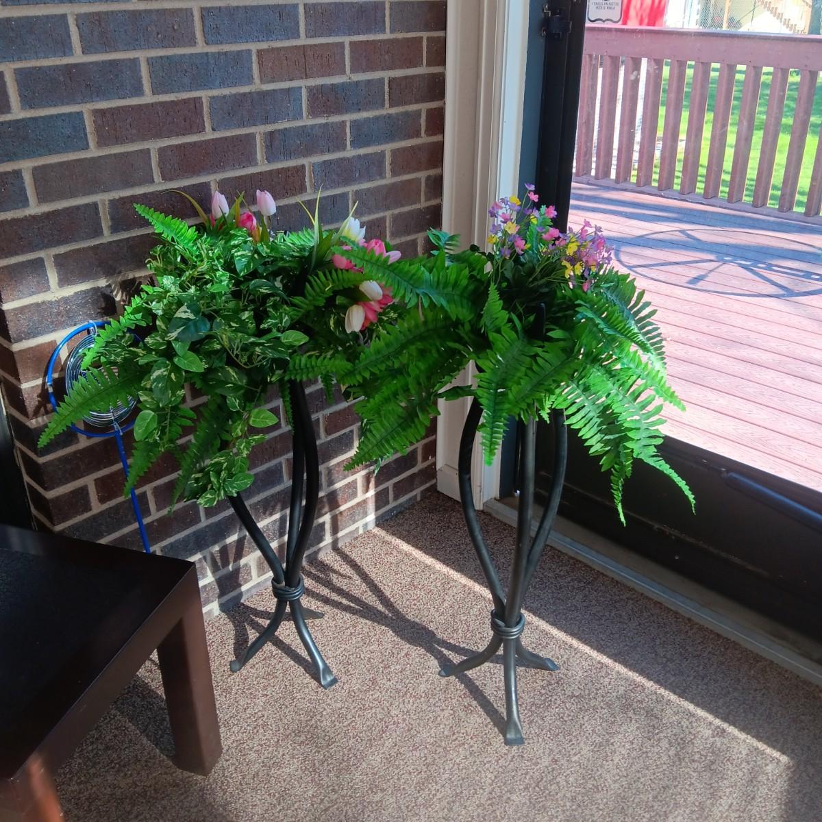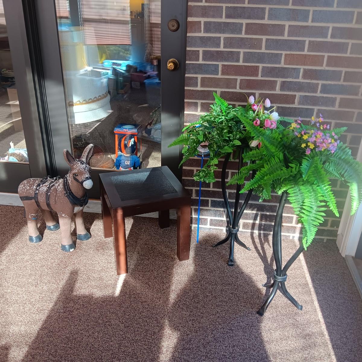 PLANT STANDS ARE 32" TALL, DONKEY IS 20" LONG
