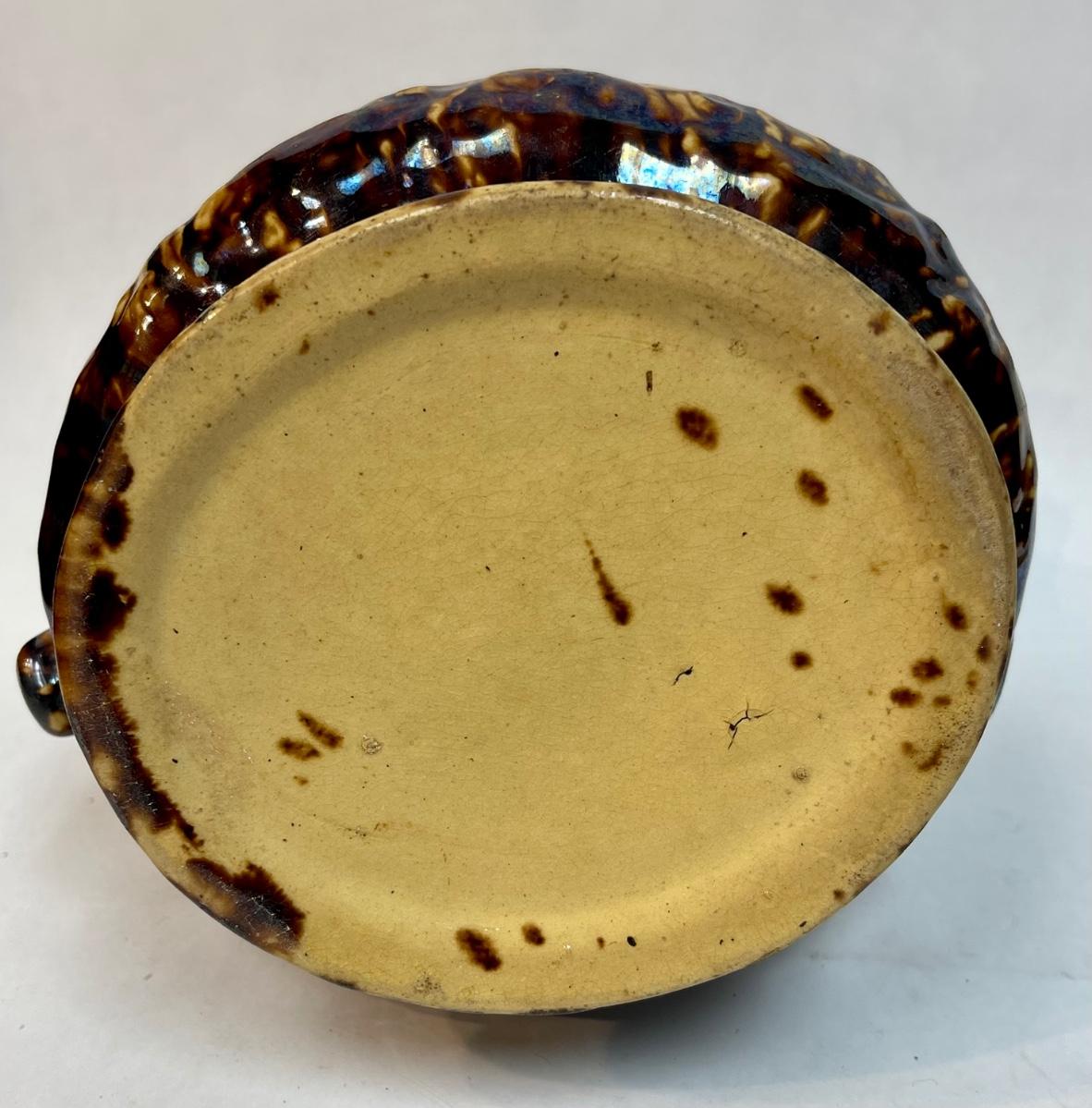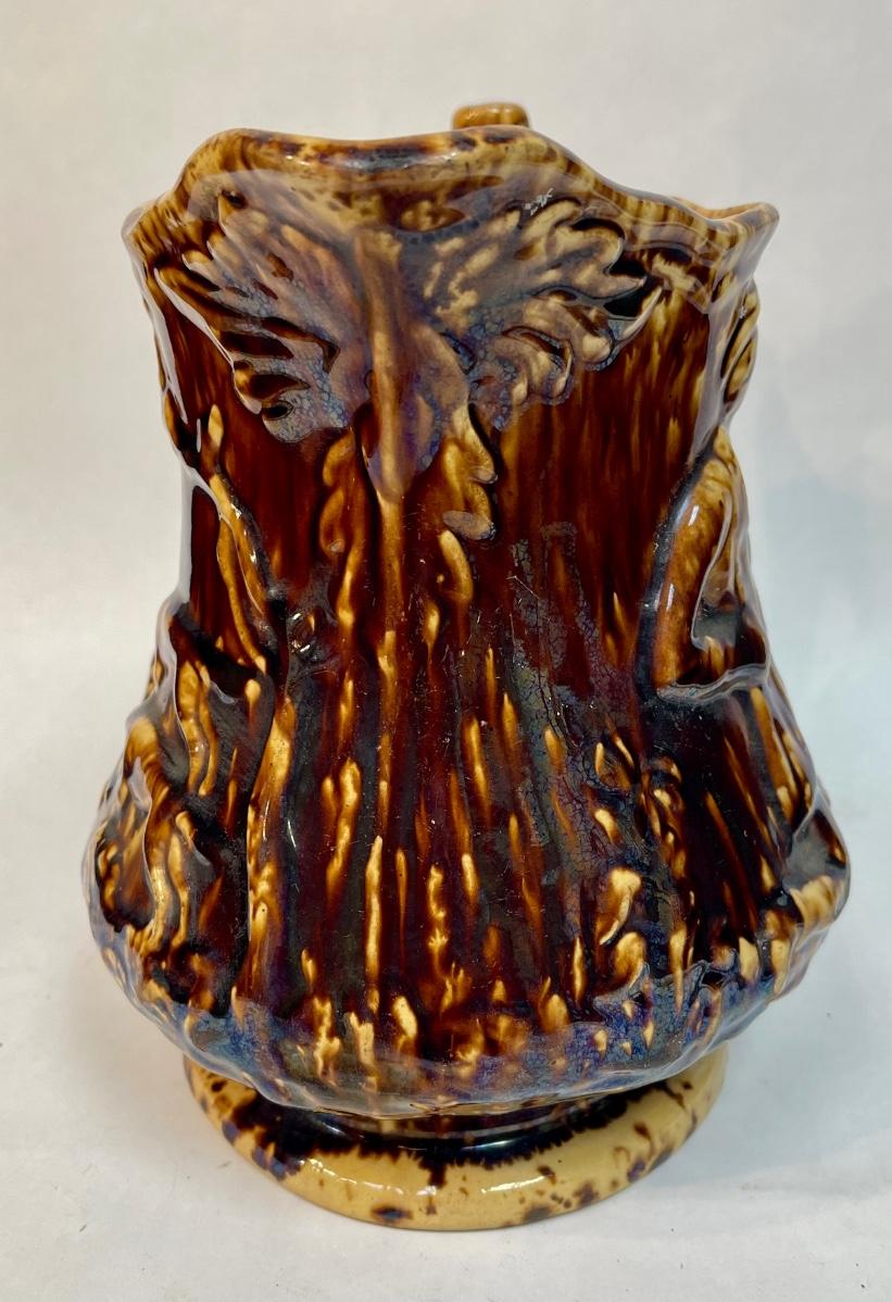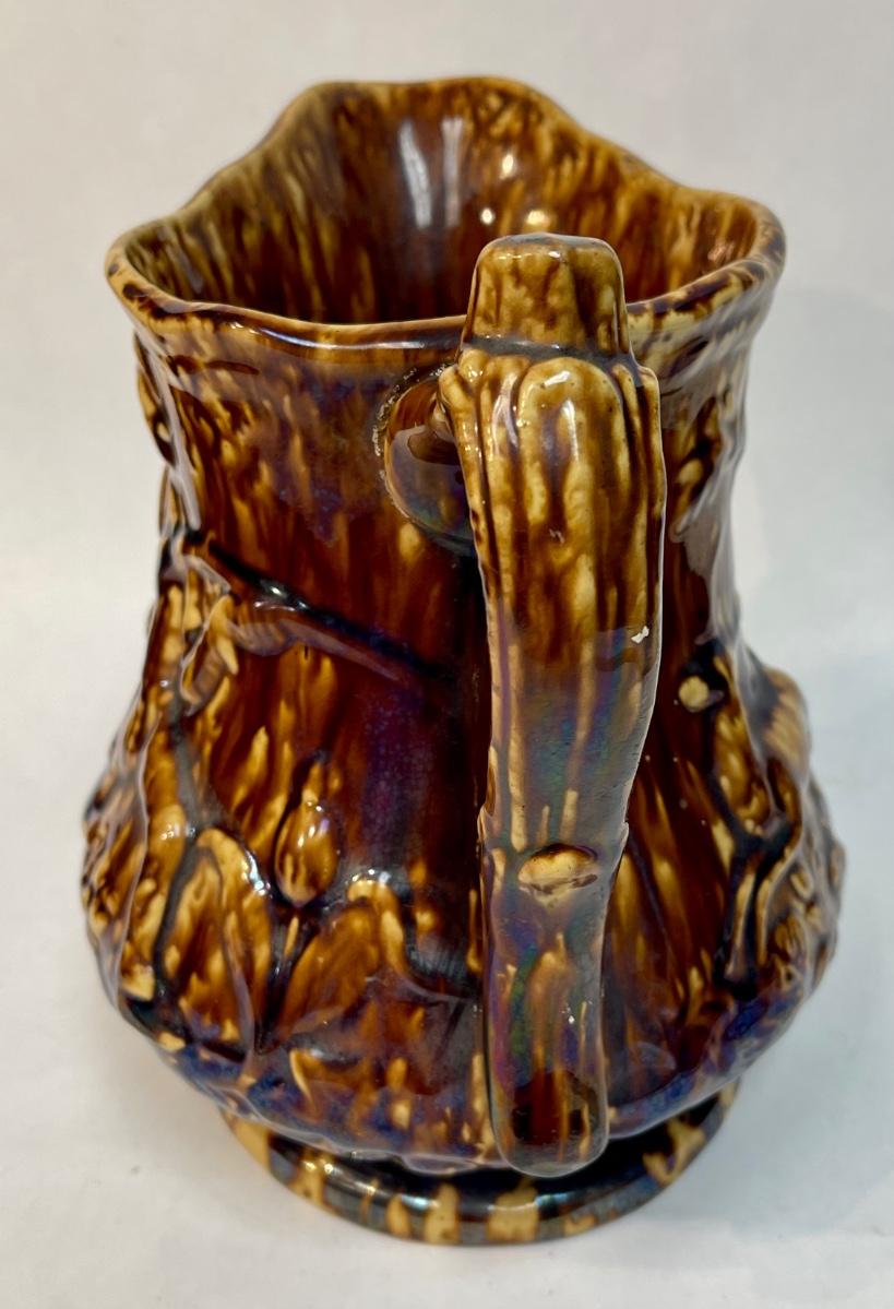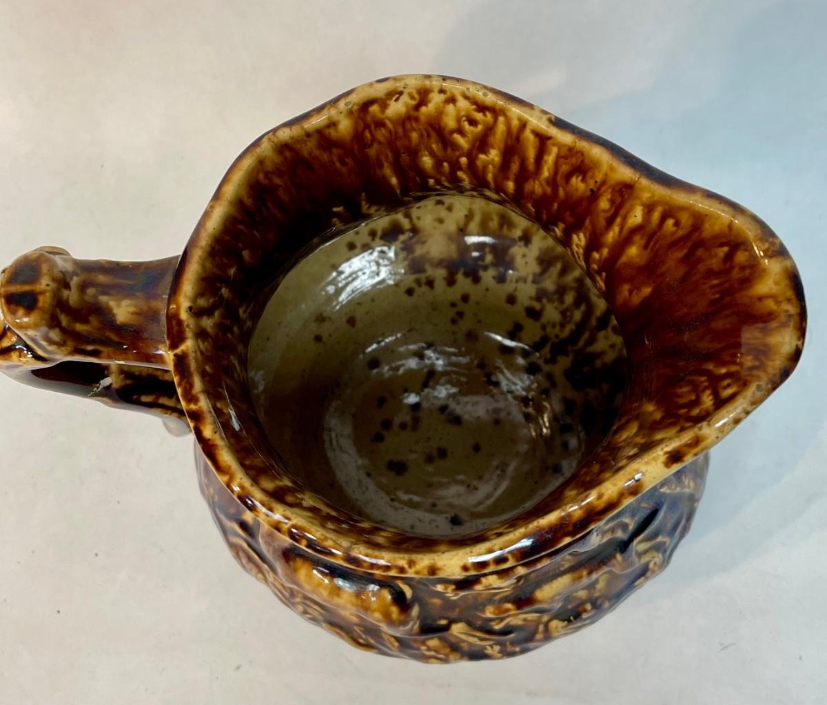 Vintage Brown Ceramic Dripware Pitcher Embossed Man with Gun Hunting Deer