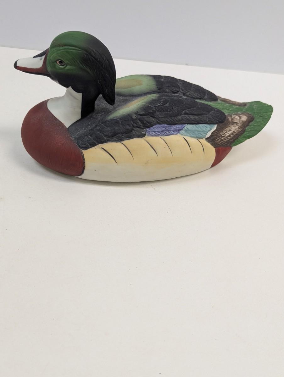 Vintage Bisque Porcelain Mallard Decoy Duck Figurine Hand Painted