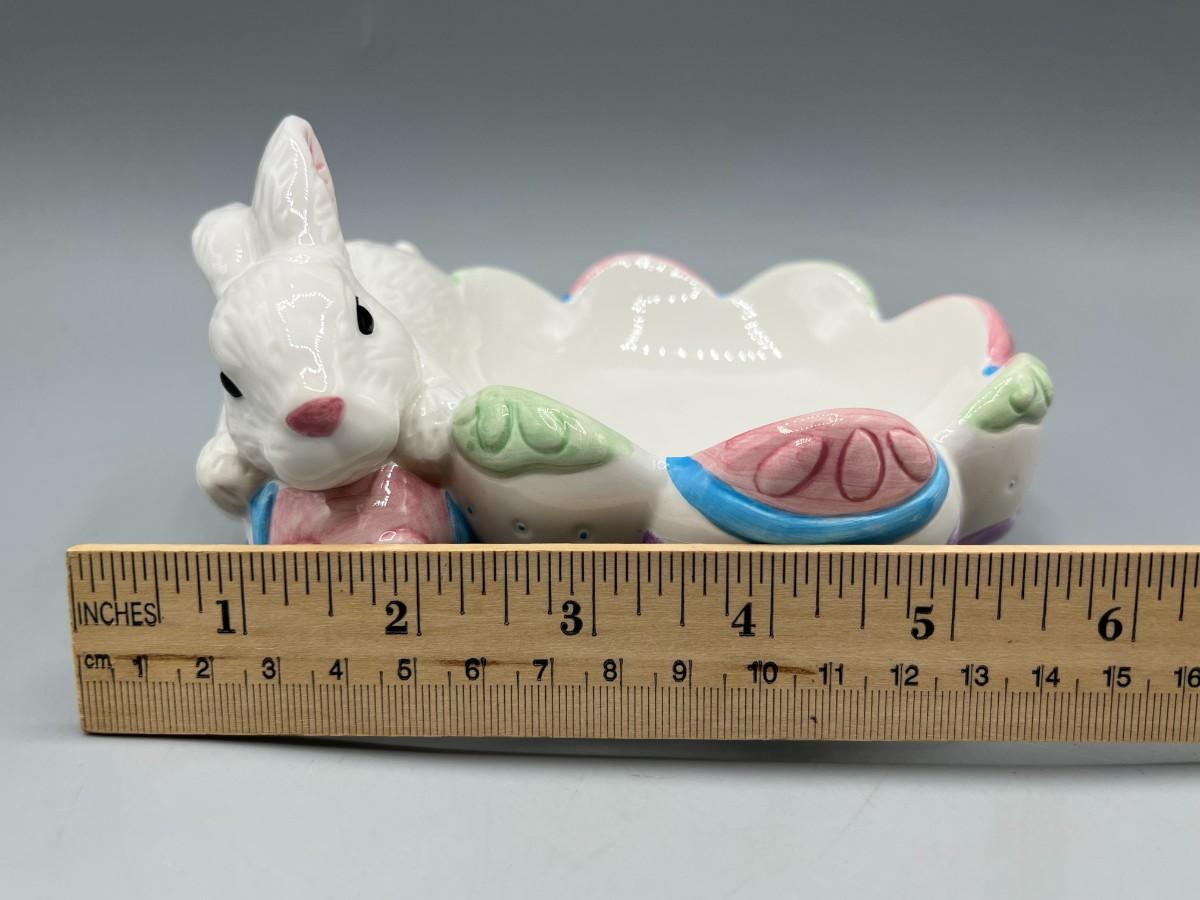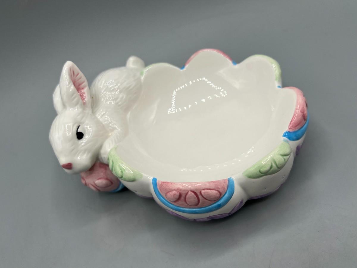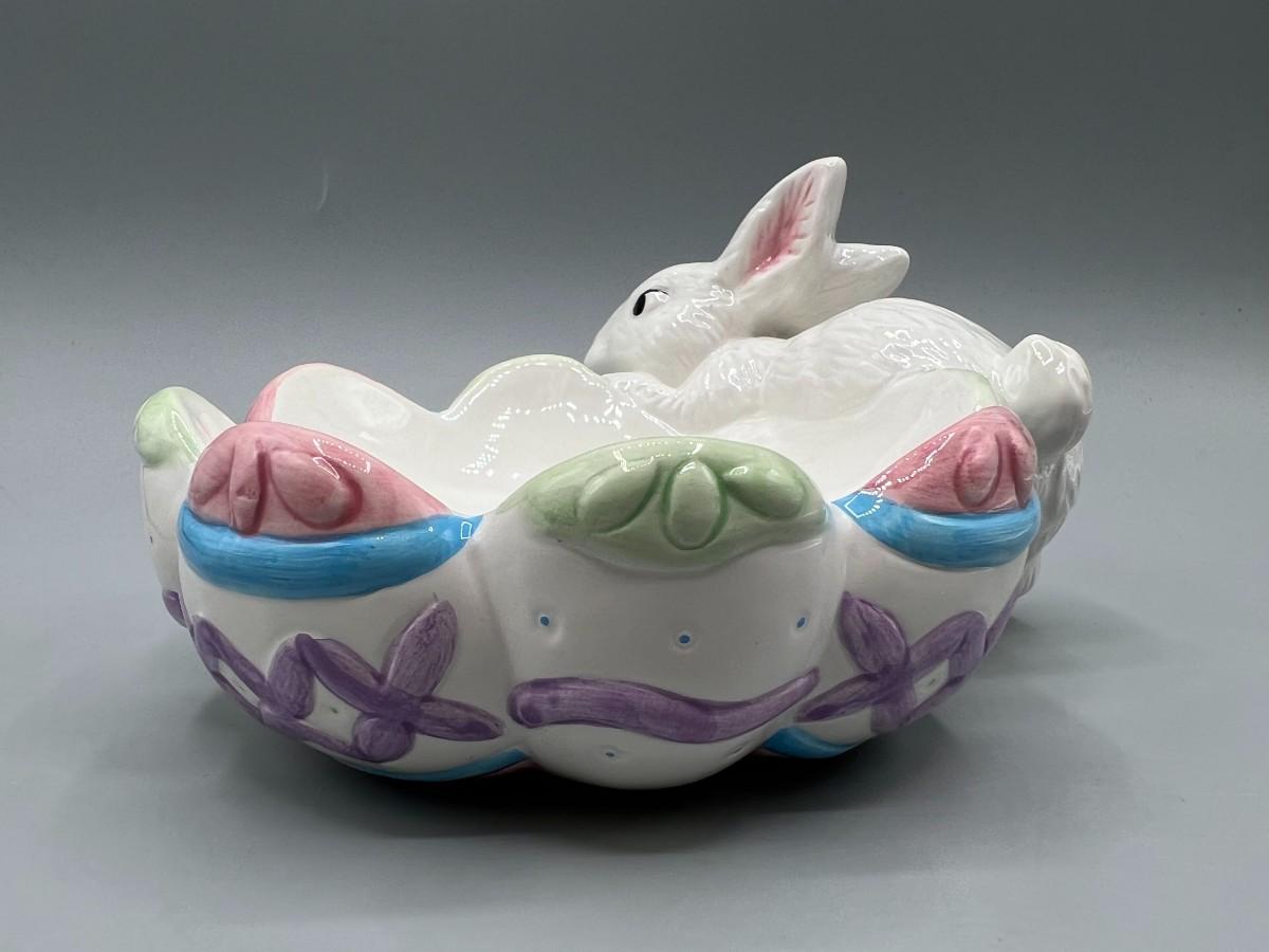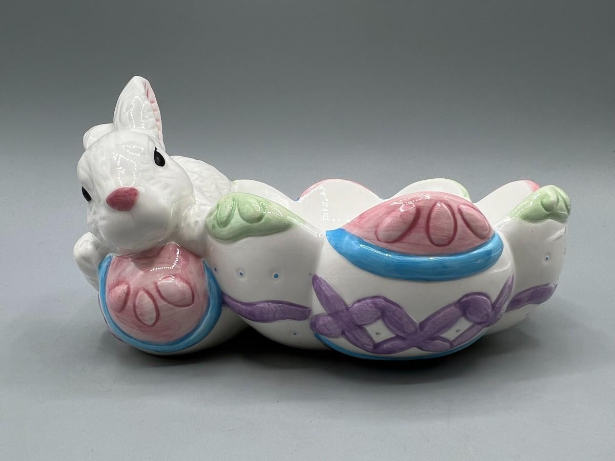 Ceramic Easter Bunny Colorful Egg Candy Trinket Dish