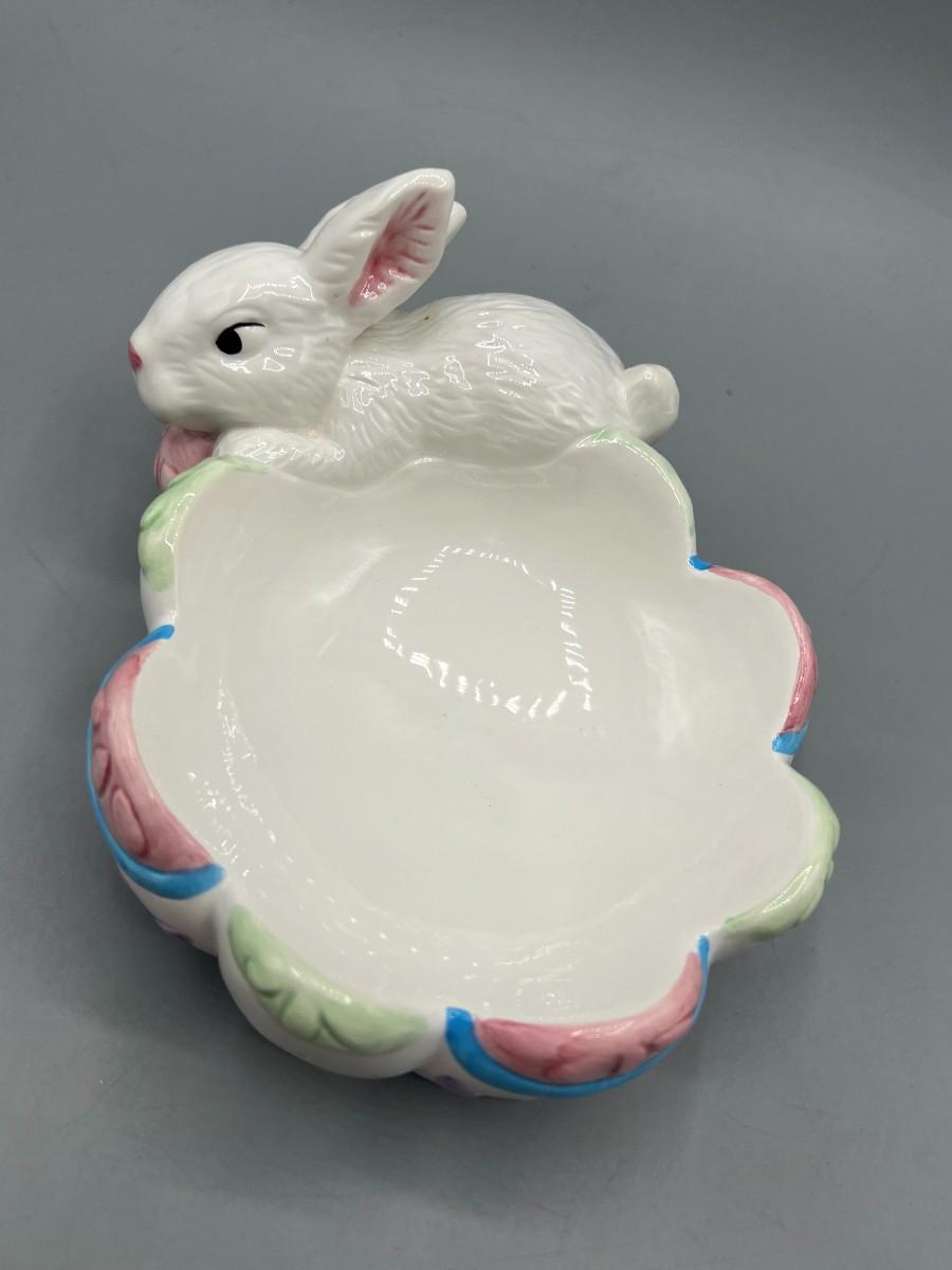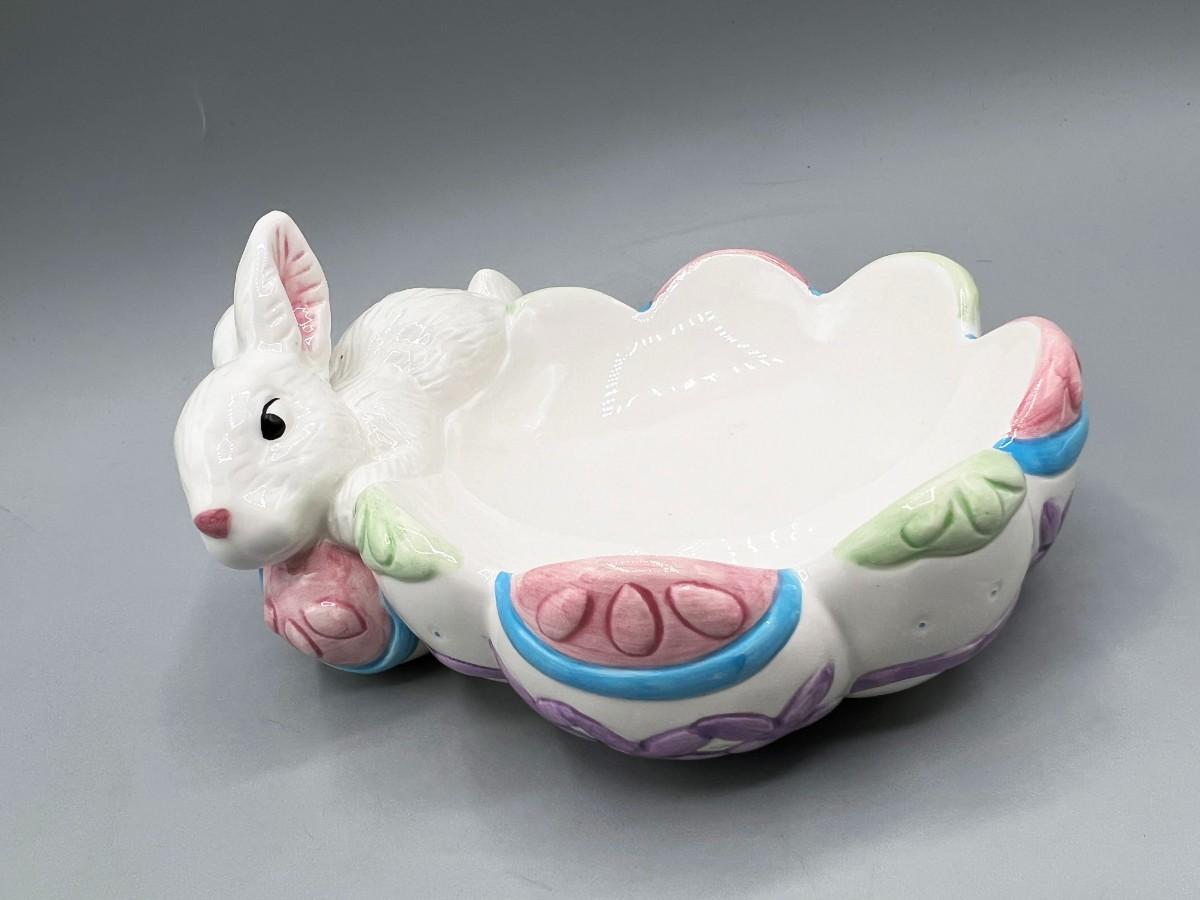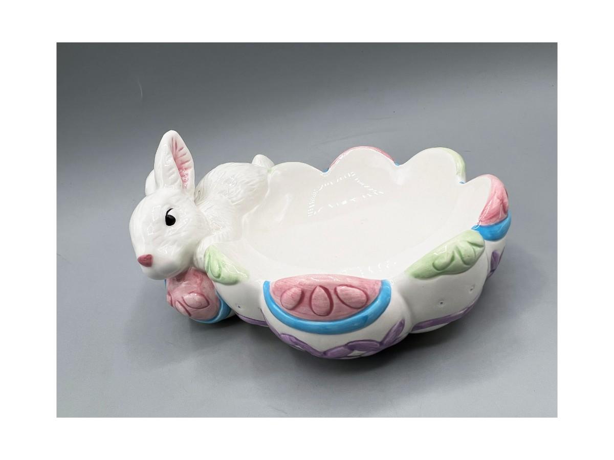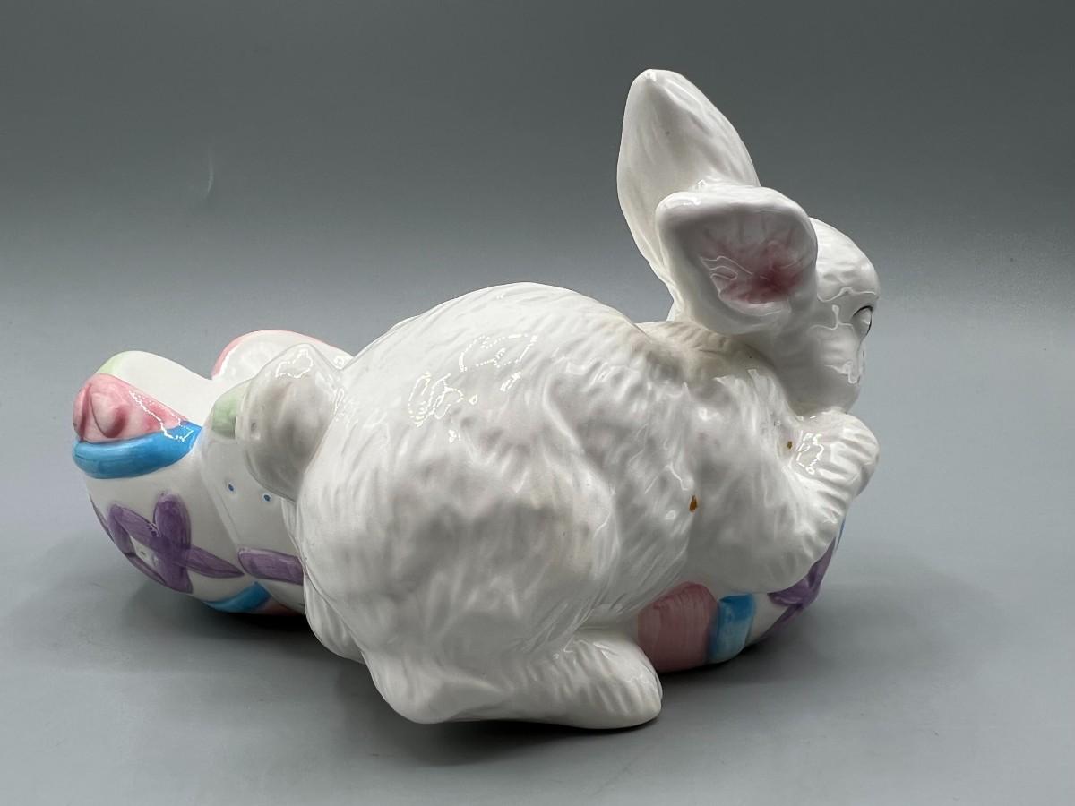 Ceramic Easter Bunny Colorful Egg Candy Trinket Dish