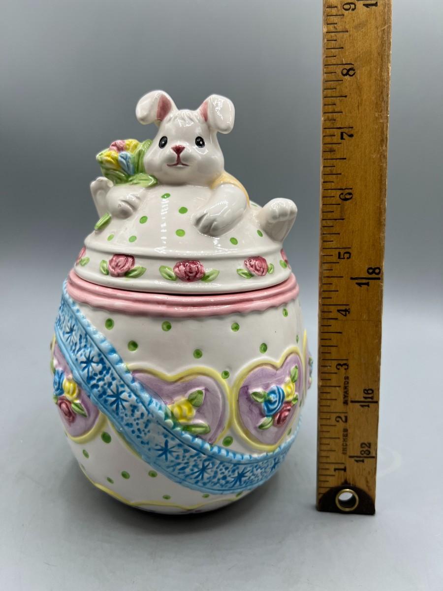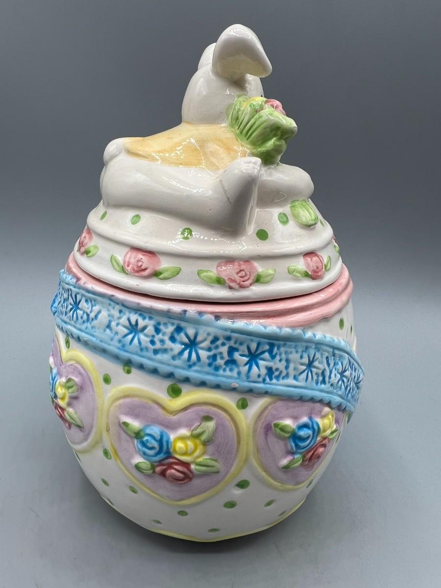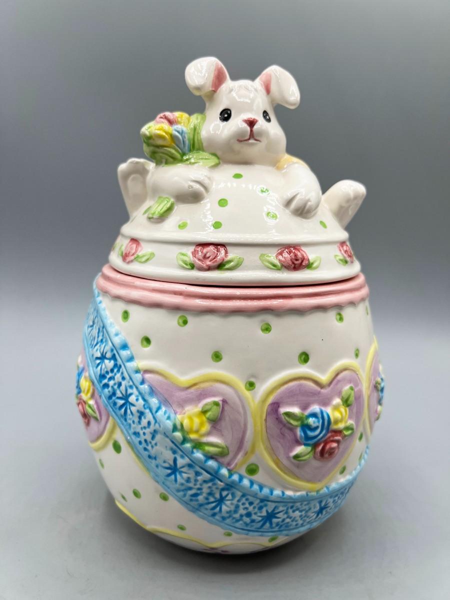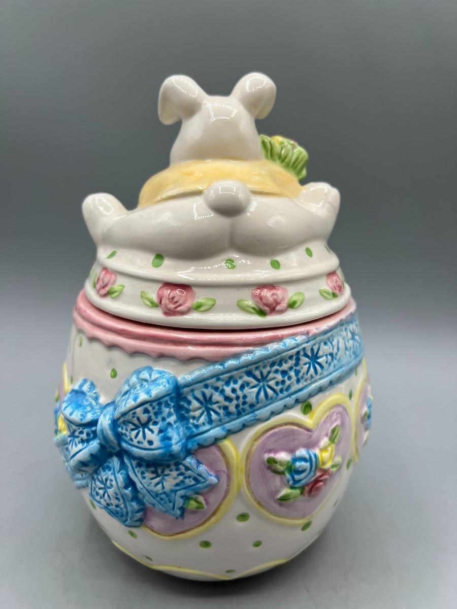 Ceramic Easter Egg Springtime Bunny Rabbit Lidded Canister Candy Dish