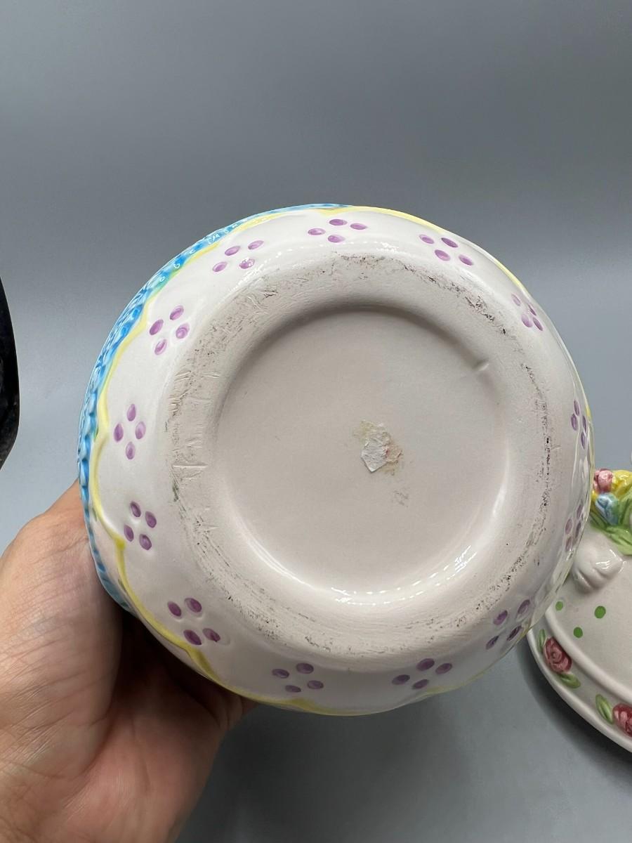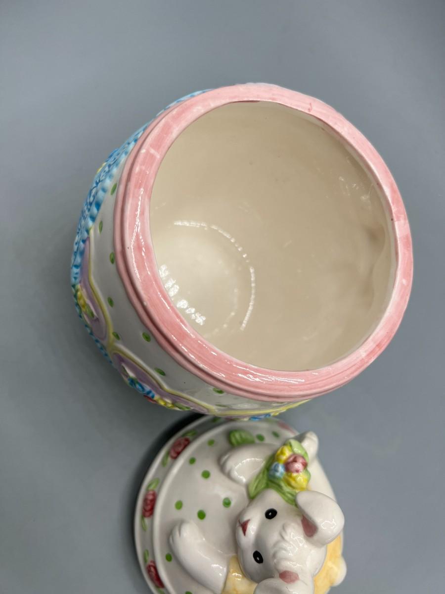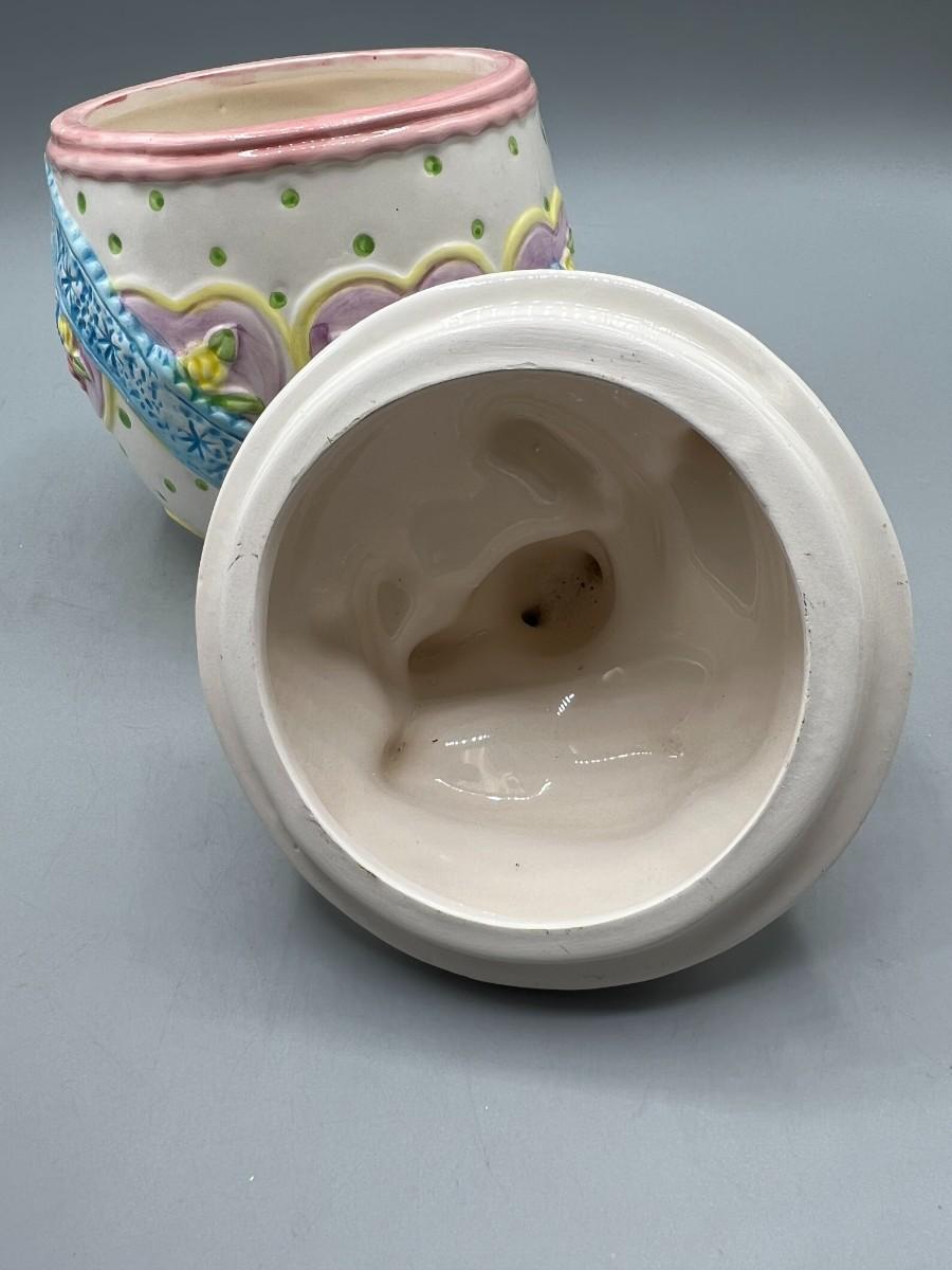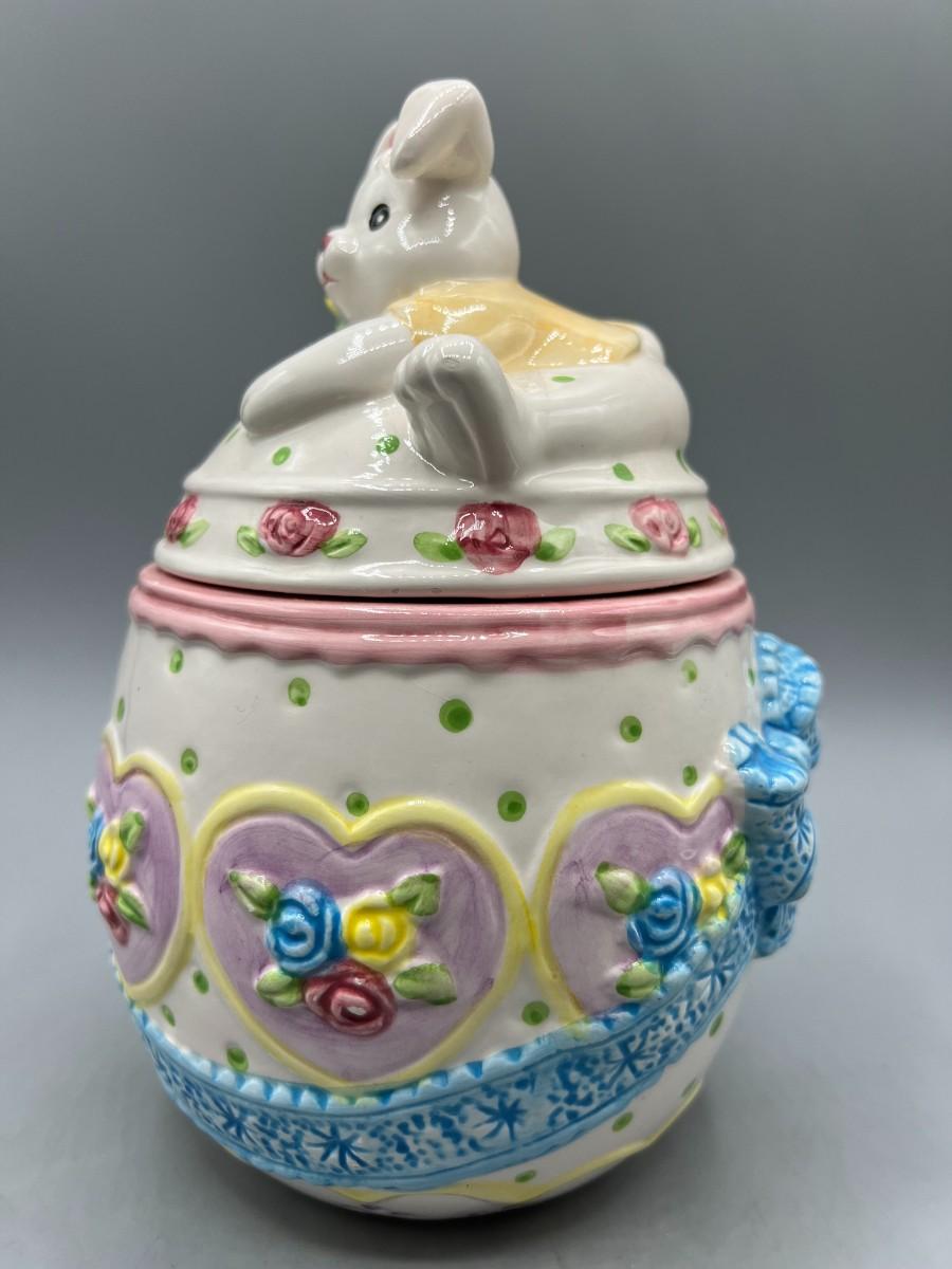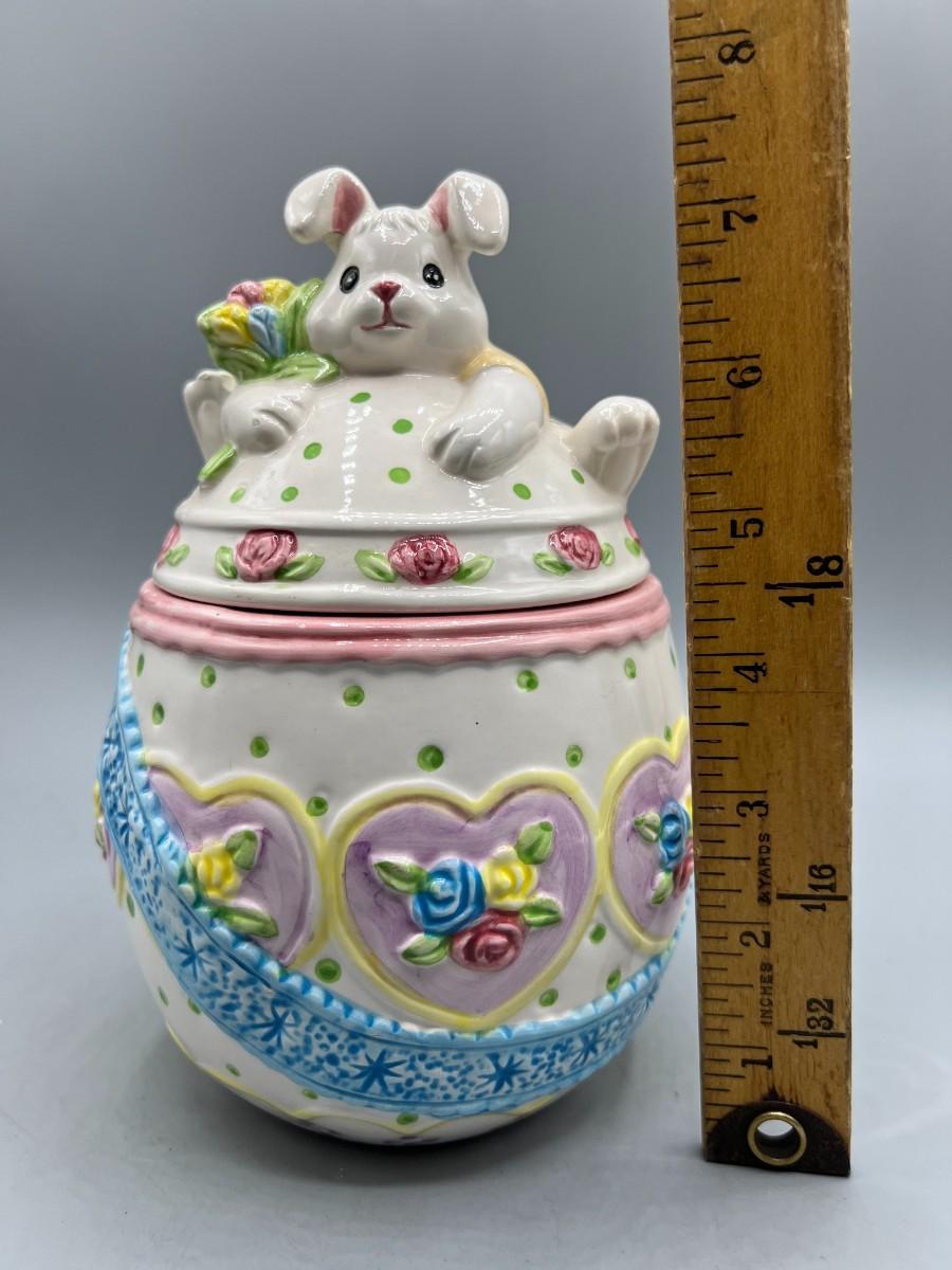 Ceramic Easter Egg Springtime Bunny Rabbit Lidded Canister Candy Dish