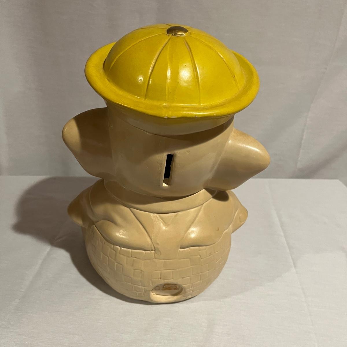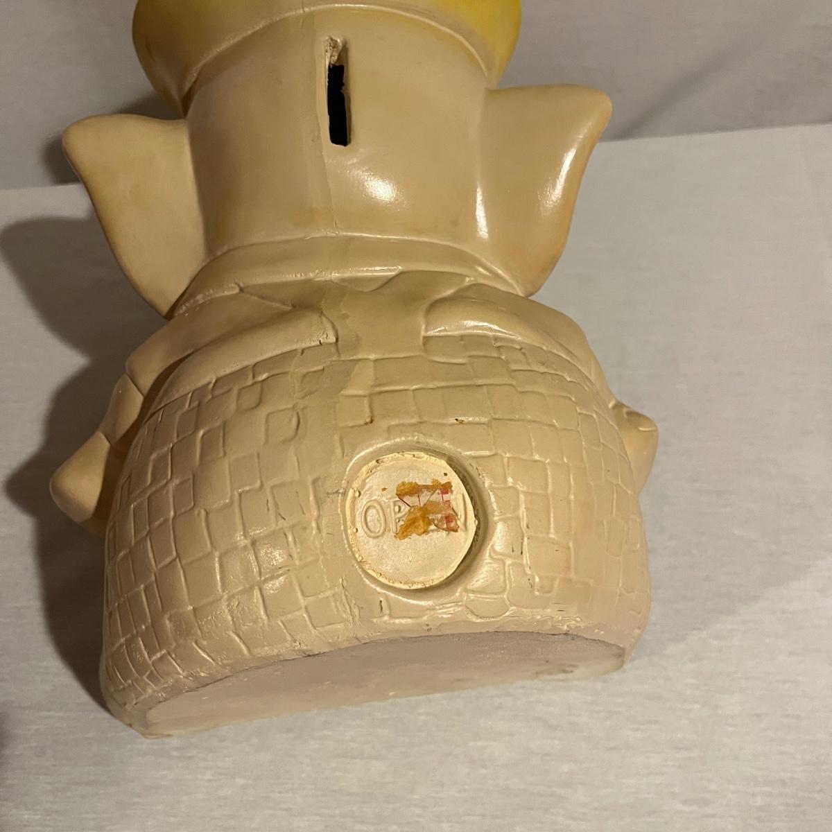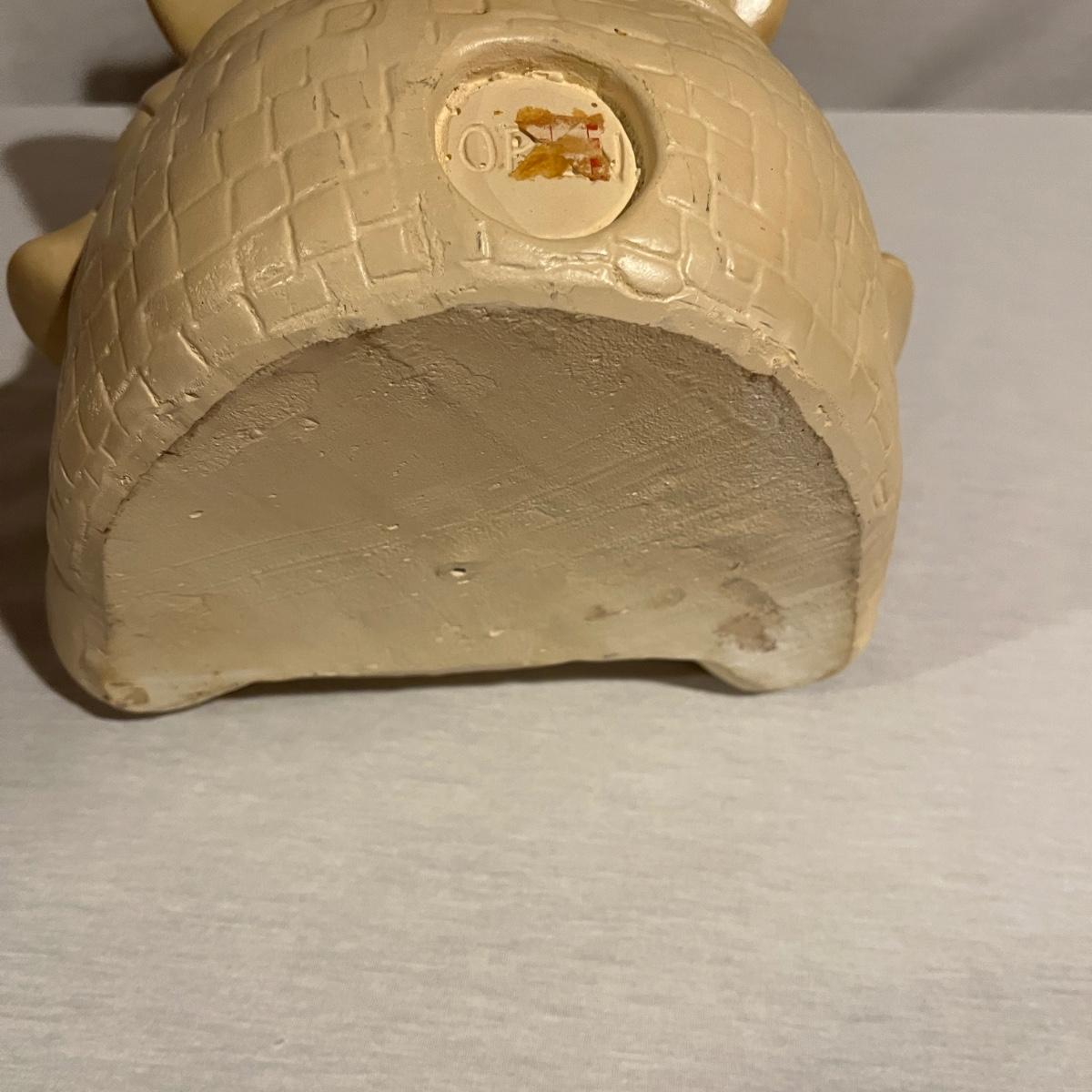 Lot includes a ceramic piggy bank that is possibly chalkware and measures 9” x 8” x 12”H.