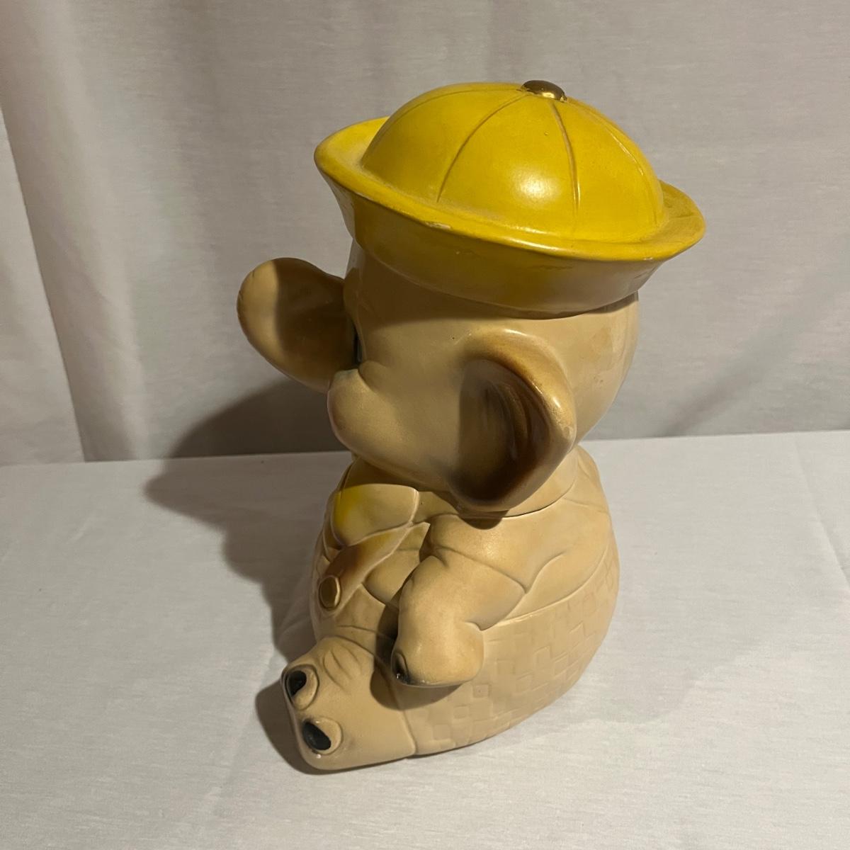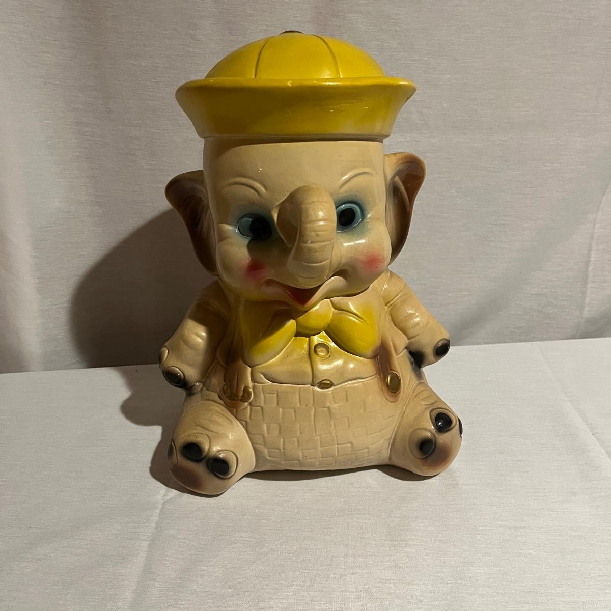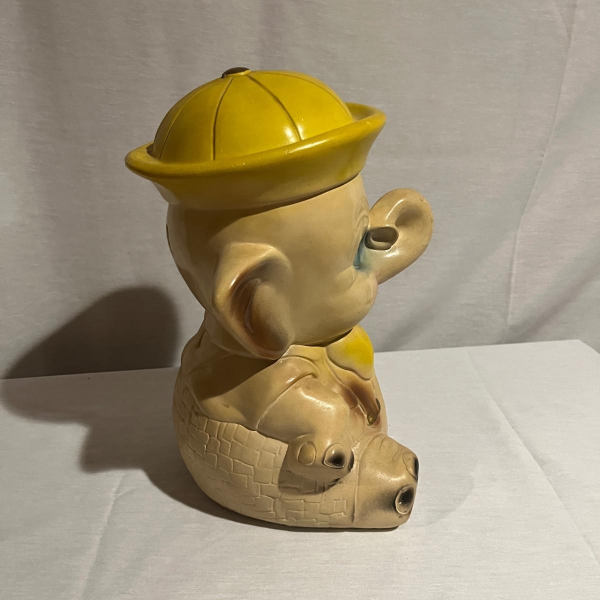 Lot includes a ceramic piggy bank that is possibly chalkware and measures 9” x 8” x 12”H.