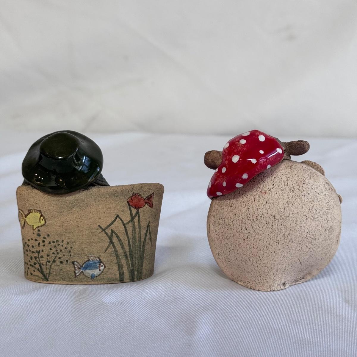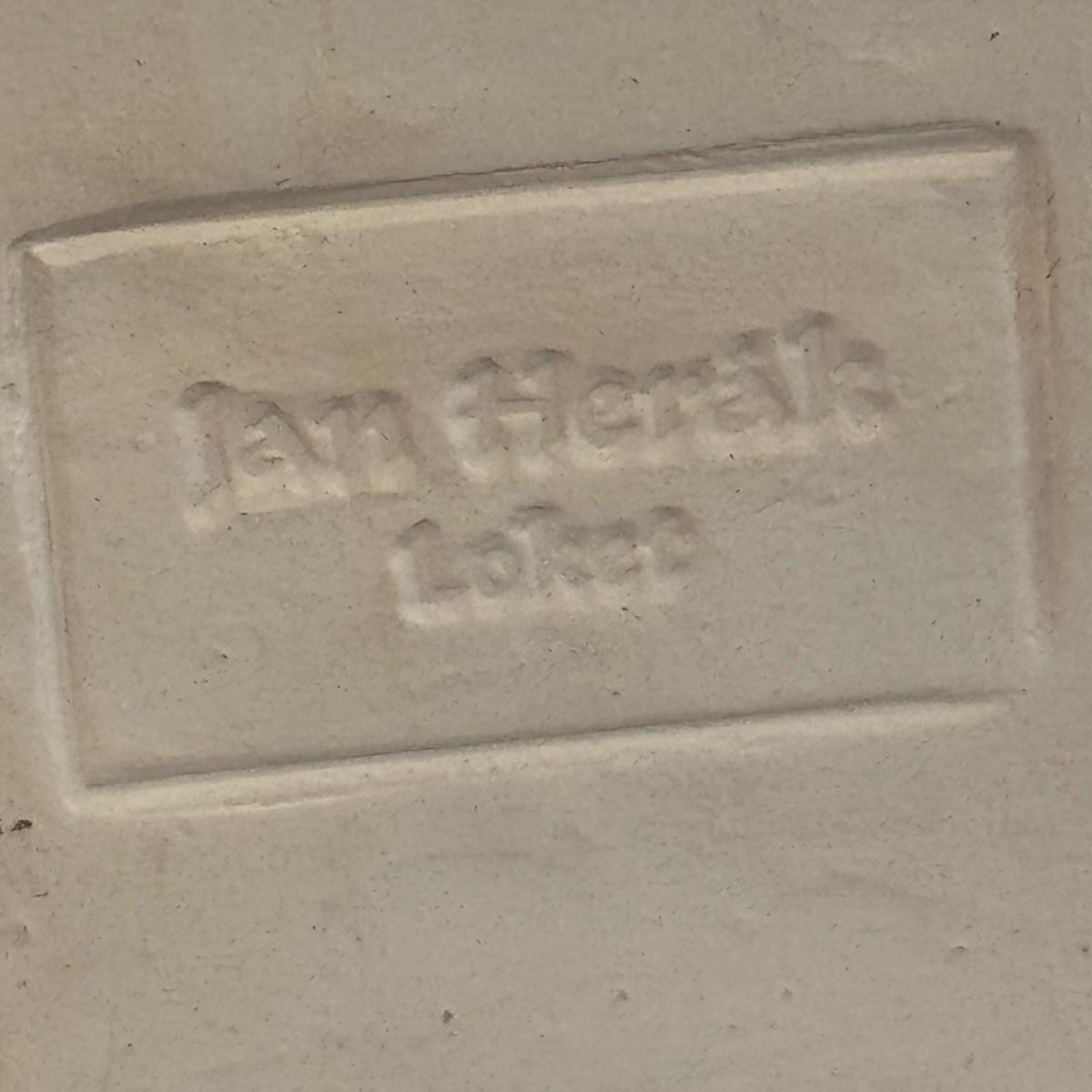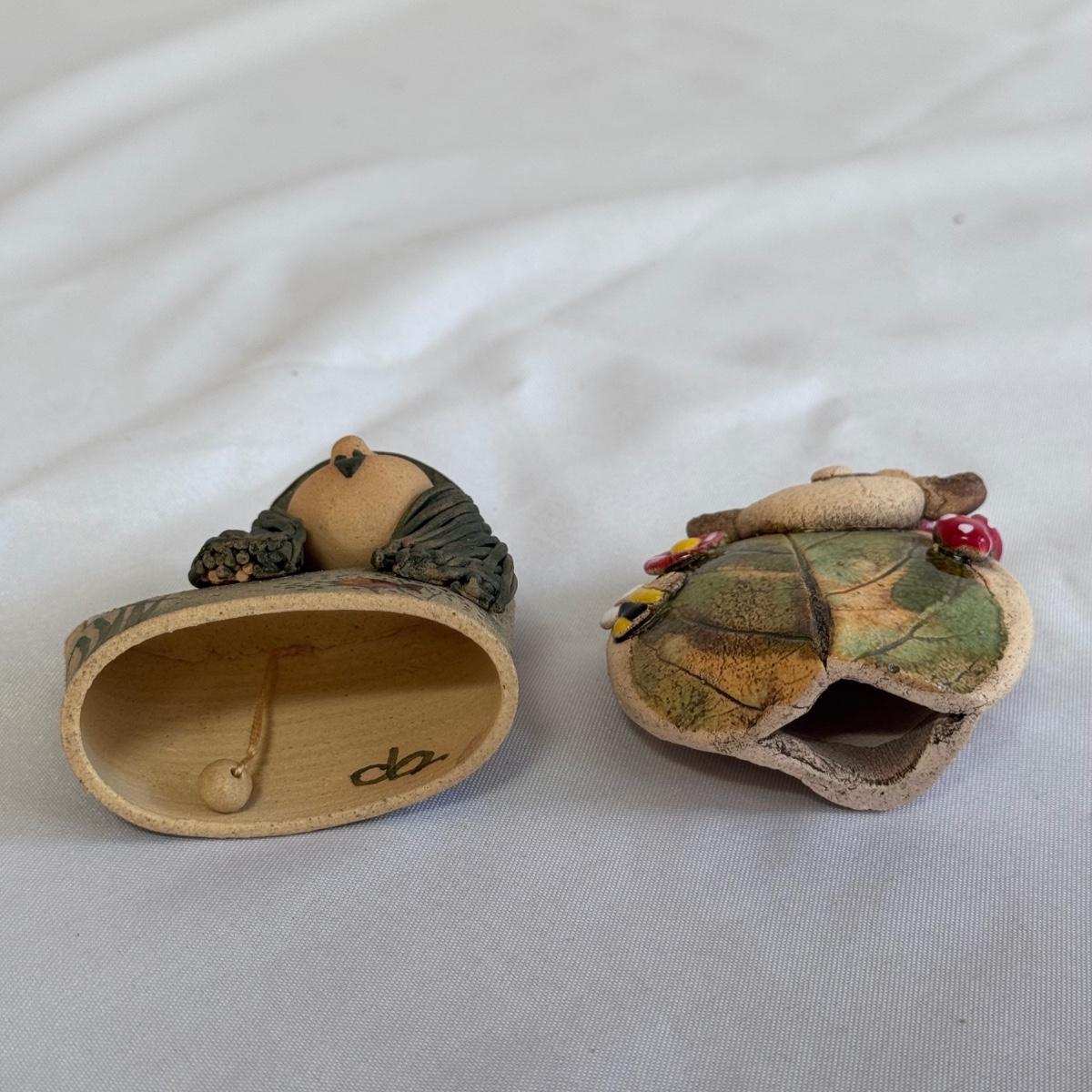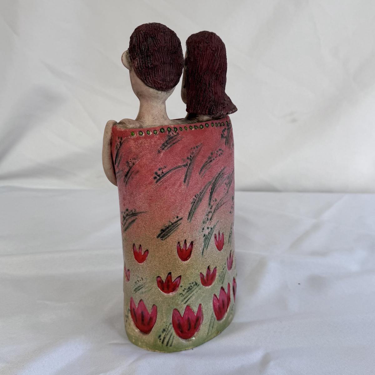 This lot includes four ceramic figurines with bells, along with two figurines without bells. Each piece is unique its own way. The butterfly man is stamped on the bottom with, what appears to be, the name Jan Herak Lokee. The sculpture of the two people holding a baby is the largest piece that measures 5.5” x 3.5” x 10.5”H. Shipping available. Shipping can be costly. We suggest contacting our preferred local shipping provider, Postage Express, with dimensions and getting an estimate before bidding: (828) 255-9250 or shipping@postageexpressnc.com.