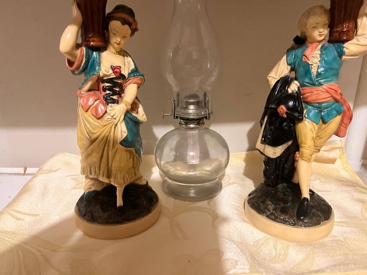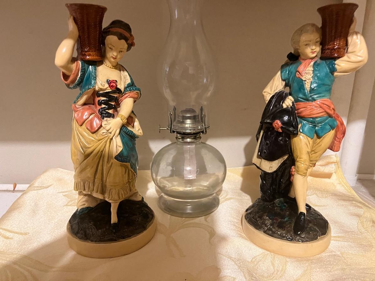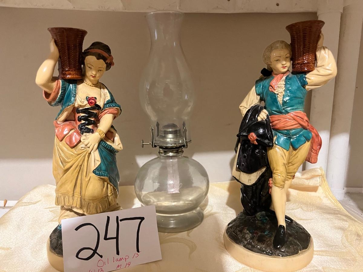 Ceramic figurines and oil lamp