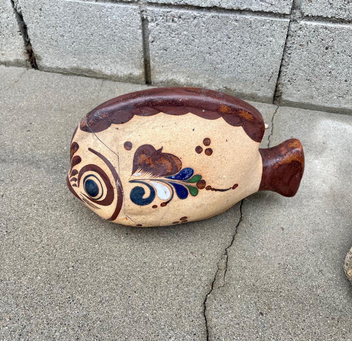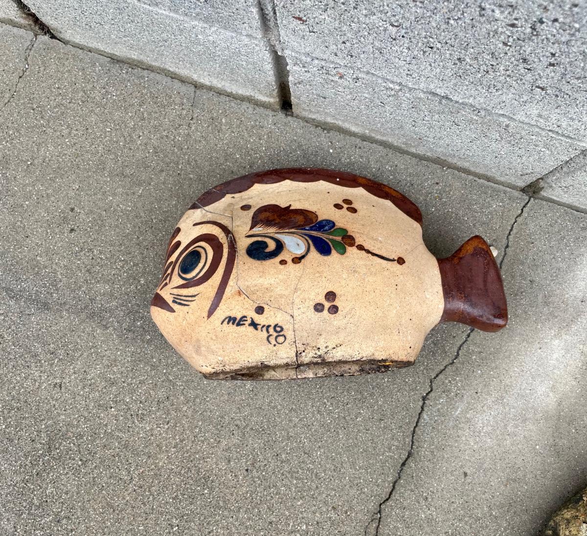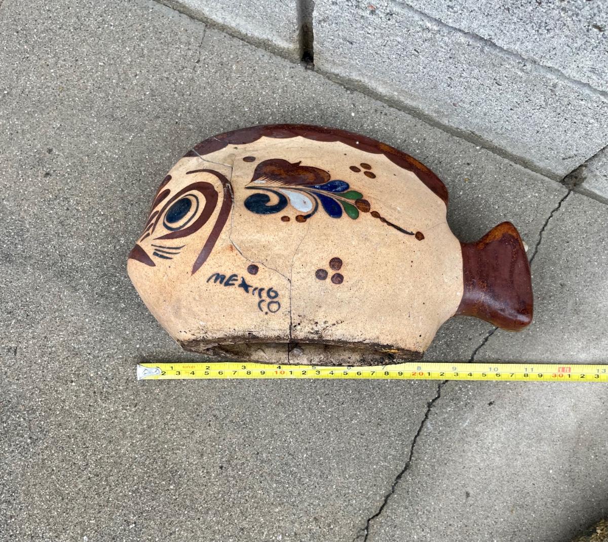 Ceramic Fish Garden Art, repaired from previous damage. Made in Mexico.