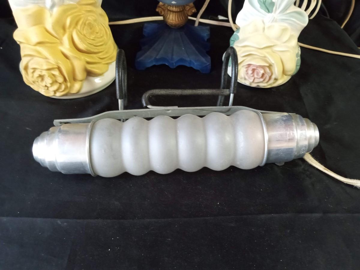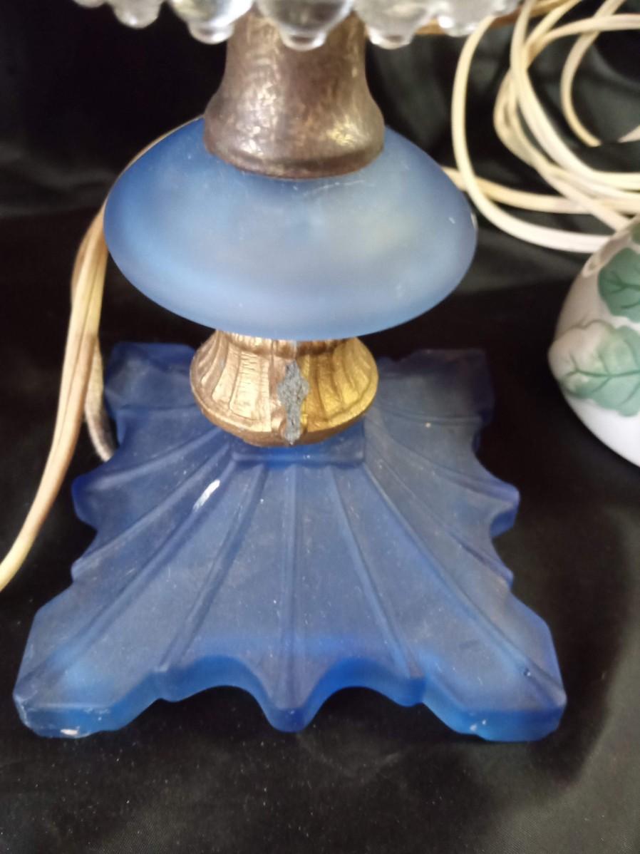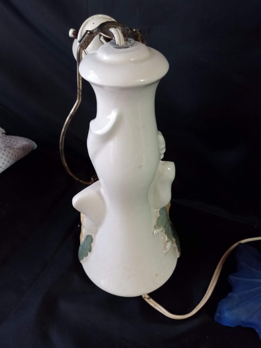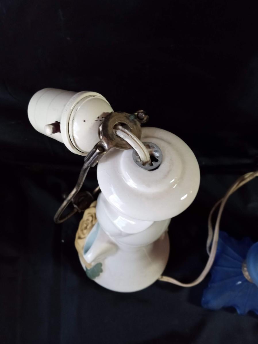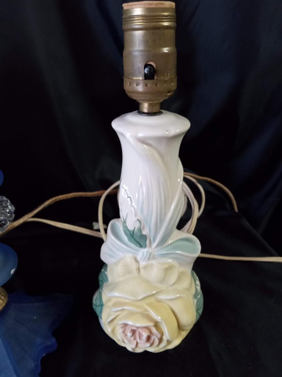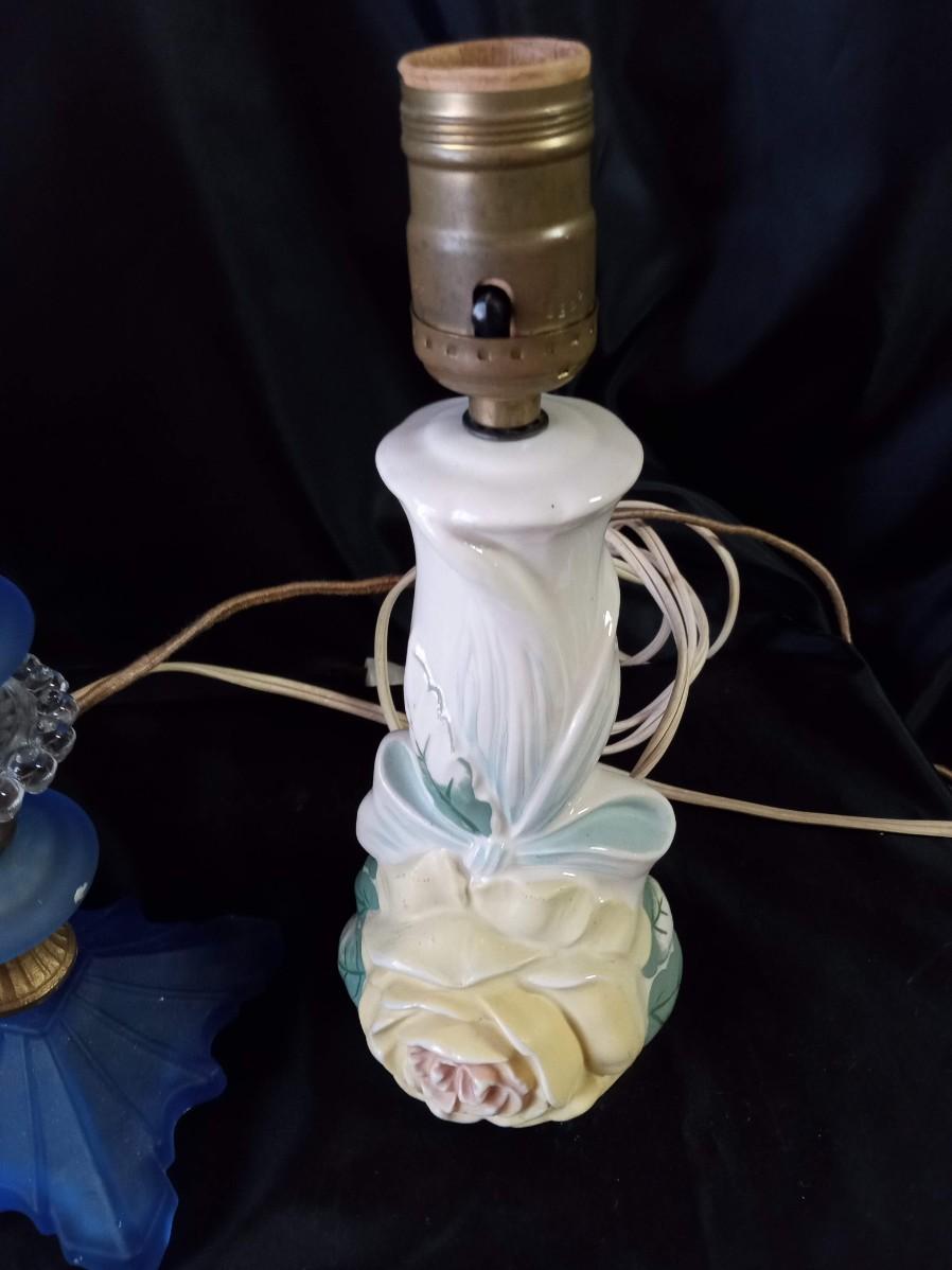 CERAMIC FLORAL LAMPS, BLUE GLASS LAMP AND HEADBOARD LIGHT