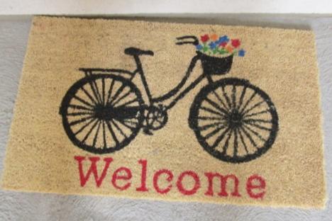 LOT 117  CERAMIC FLOWER POT ON STAND AND DOOR MAT