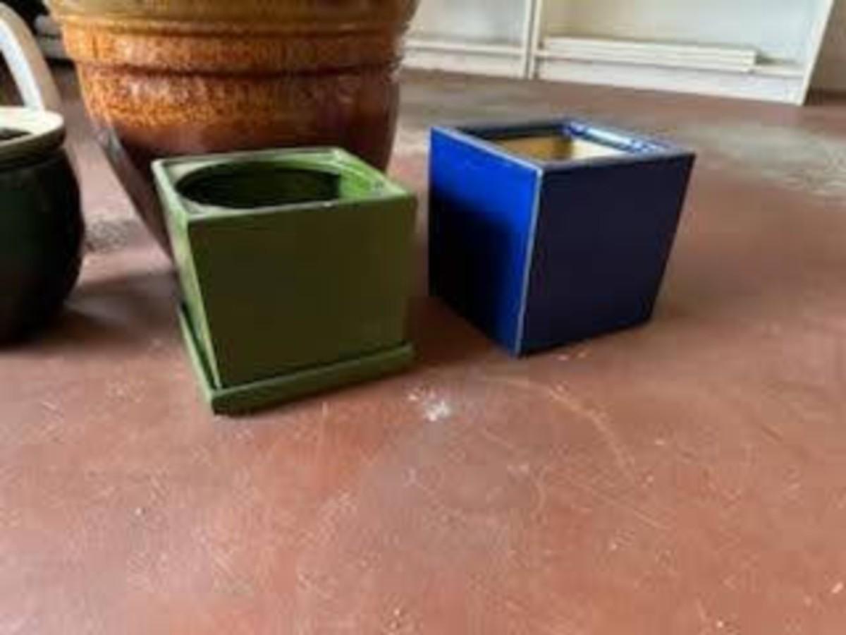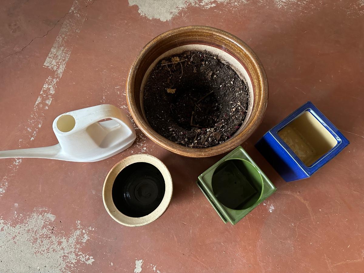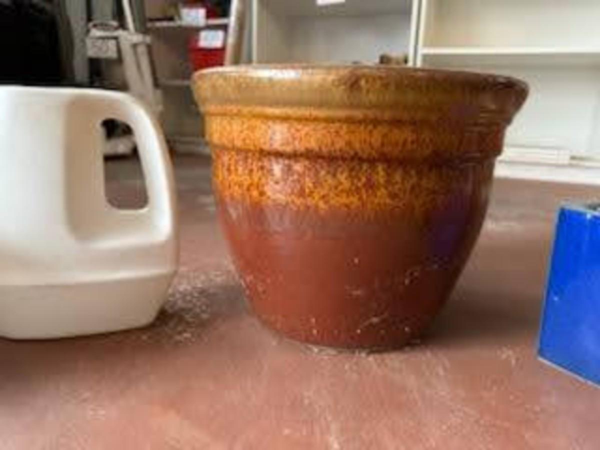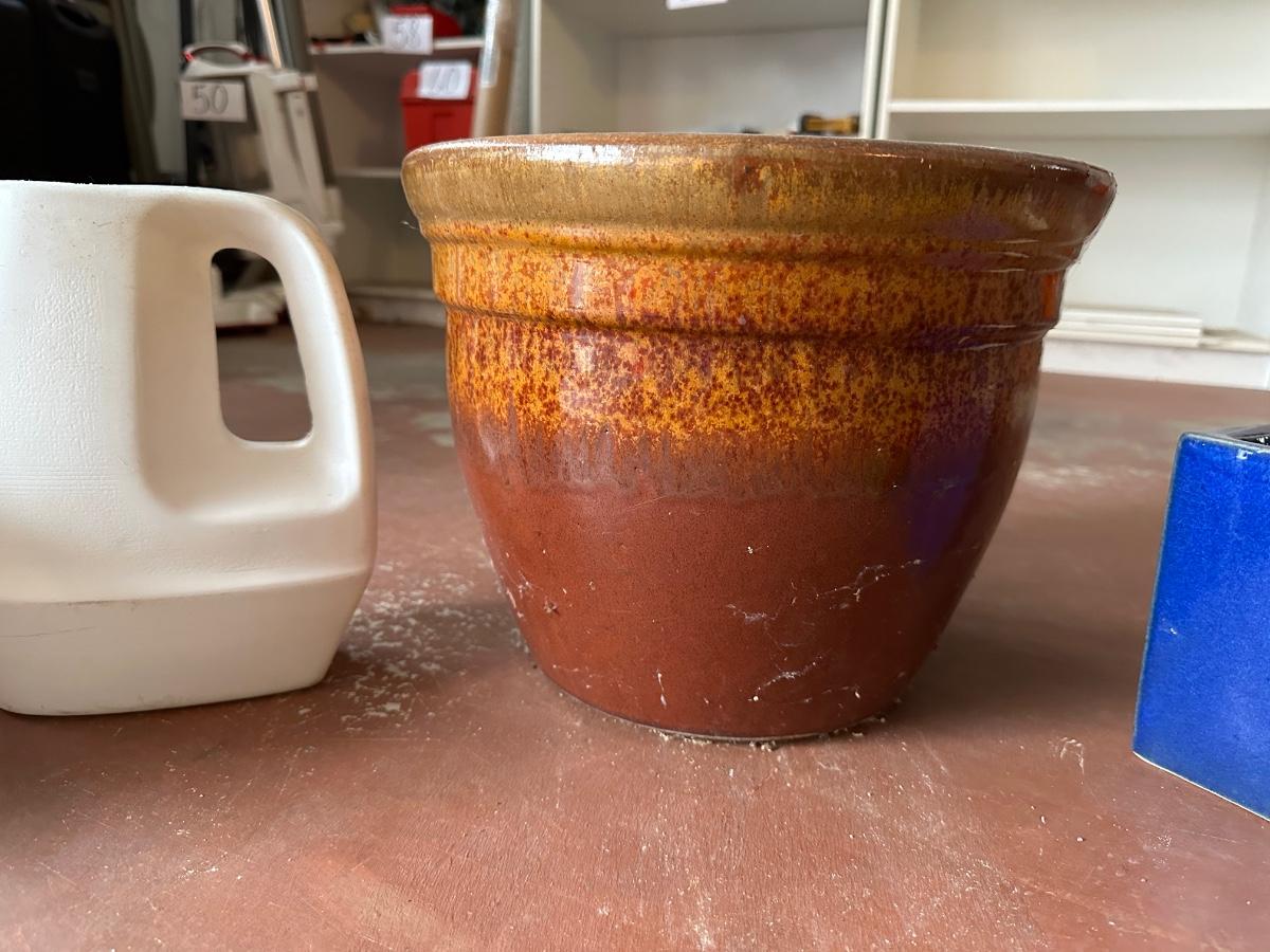 SPINNING YARD ART, CERAMIC FLOWER POTS AND WATERING CAN