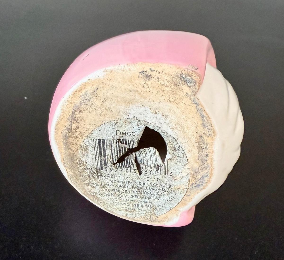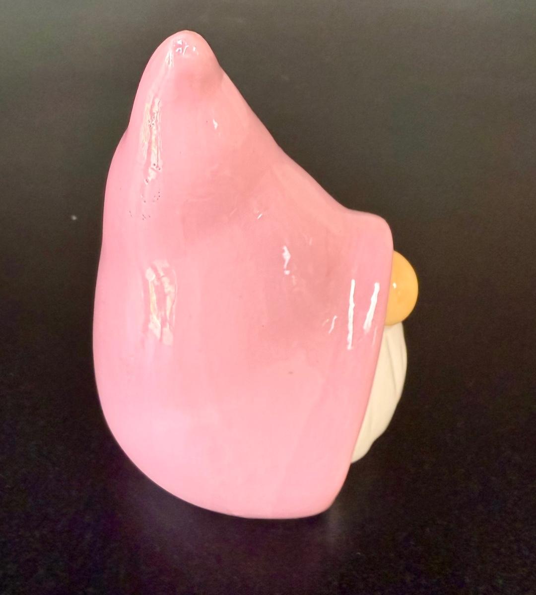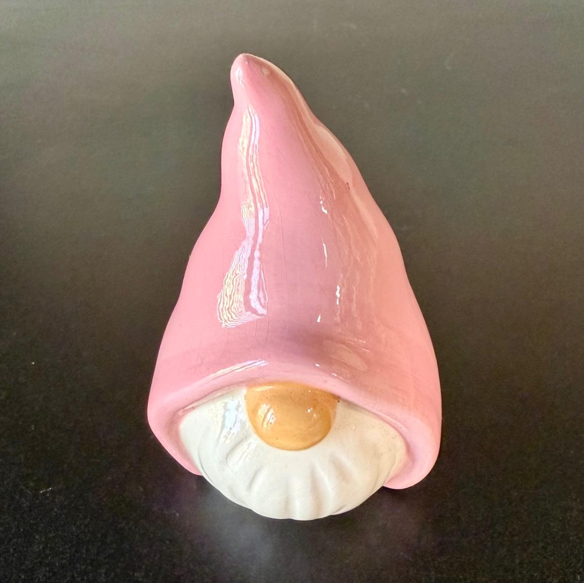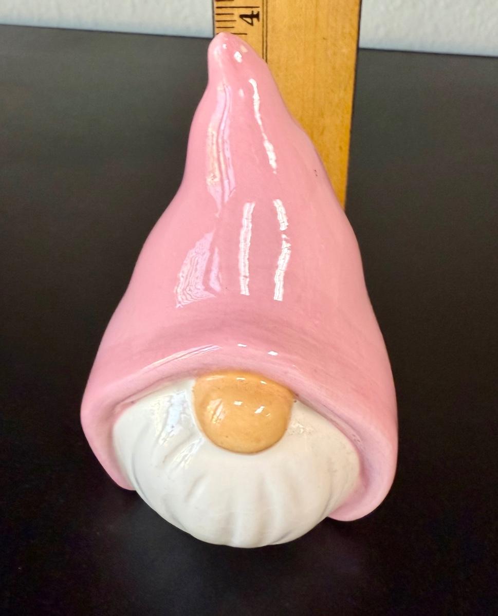 Ceramic Garden Gnome Head, measuring approx. 4.5"H, color is Pink. Used but in good condition, no chips, cracks or crazing.