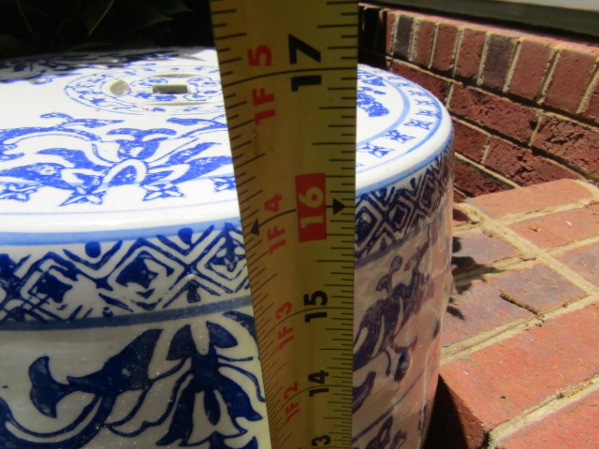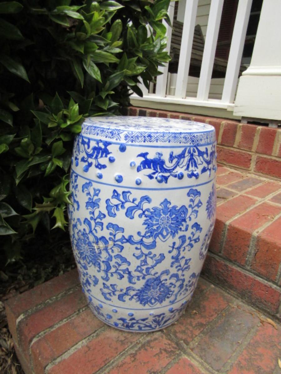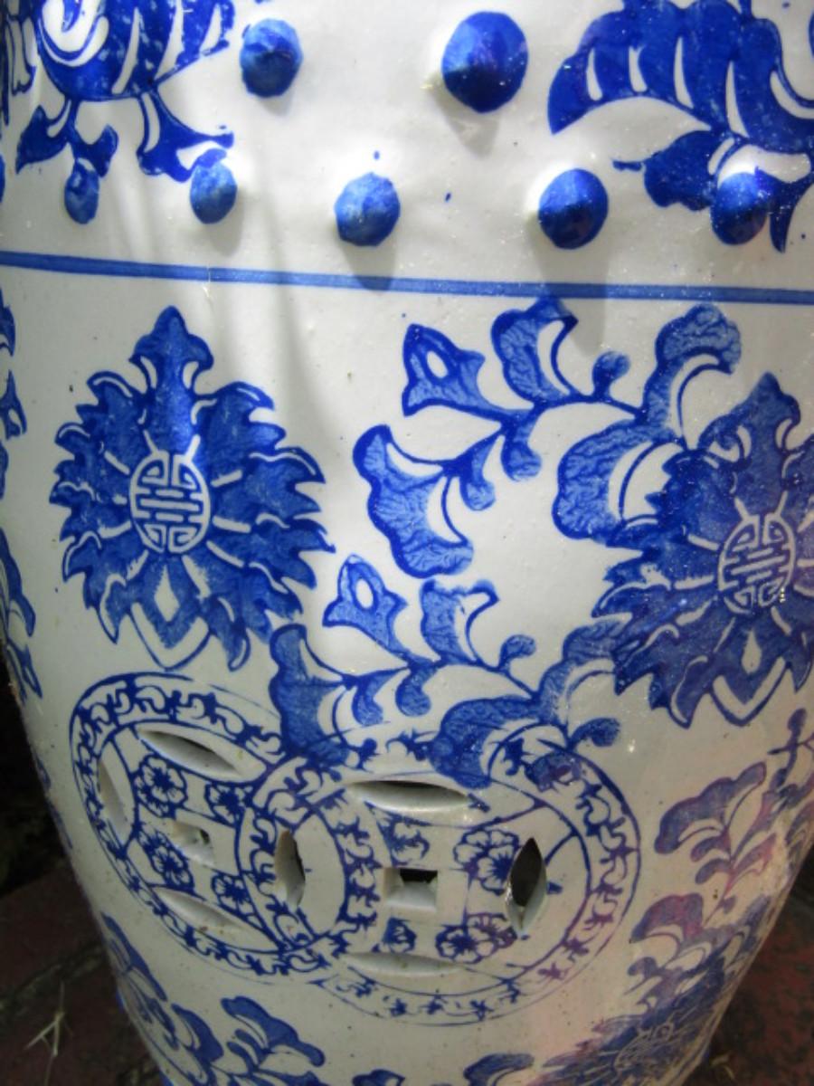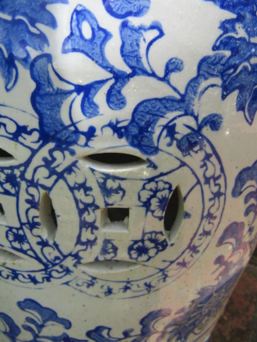 Ceramic Garden Stool in Classic Blue & White with Pierced Accents