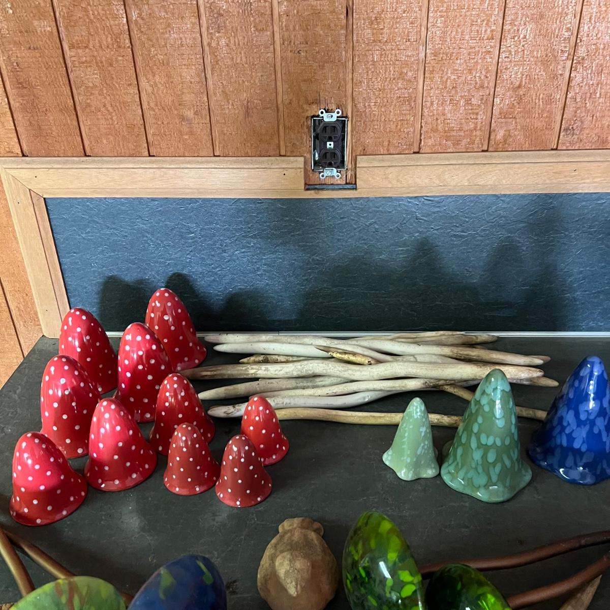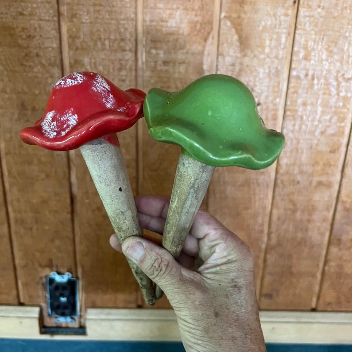 Ceramic & Glass Mushroom Stakes Plus More Ceramic Garden Art (G-RG)