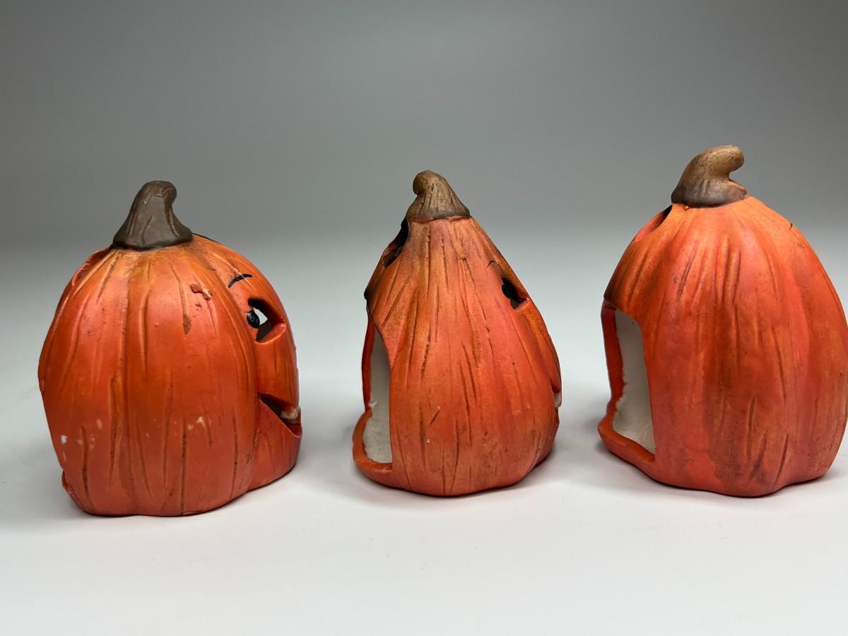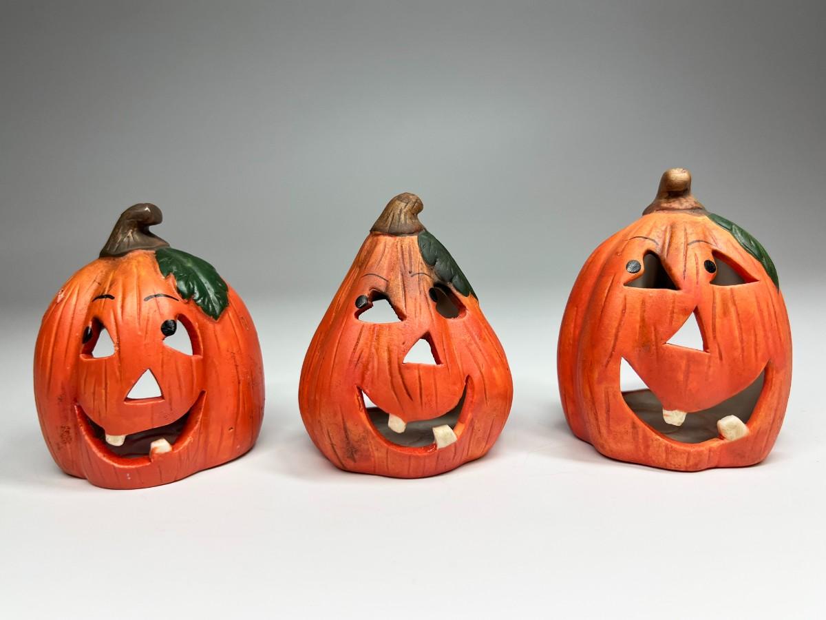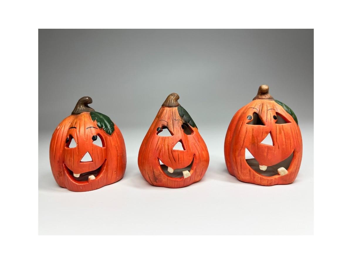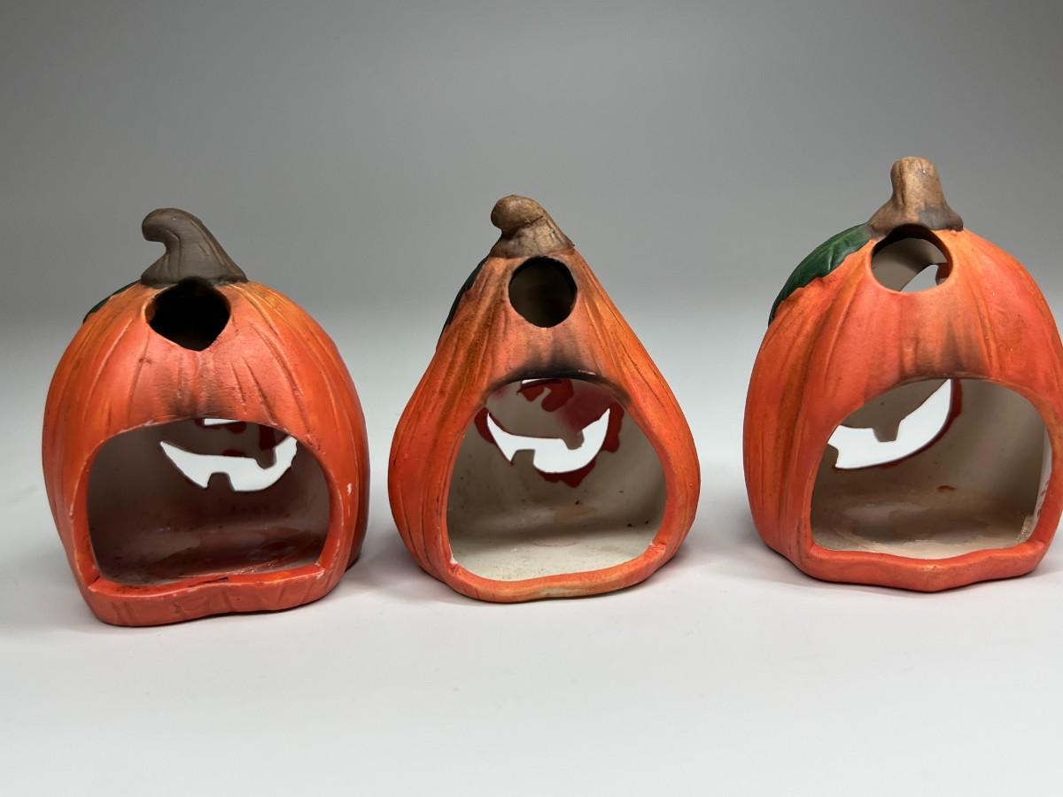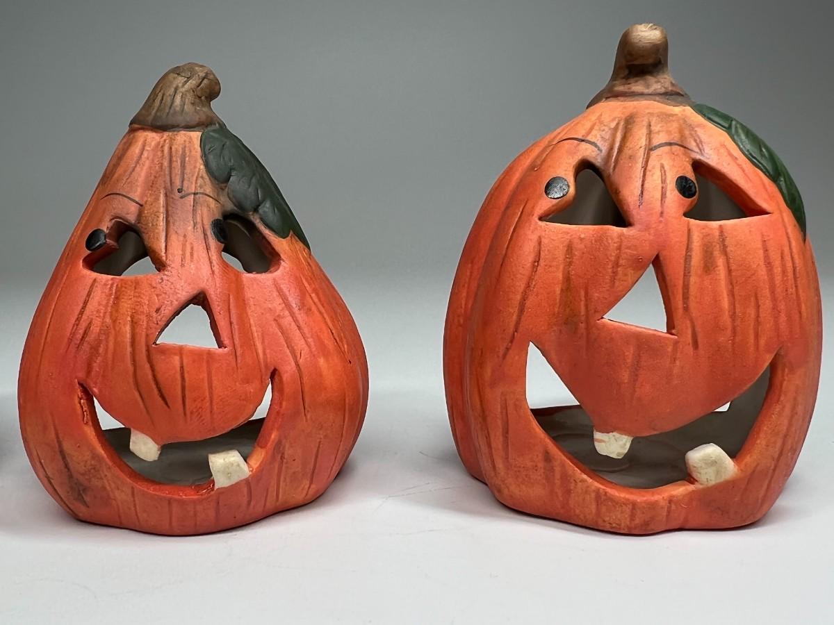 Ceramic Goofy Pumpkin Jack O' Lanterns Tea Light Halloween Home Decor