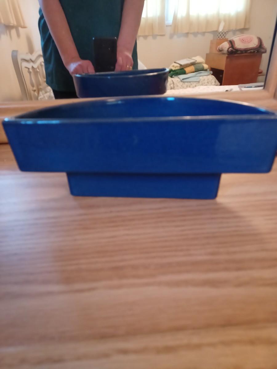 Ceramic halfmoon blue dish