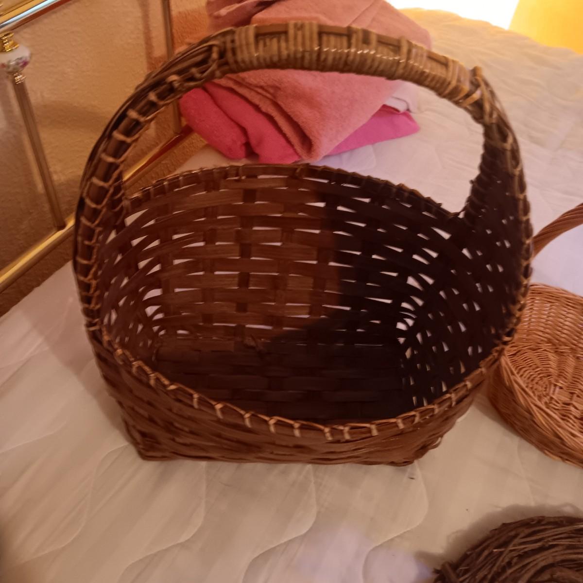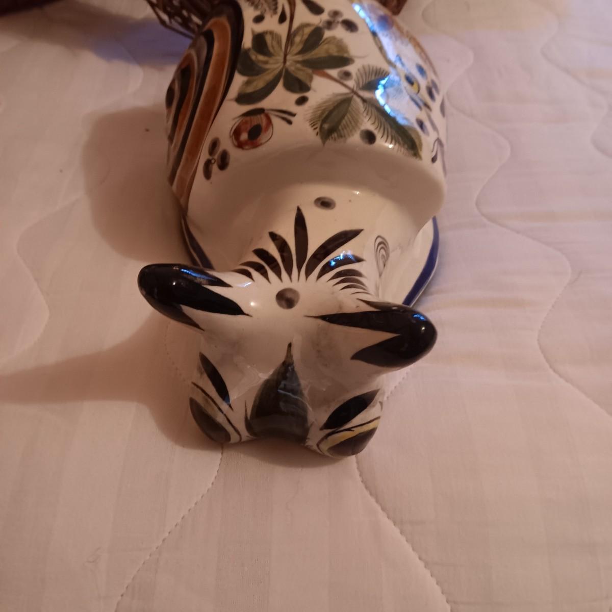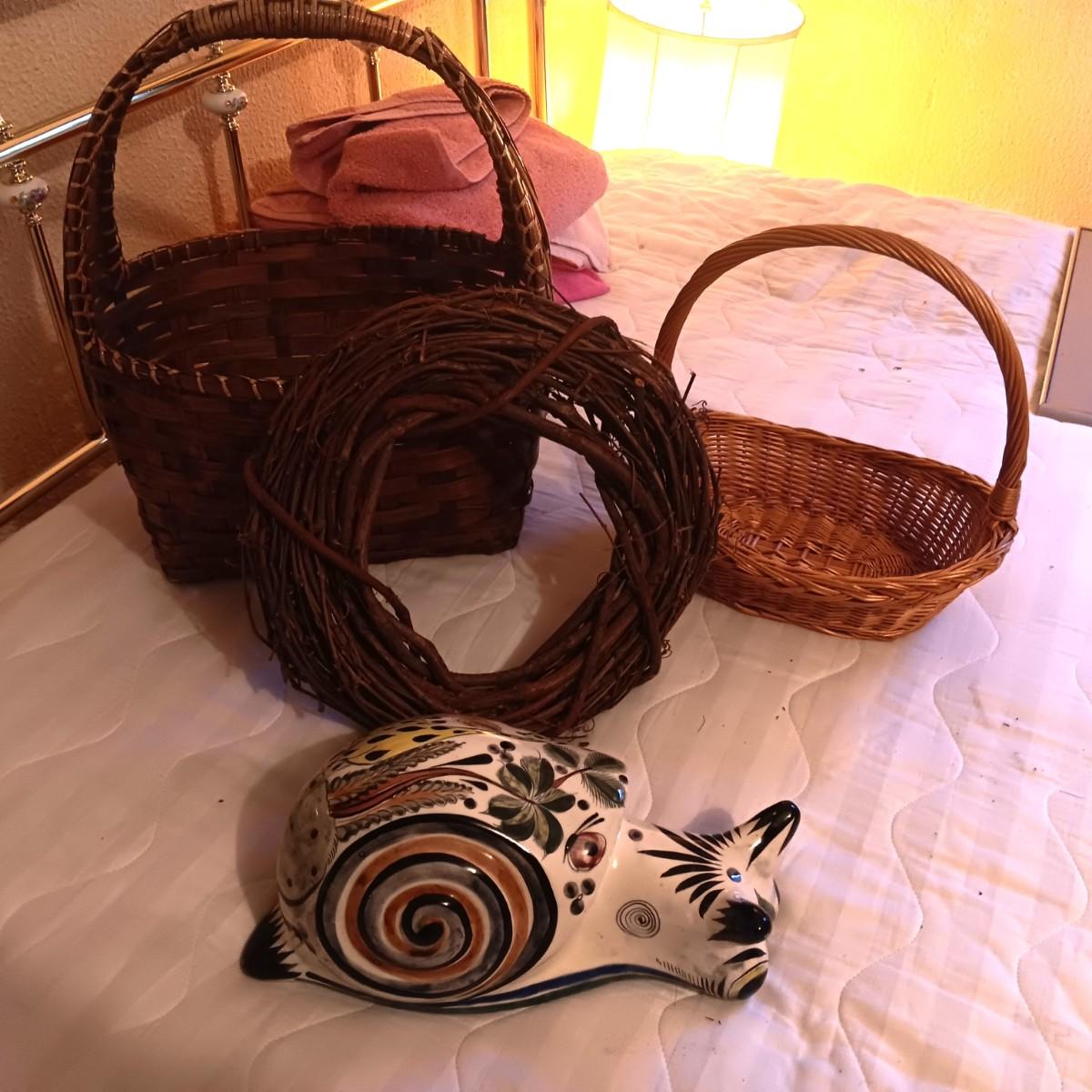 CERAMIC HAND PAINTED CAT AND WICKER BASKETS
