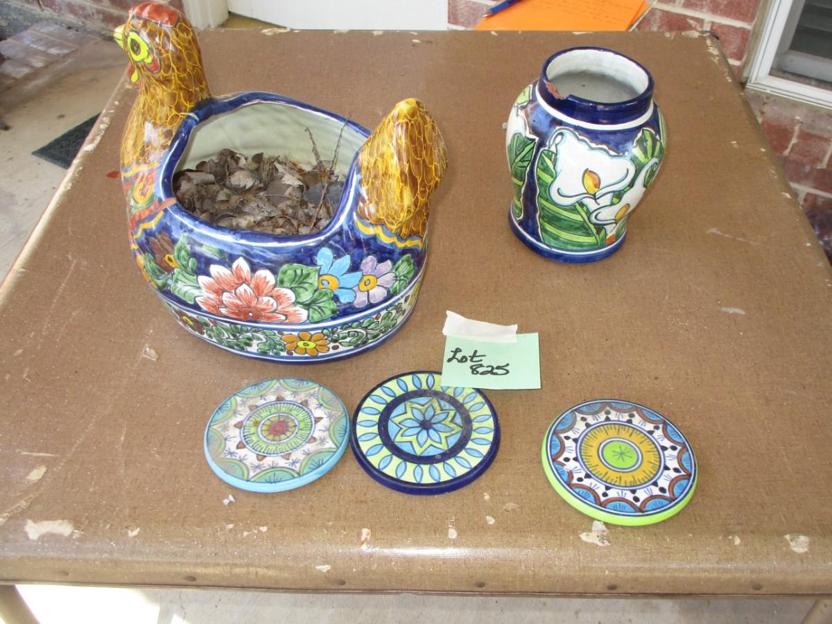 Ceramic Hand Painted Hen Planter-Vase and Coasters