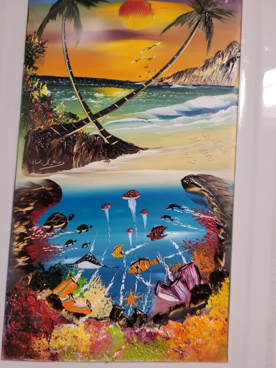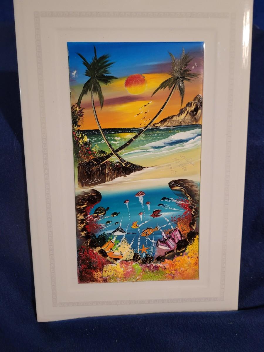 Hand painted 12 x 8 tile . These are done using spray paint and were purchased in Mexico.