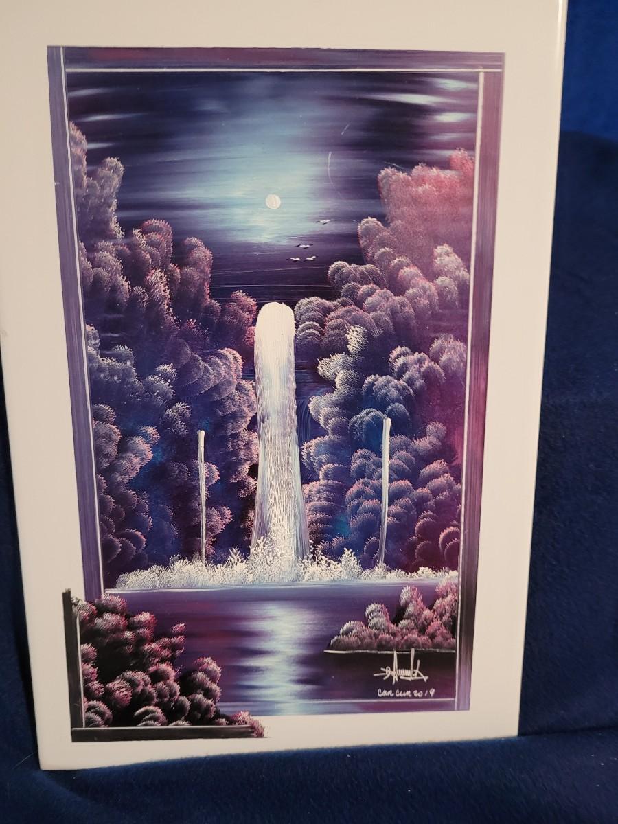 Hand painted 12 x 8 tile . These are done using spray paint and were purchased in Mexico.