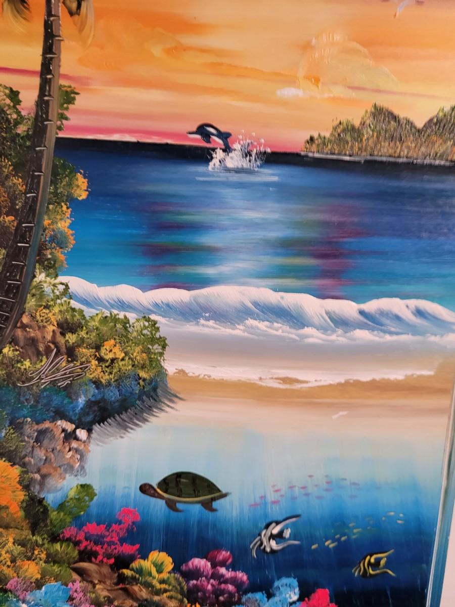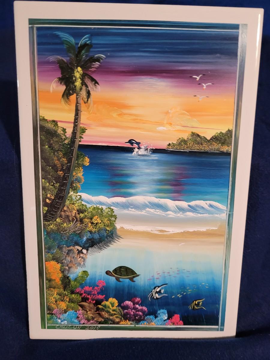 Hand painted 12 x 8 tile . These are done using spray paint and were purchased in Mexico.