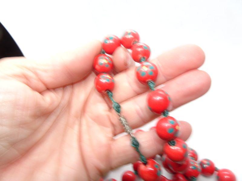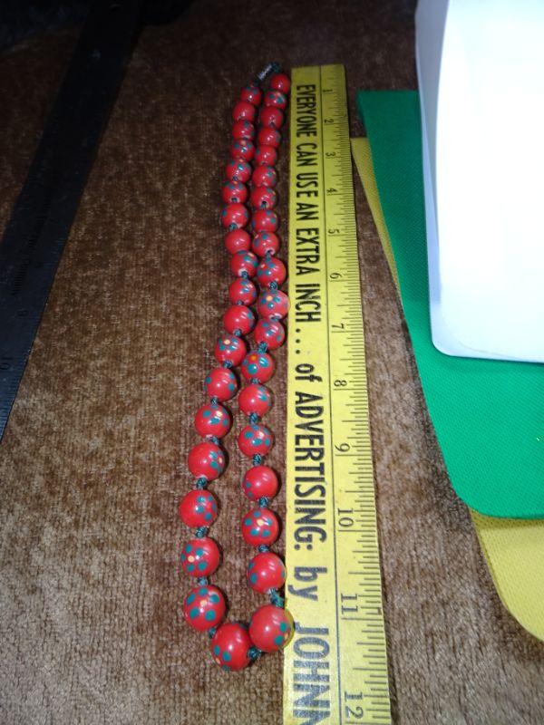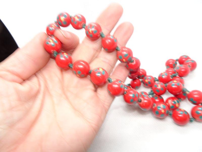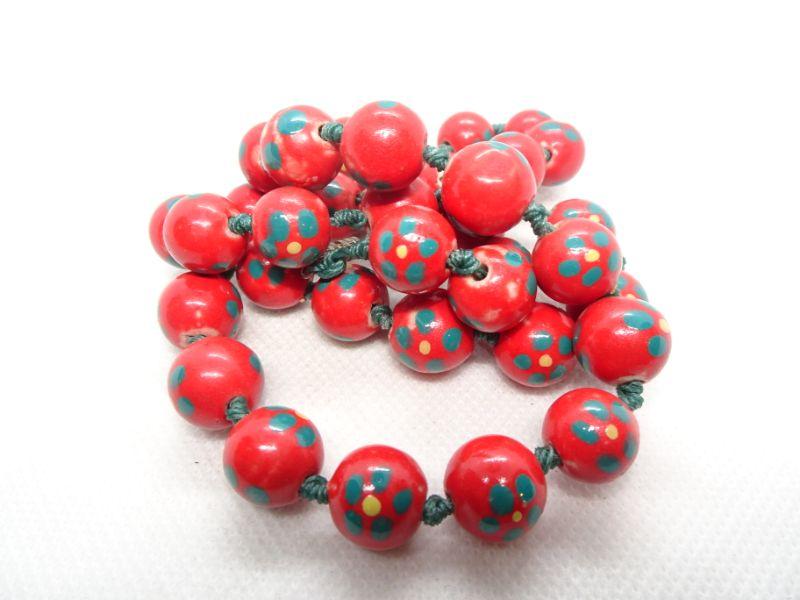 Ceramic hand tied Red Beaded Necklace - Vintage