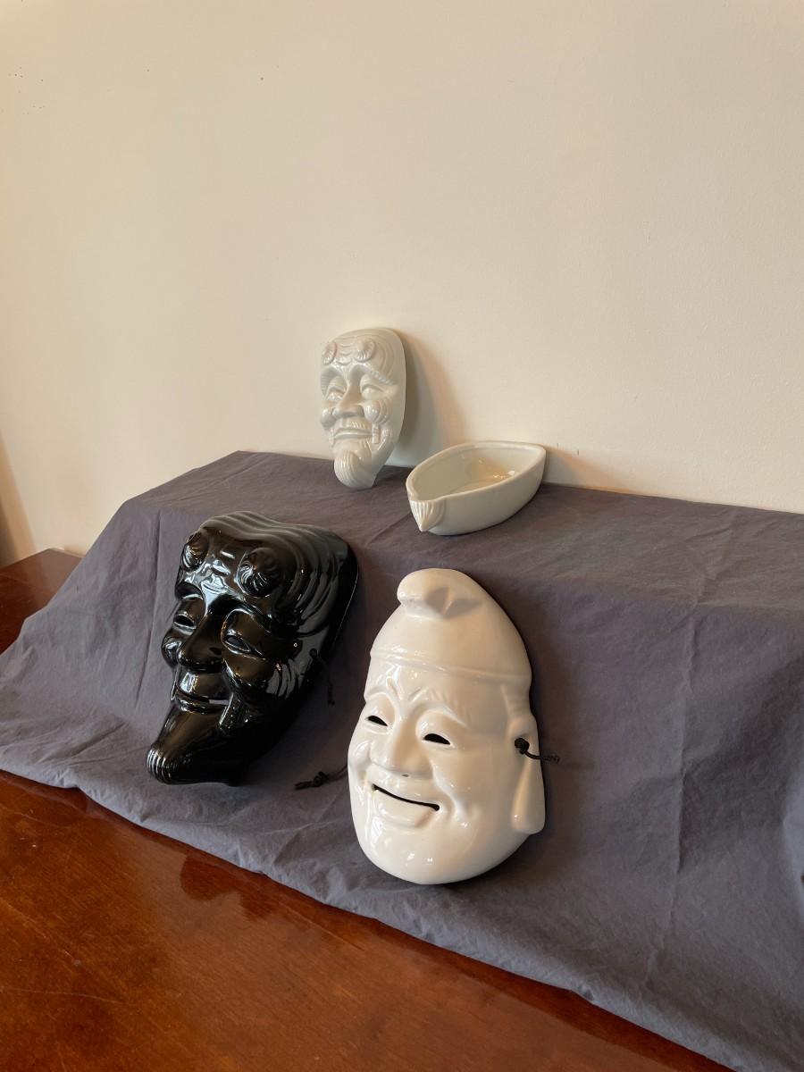 Ceramic Happy and Tragedy Face Mask Wall Art and Trinket Box
