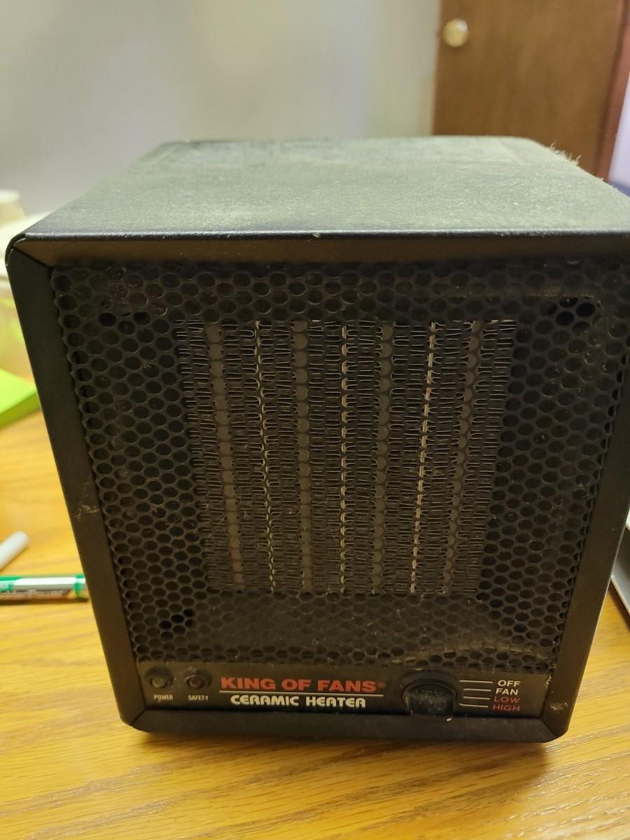 Ceramic heater, 2 cordless phones, steel clipboard, cd holders, metronome