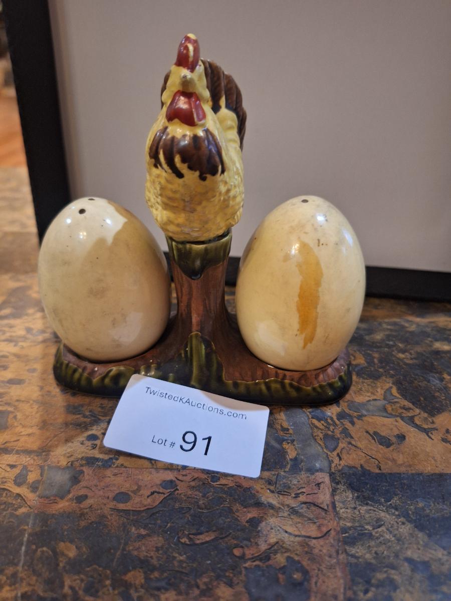 Ceramic hen and eggs salt and pepper shaker