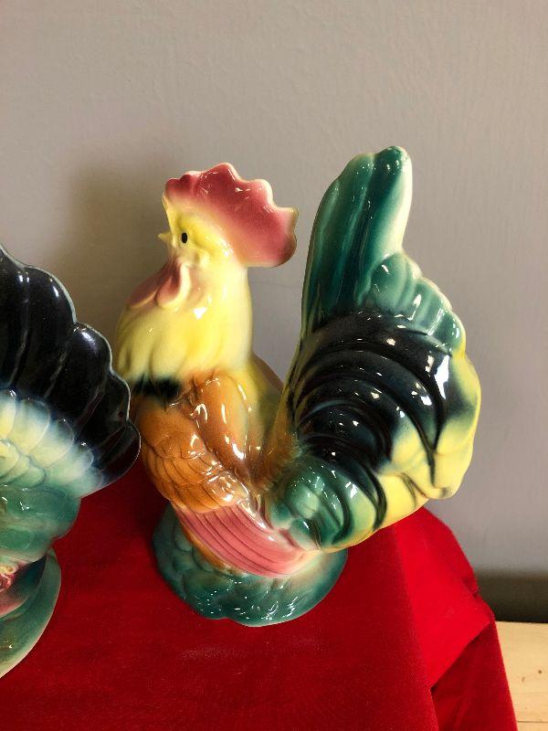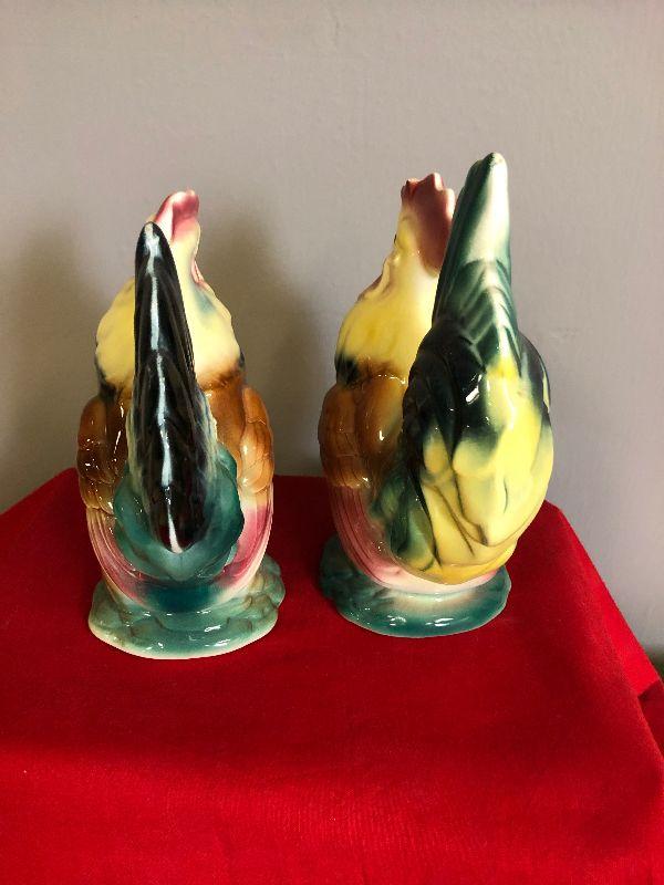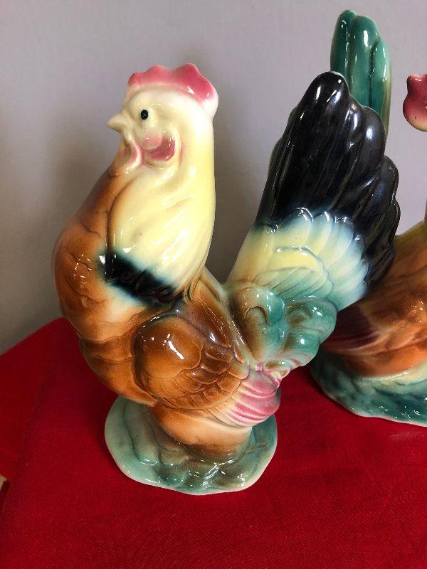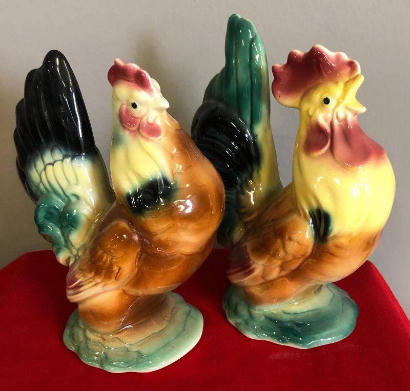Circa 1950's hen and rooster pair 8" Tall no cracks of chips