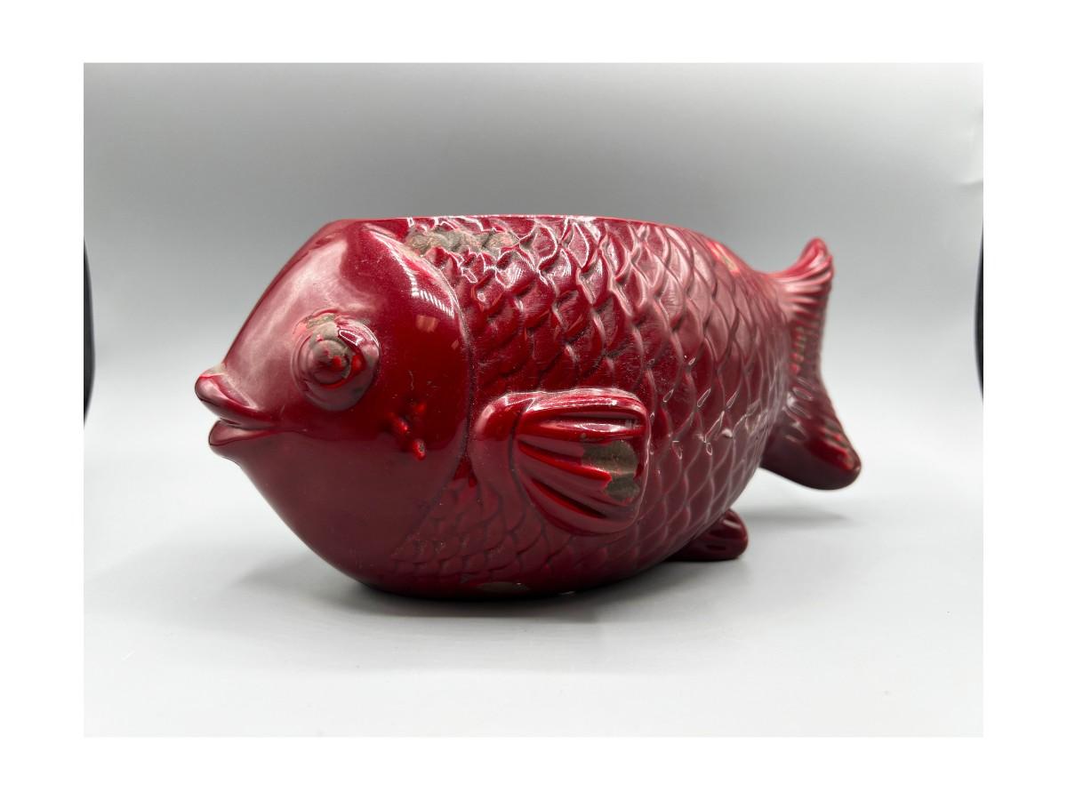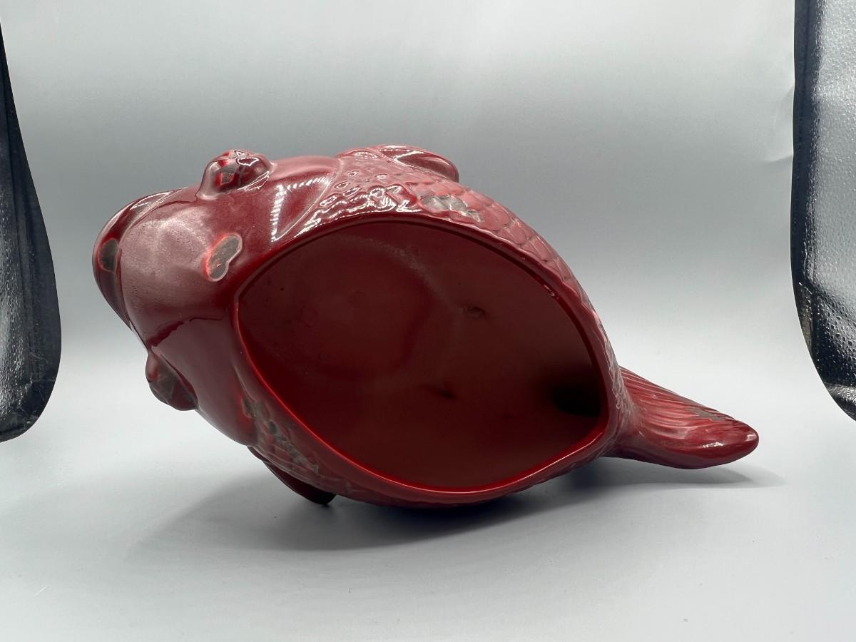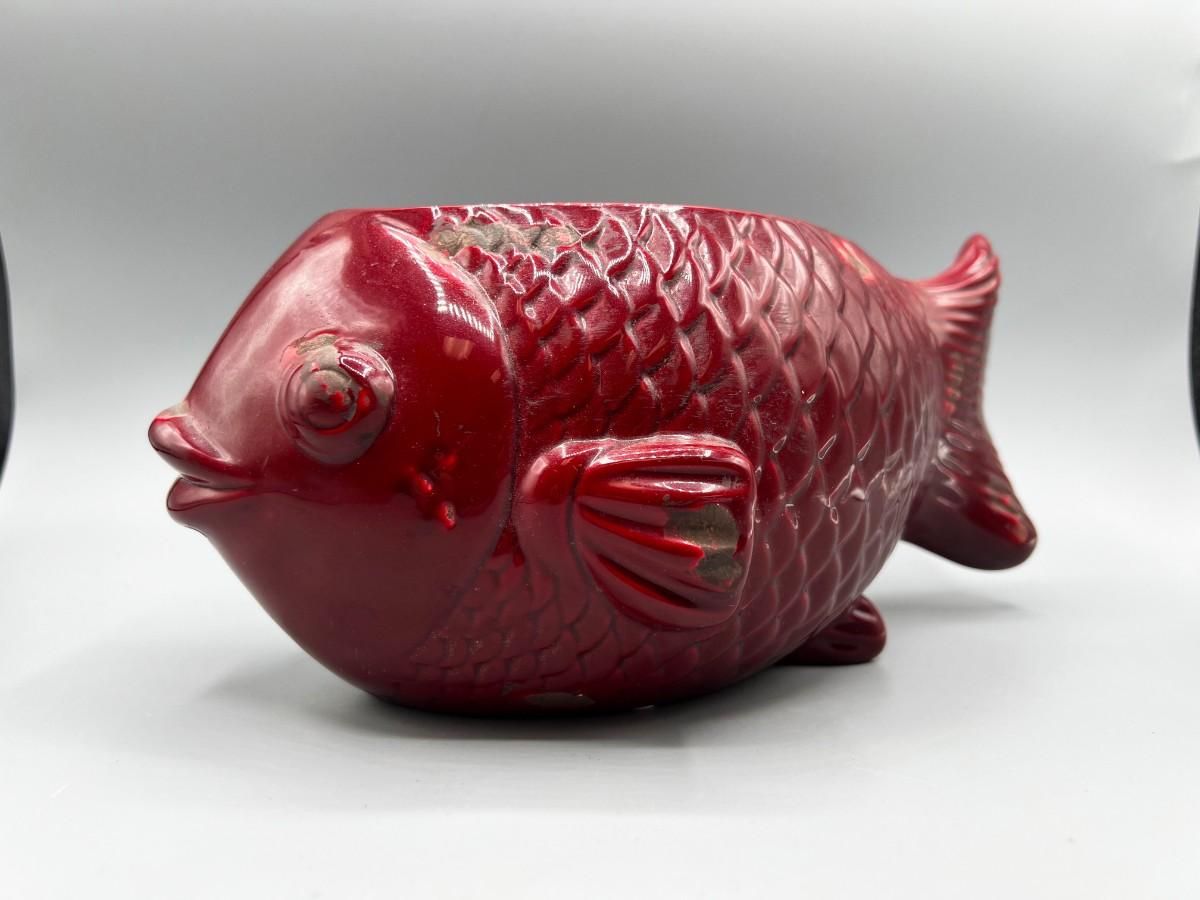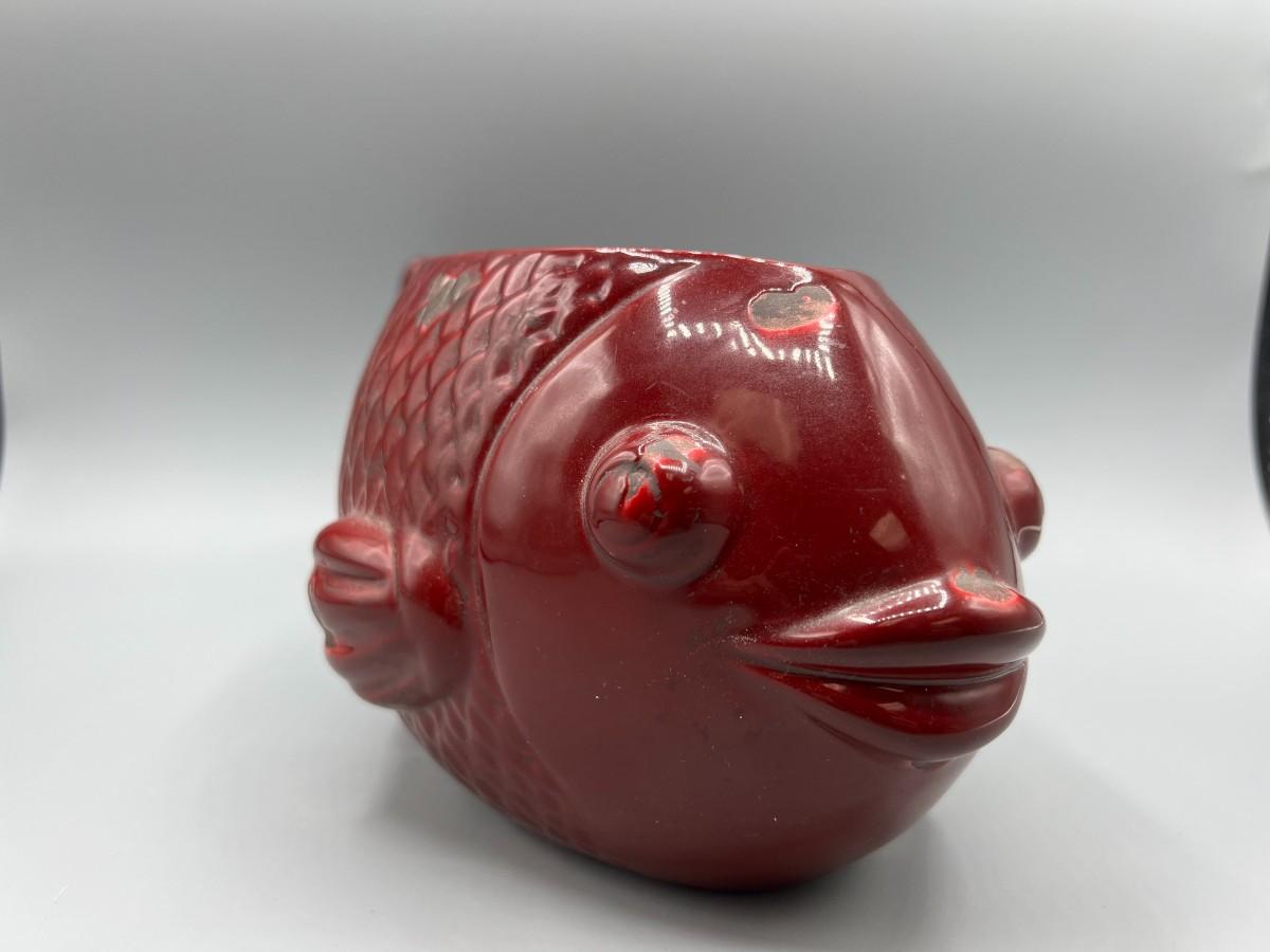 Ceramic Home Decor Nautical Red Fish Planter Pot, there is some light wear, but there is no significant damage to the piece and is in good displayable condition. Check pictures for more details and for sizing.