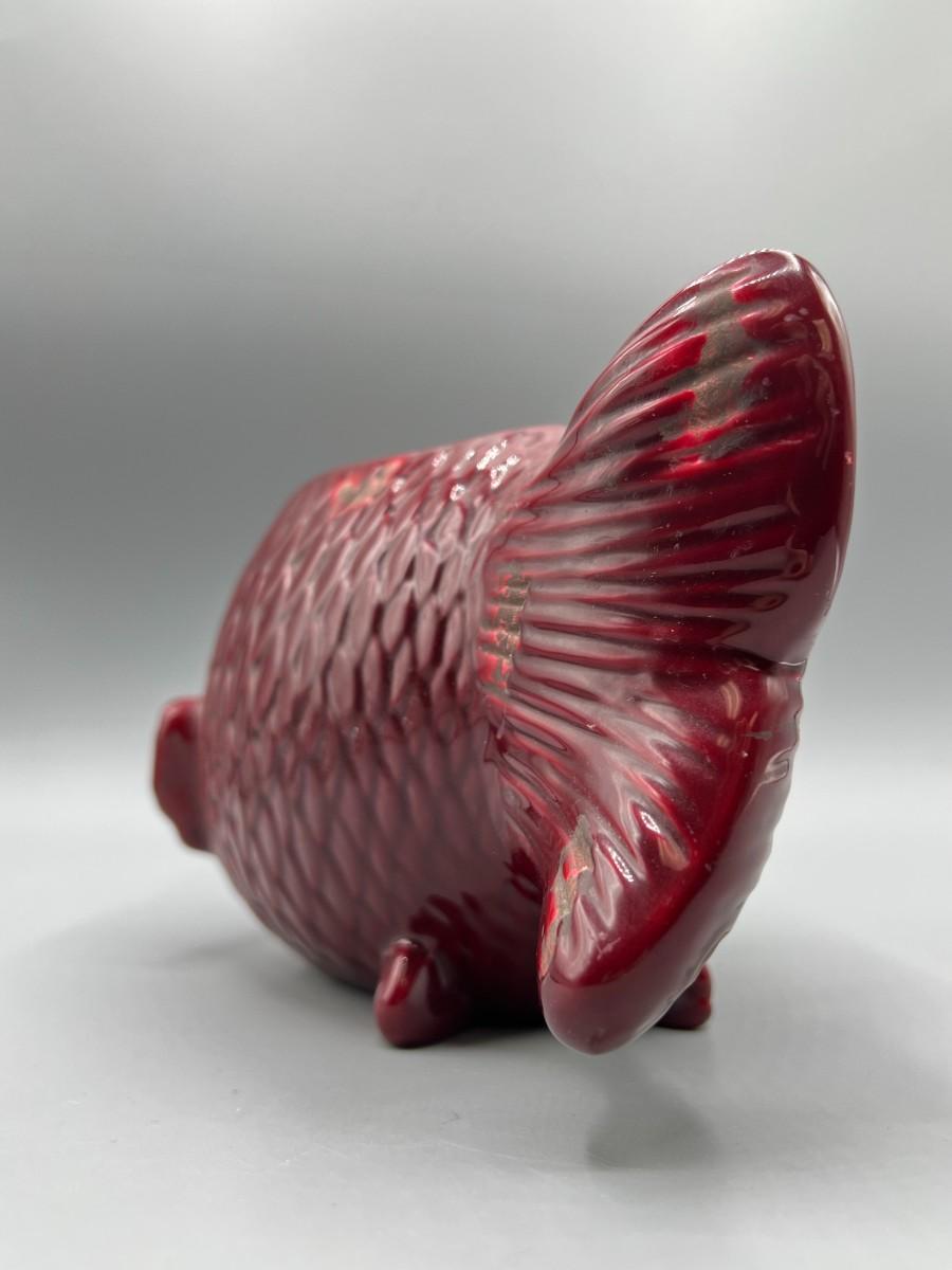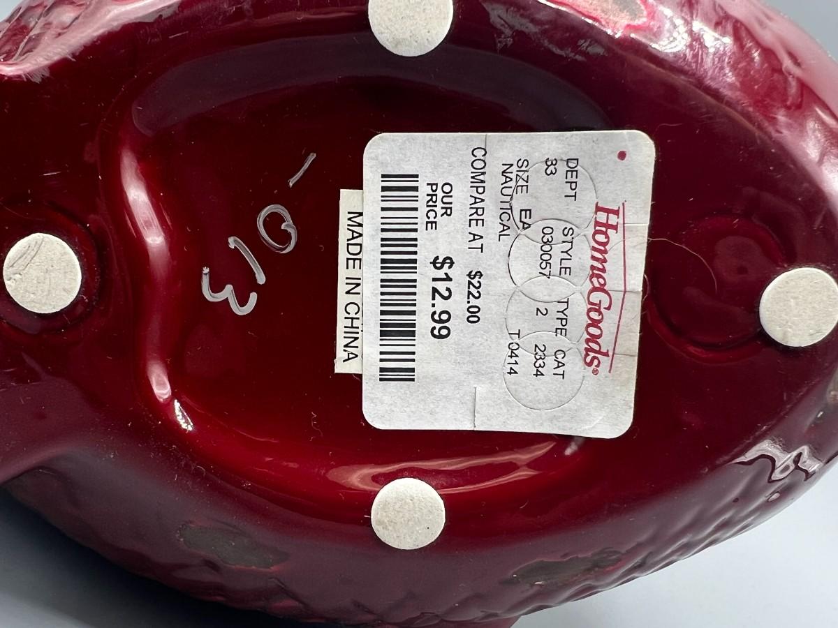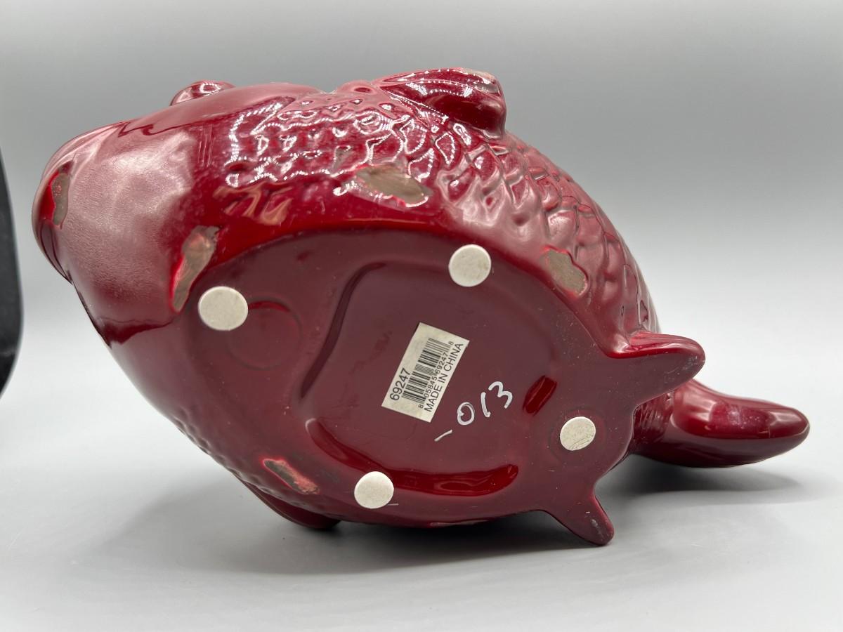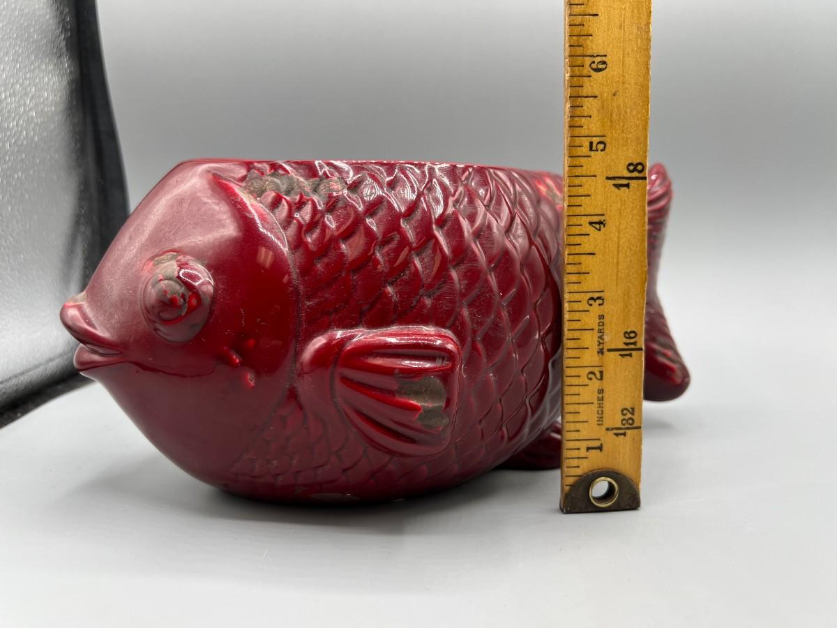 Ceramic Home Decor Nautical Red Fish Planter Pot, there is some light wear, but there is no significant damage to the piece and is in good displayable condition. Check pictures for more details and for sizing.