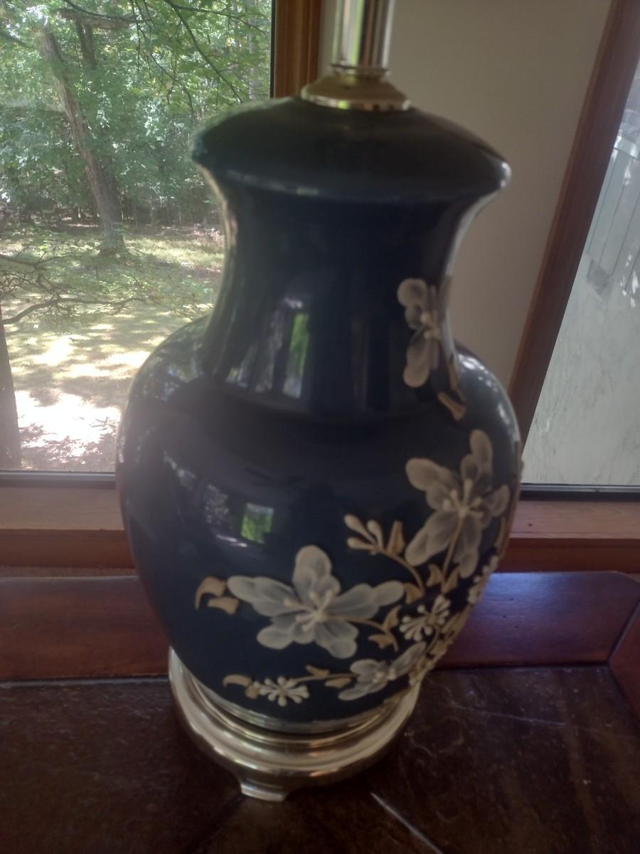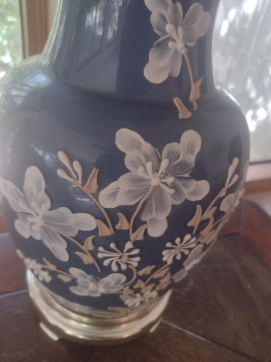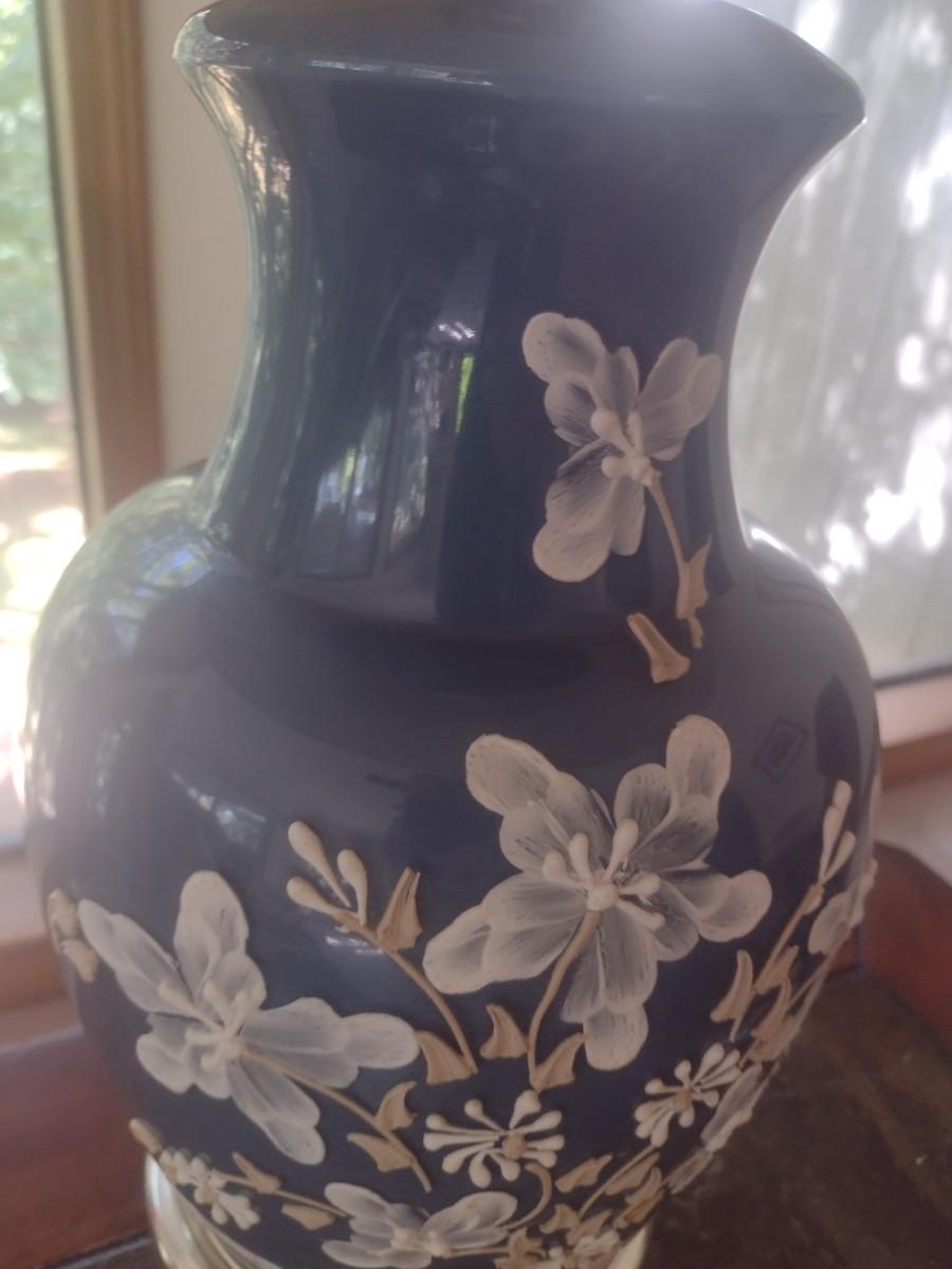 Ceramic Jar Shaped Table Lamp with Hand Painted Floral Design