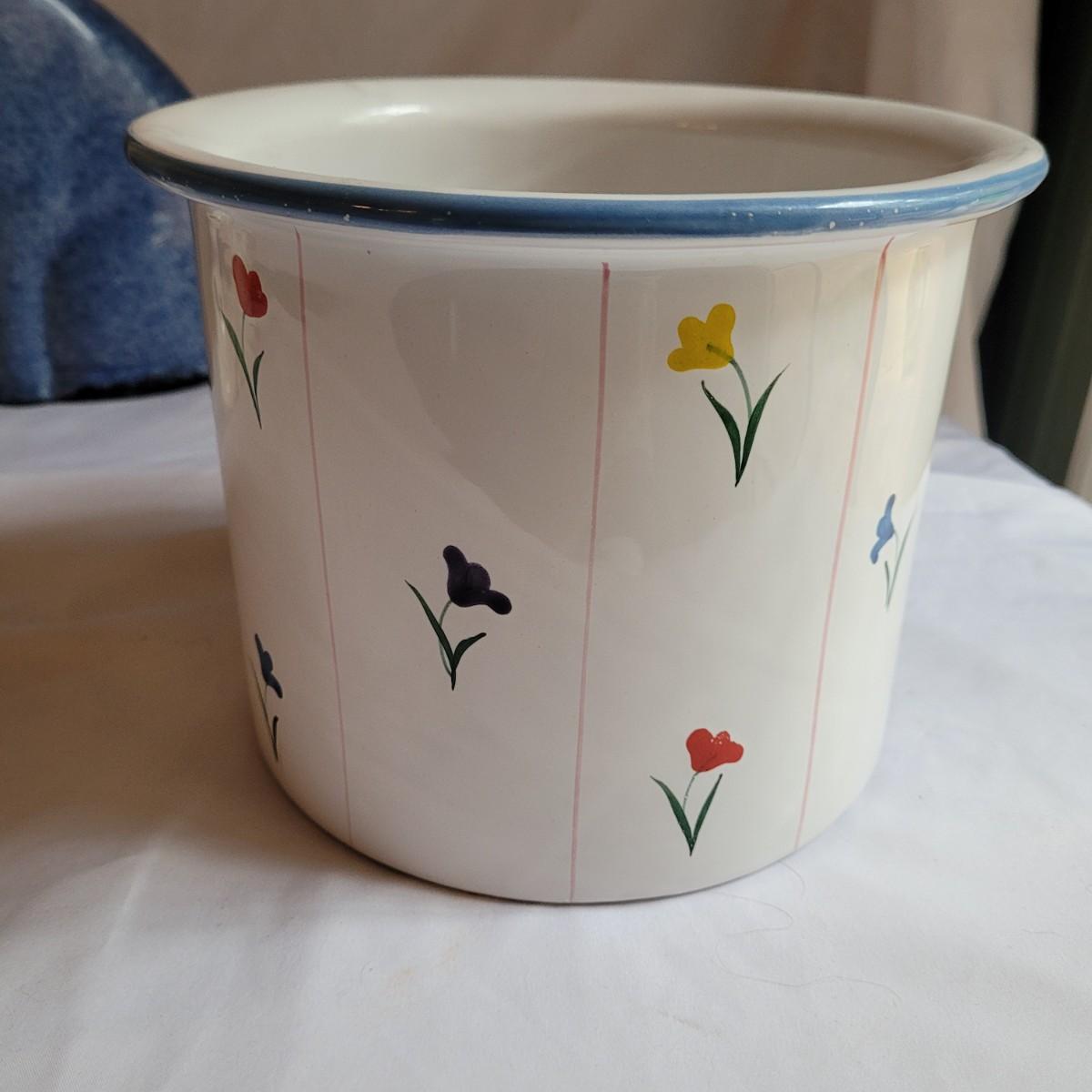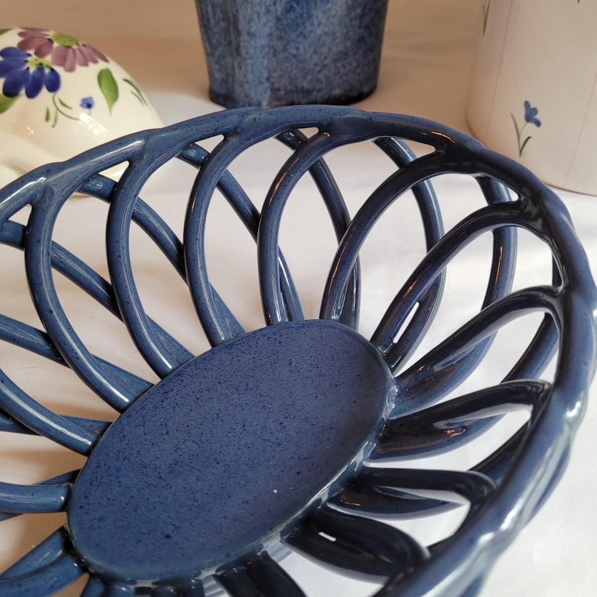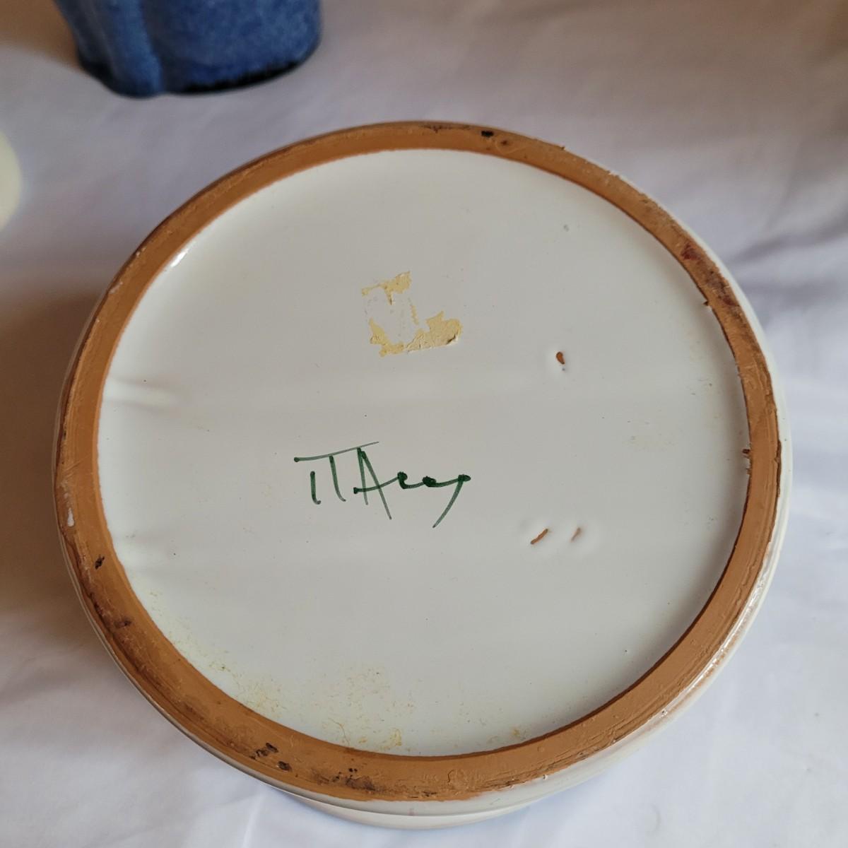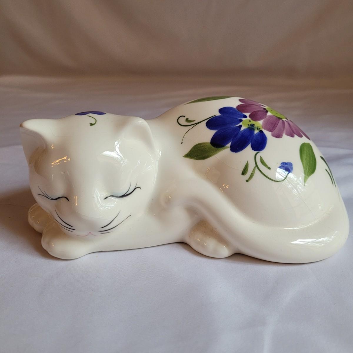 This lot includes a large ceramic jar, basket and two ceramic cats. Jar measures approximately 8”DIA x 7”. Shipping available.