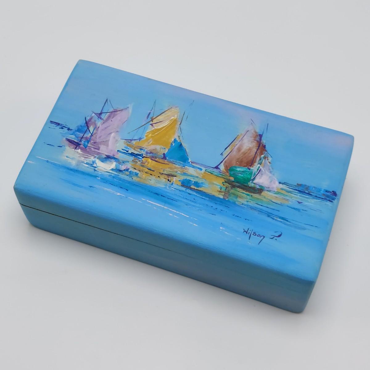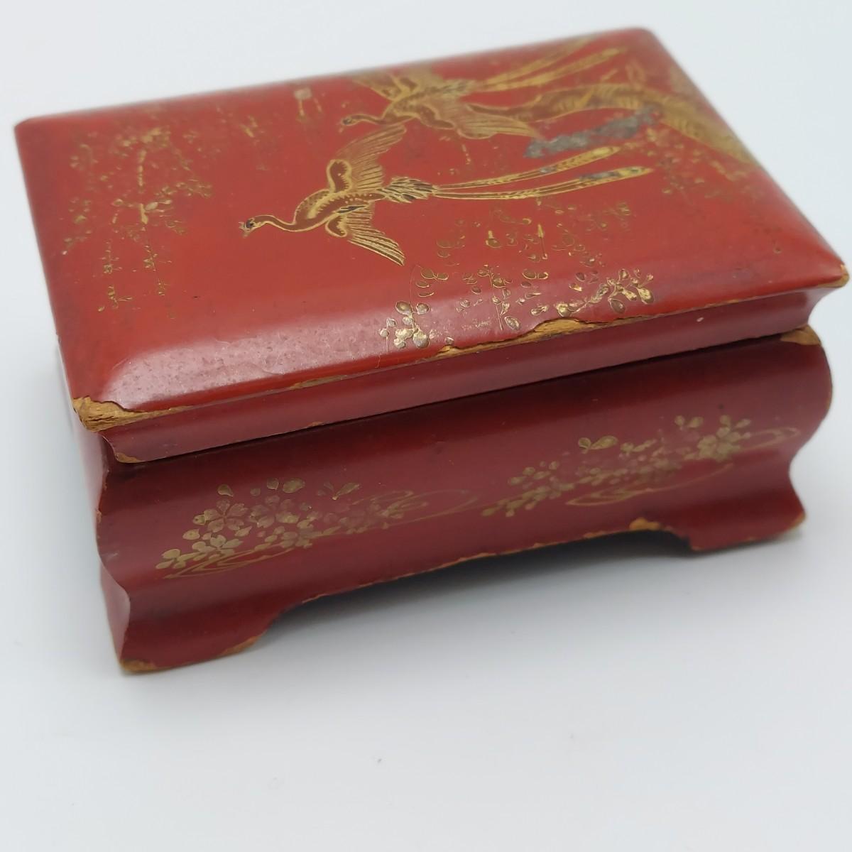 Four ceramic lidded dishes, two wooden boxes and one small ceramic tray for storing jewelry and other small trinkets. The large round dish by Tiffany & Co measures 5"D x 3.5"H. The Hummel dish measures 3.5D x 2.5"H and has a small chip under the lid. The Lenox dish is 3” x 4"H. Please see photos for details. Shipping available