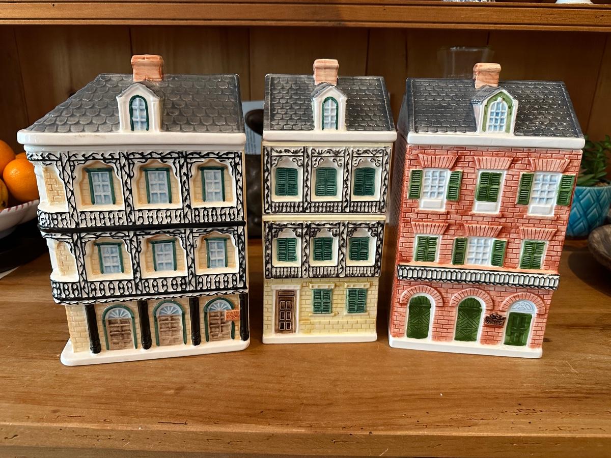 3 Ceramic lagniappe of Nola cookie jar / containers
