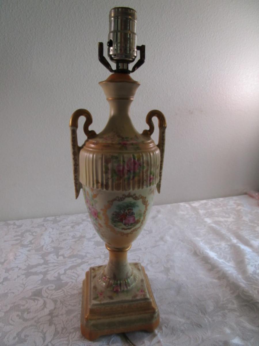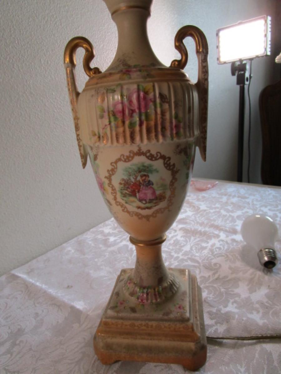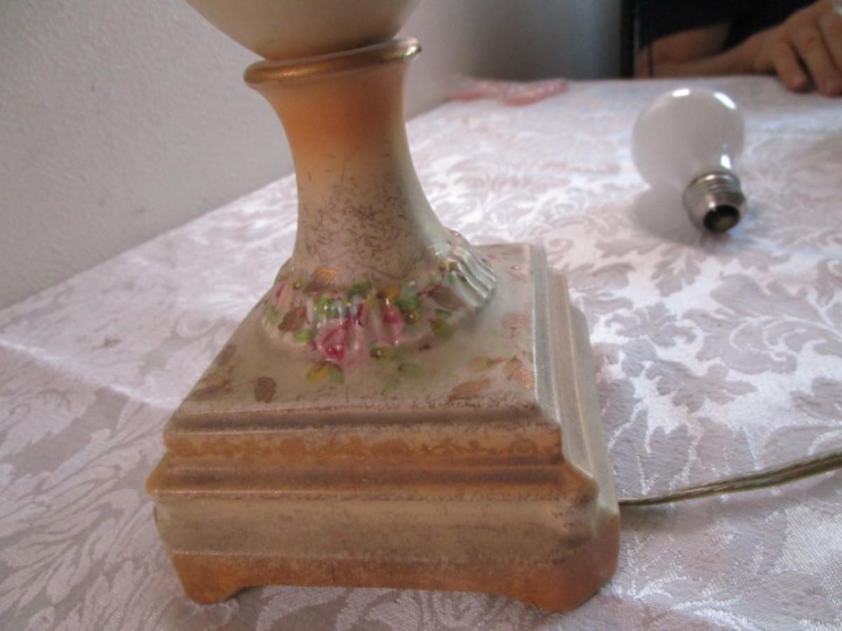 No shade, needs repair, 16-3/4" tall x 4-1/2 x 4-1/2 at base