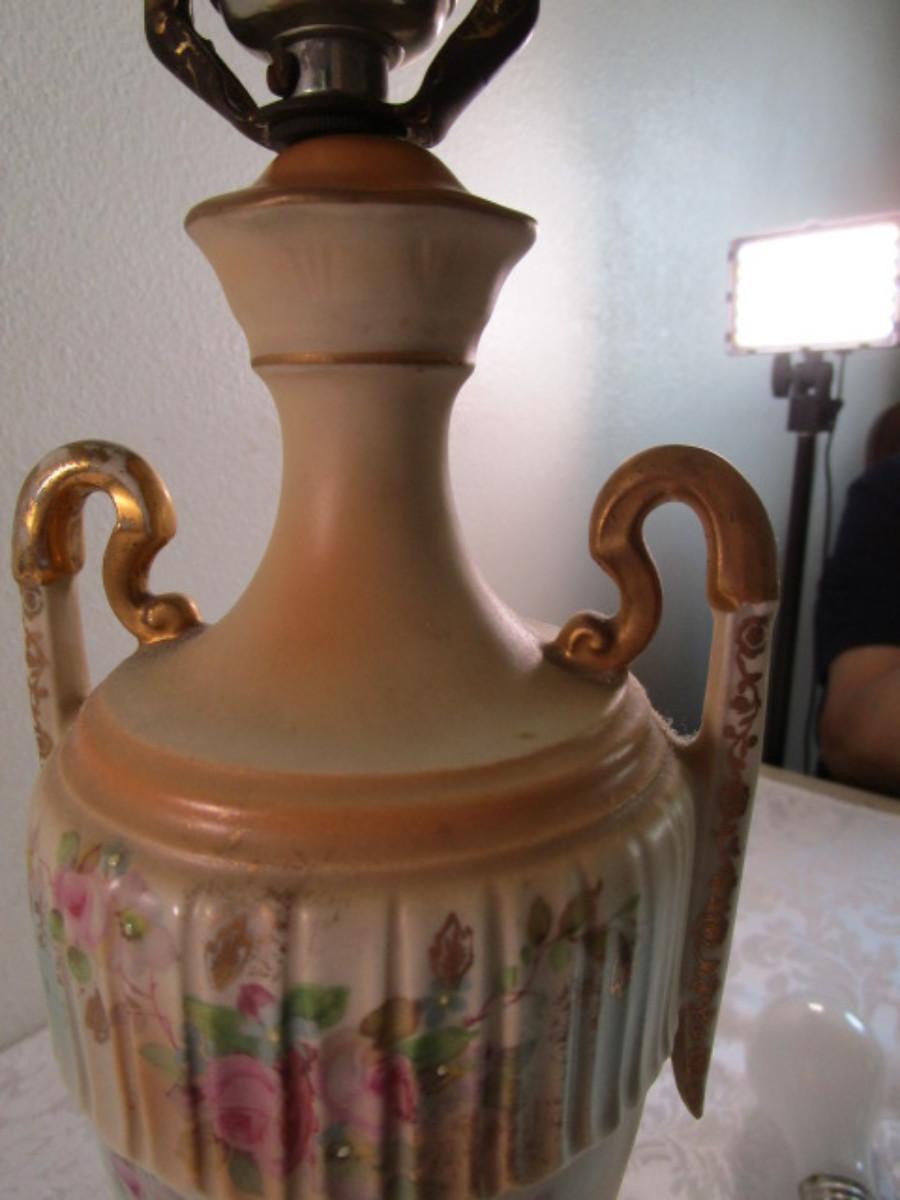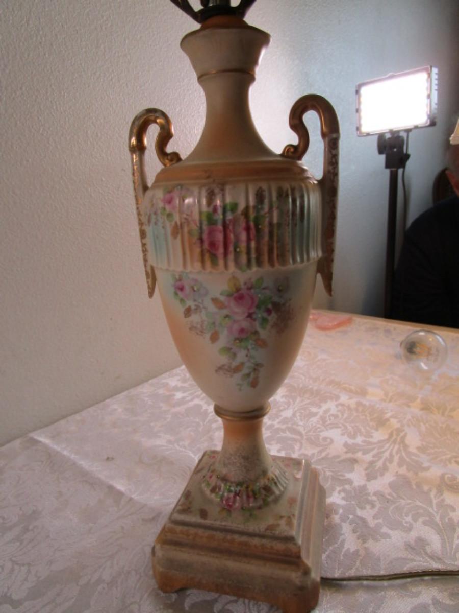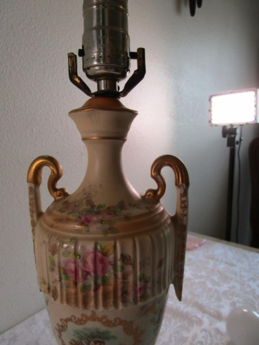 No shade, needs repair, 16-3/4" tall x 4-1/2 x 4-1/2 at base