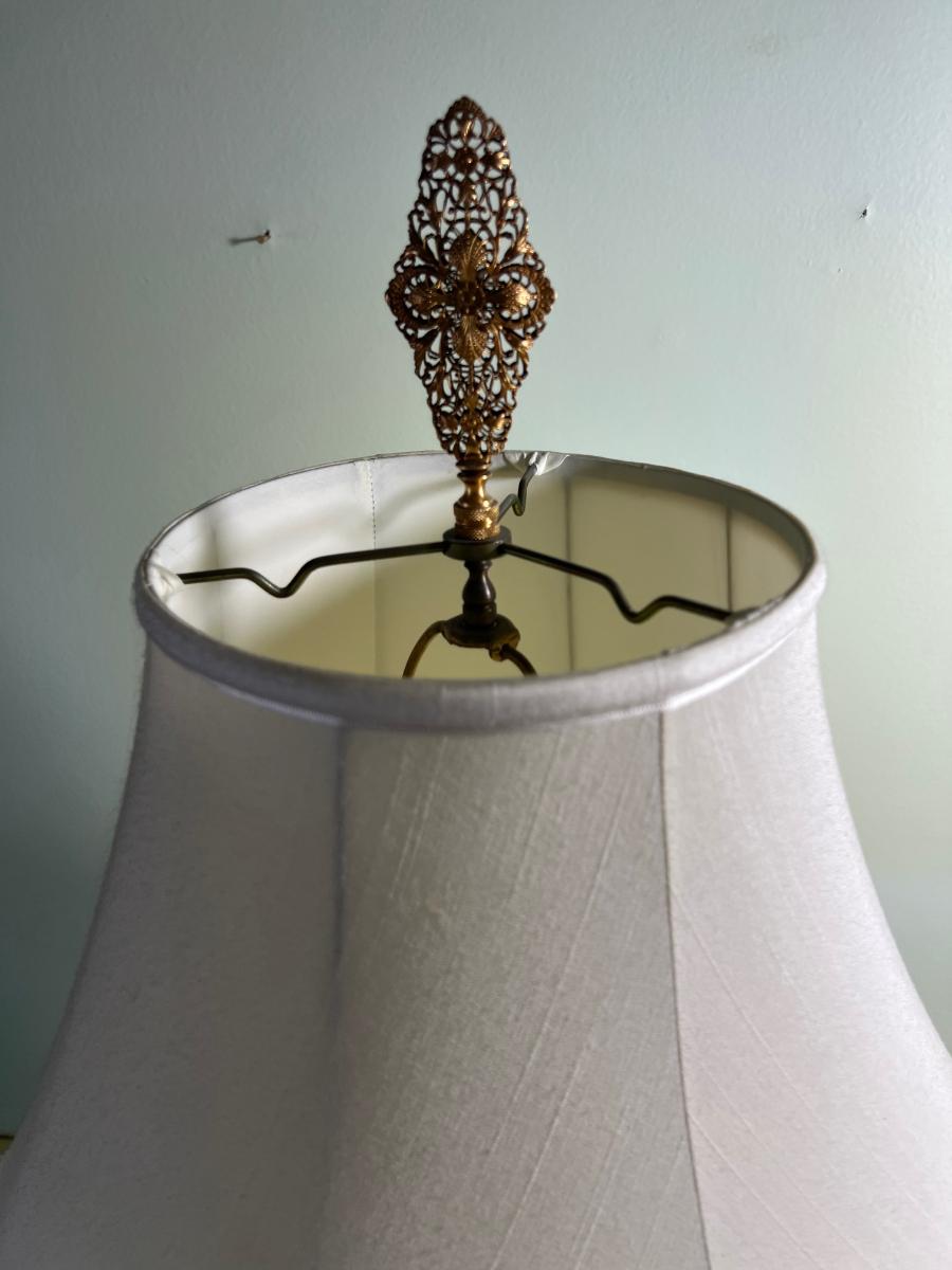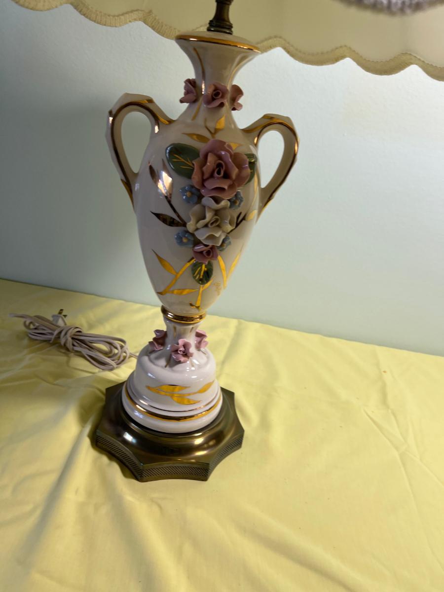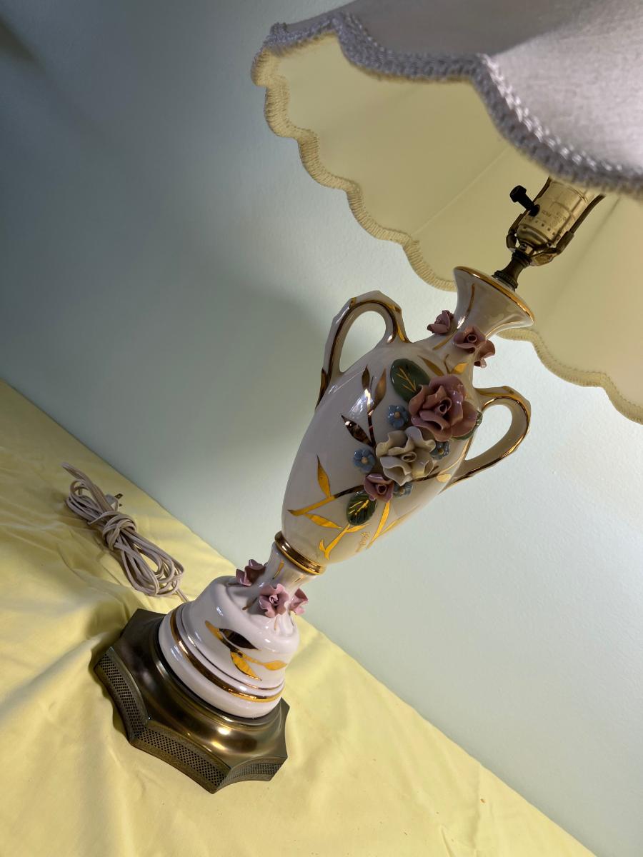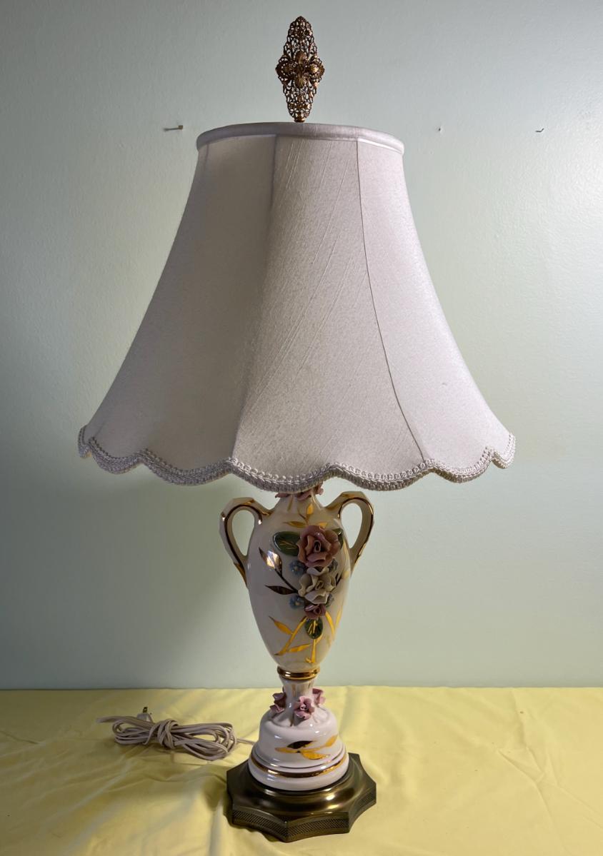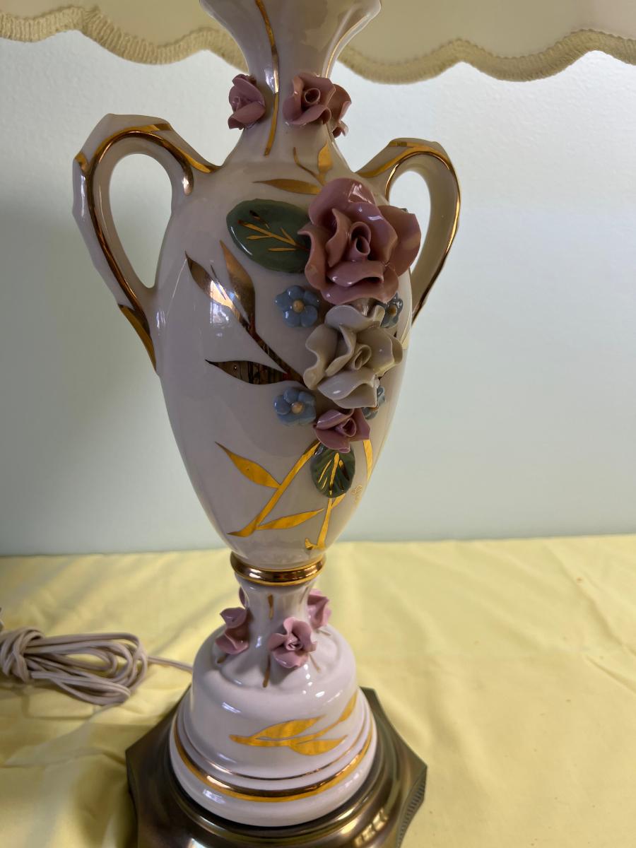 Ceramic Lamp with a Filigree Finial Roses