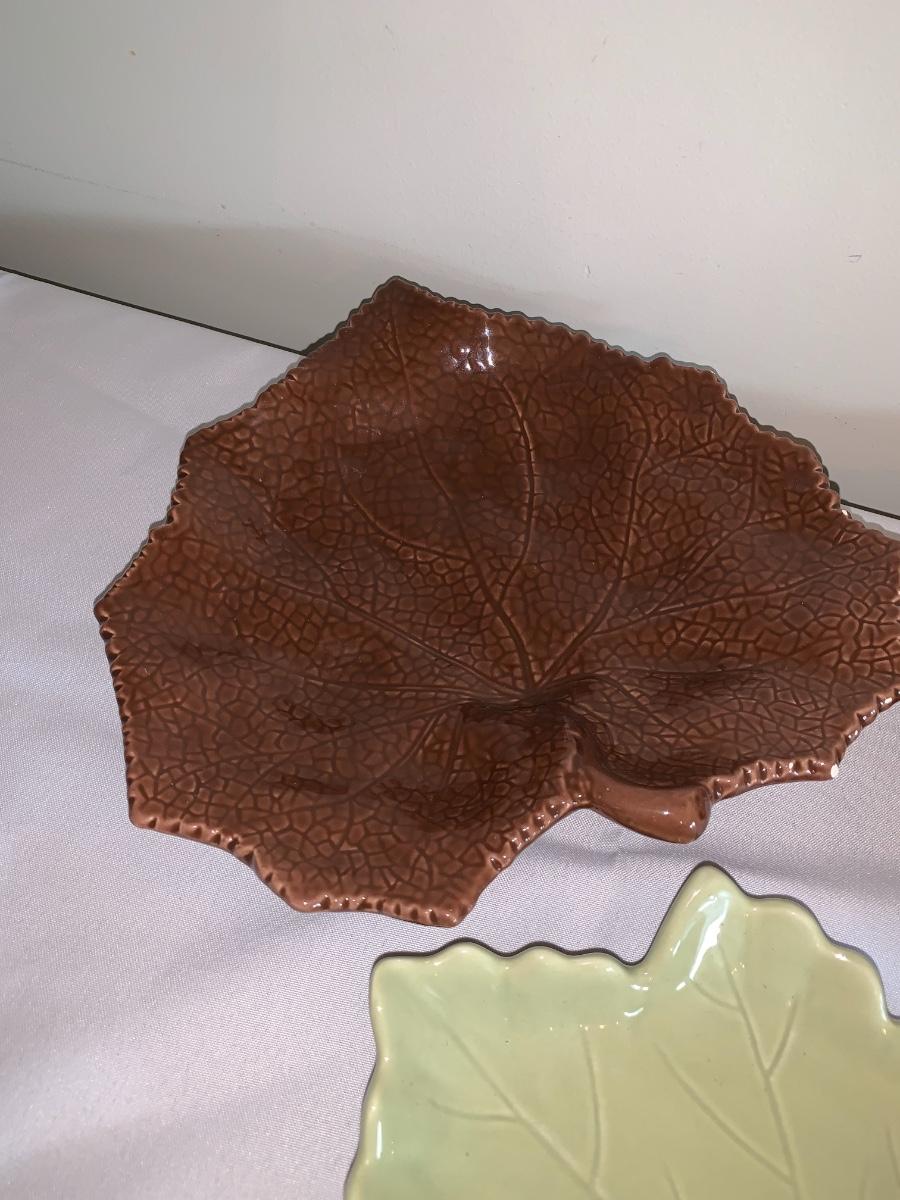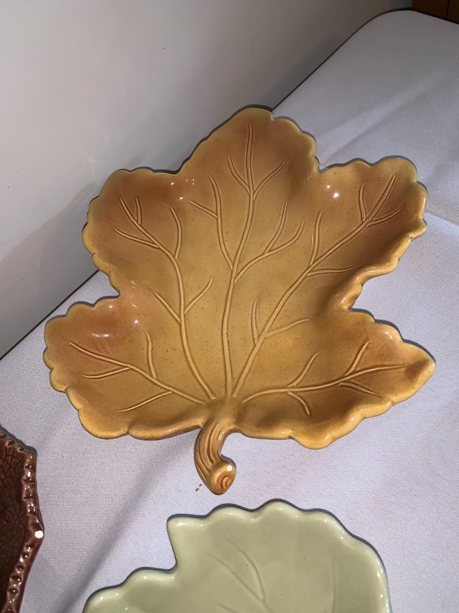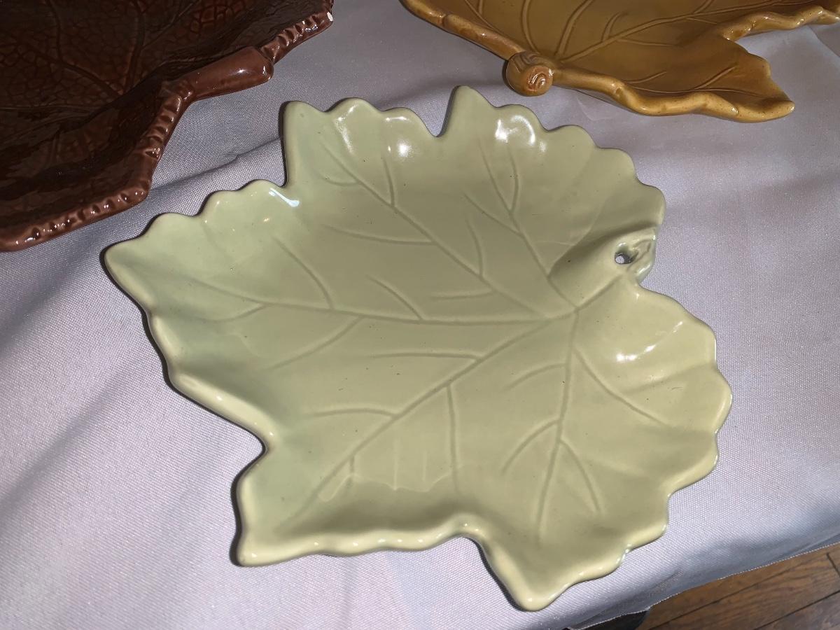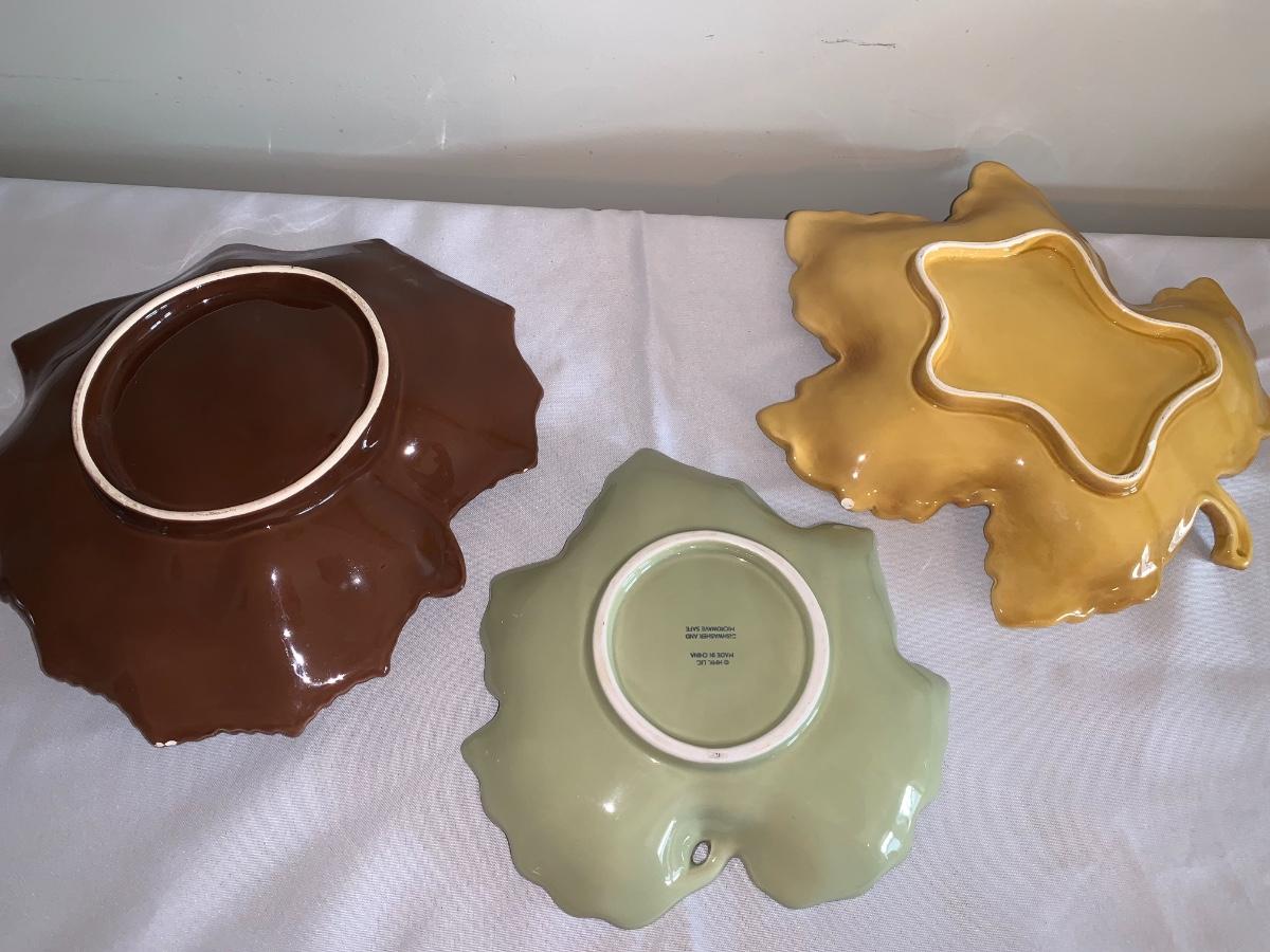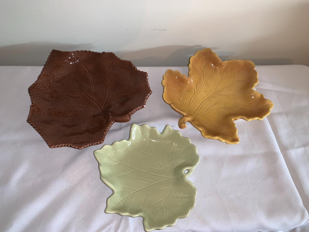 Group of 3 ceramic leaf plates.. Some small chips, but no cracks