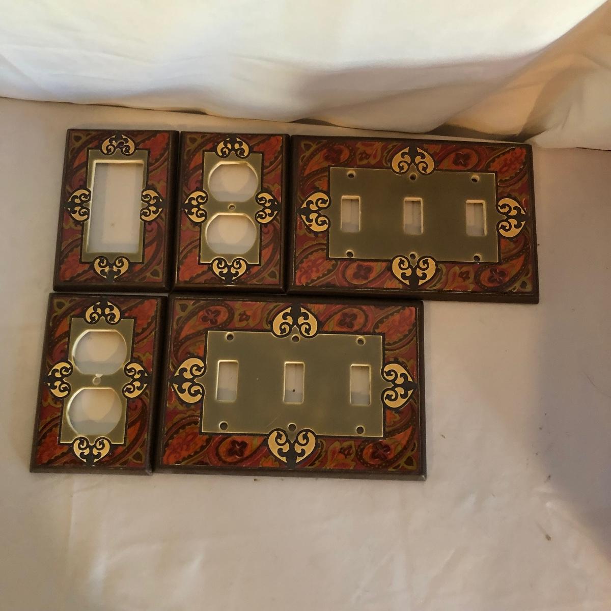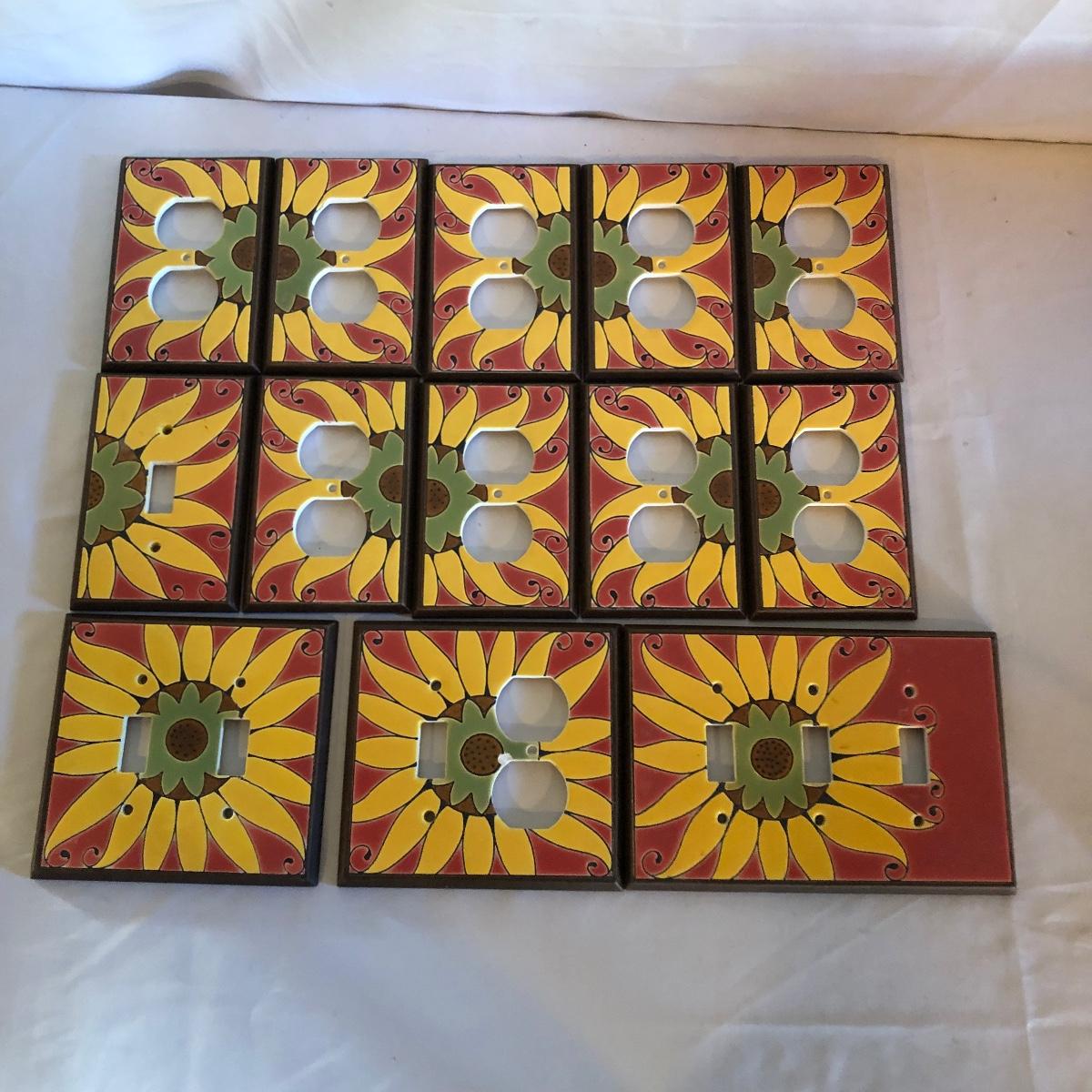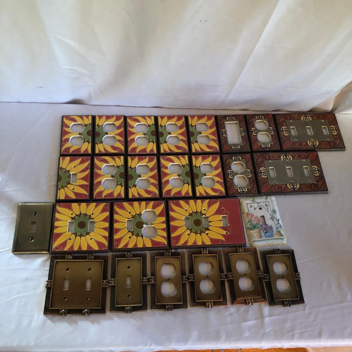 Lot includes twelve ceramic sunflower covers, five ceramic paisley covers, six metal brass colored covers, one metal floral cover and one metal cover.
