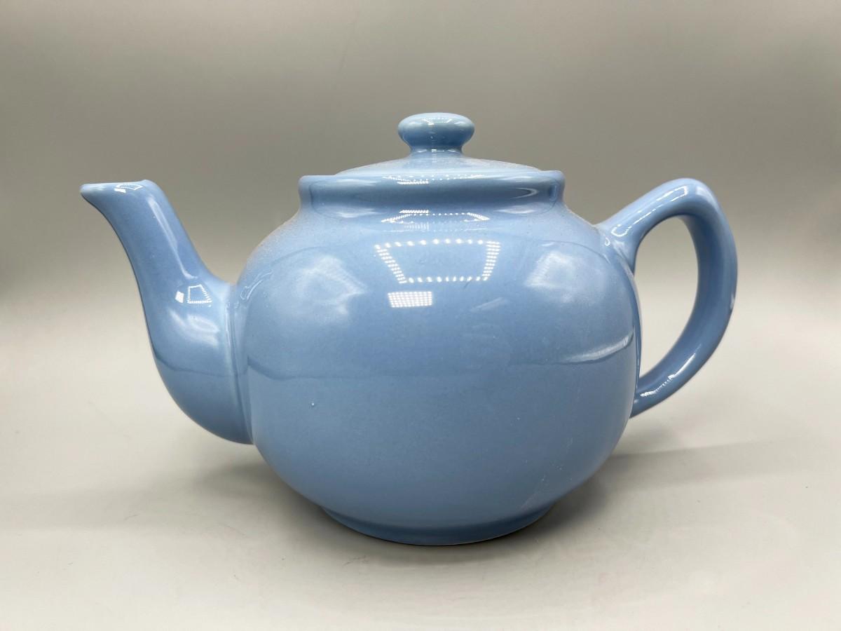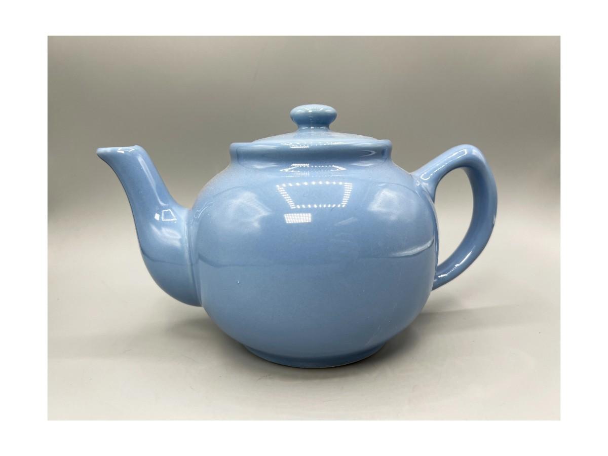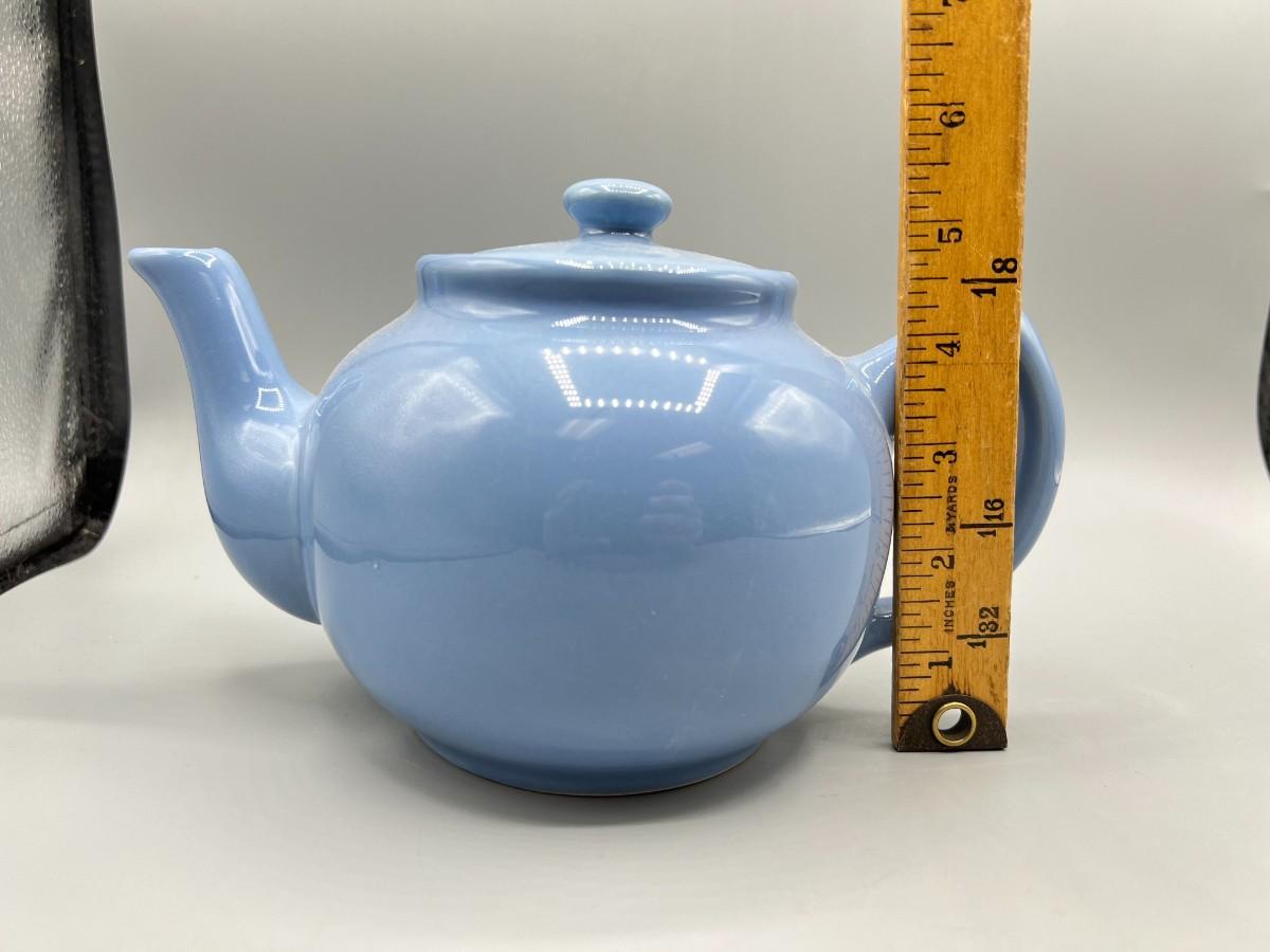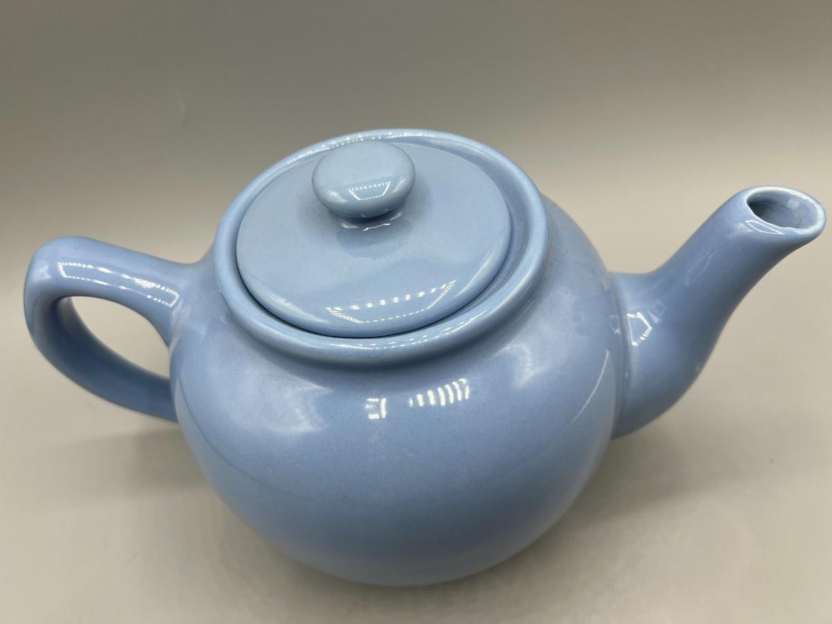 Ceramic Locking Lid Baby Blue Teapot, there are no chips or cracks to the ceramic teapot and is in good useable condition. Check pictures for more details and for sizing.